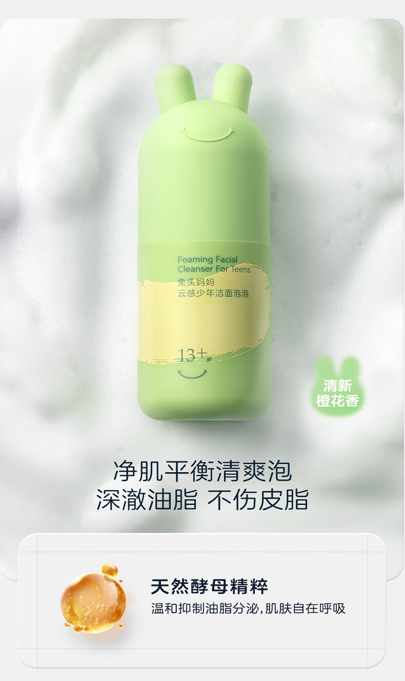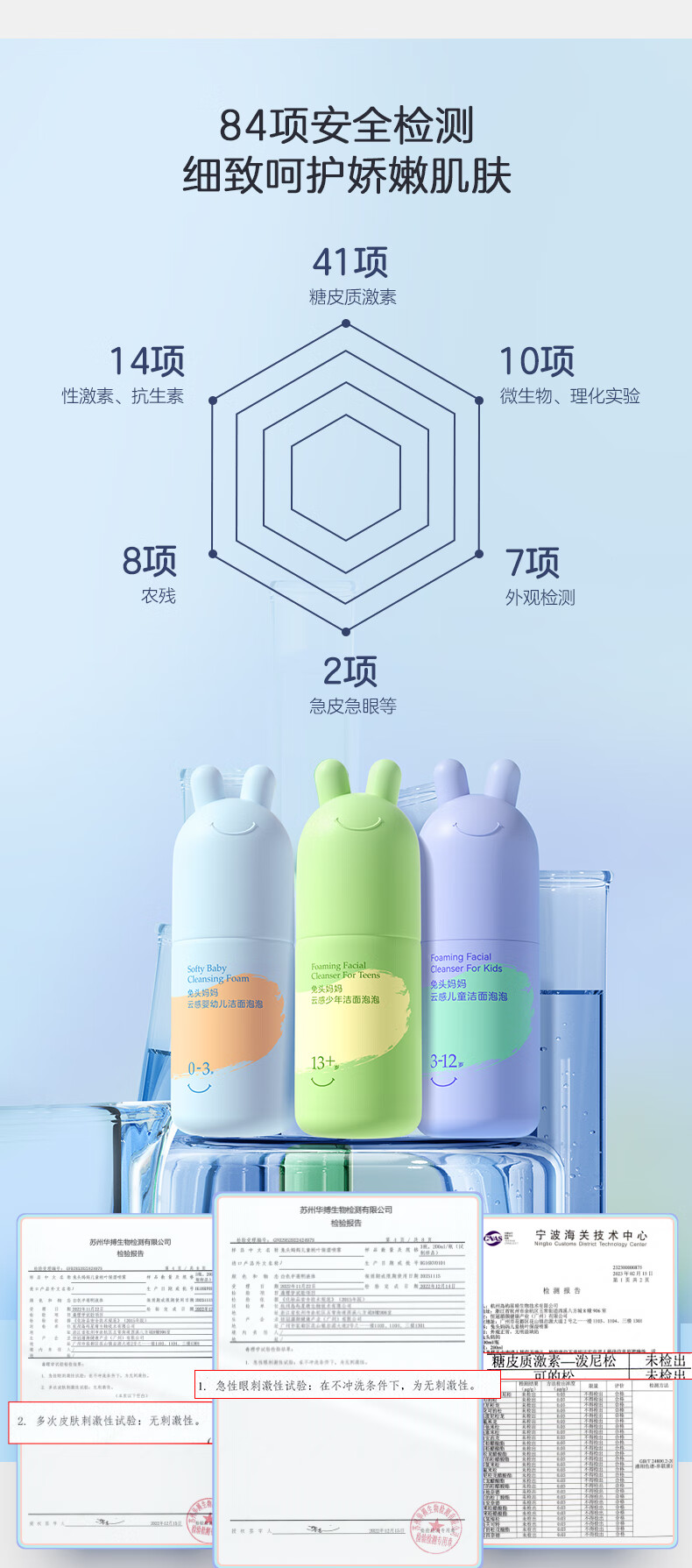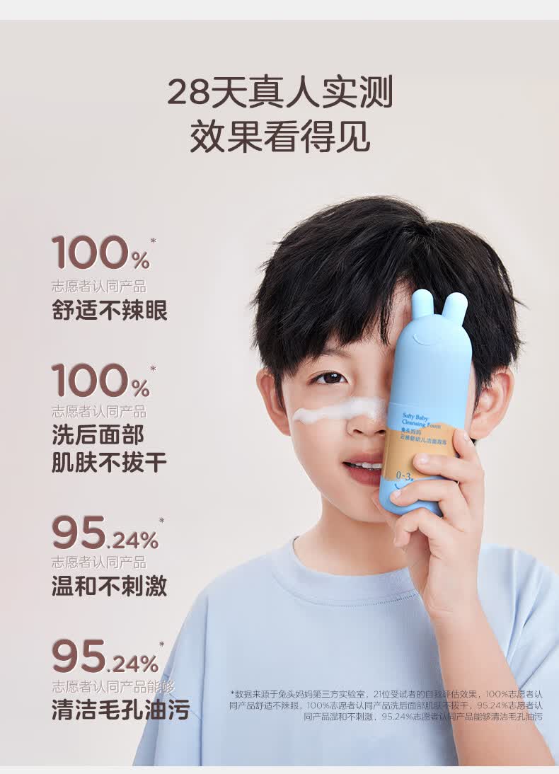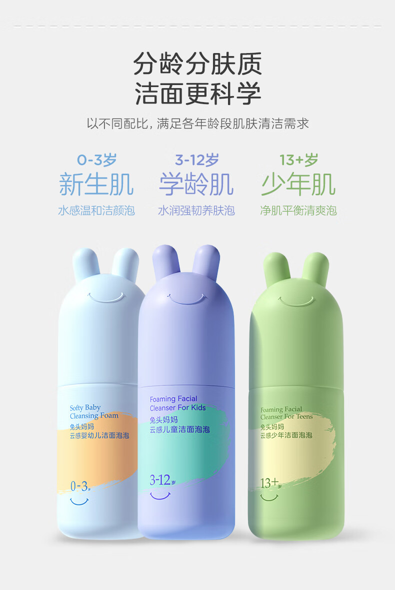 兔头妈妈儿童洗面奶 宝宝洁面乳洁面泡 护肤清洁洗脸舒缓卸防晒0-3岁90ml