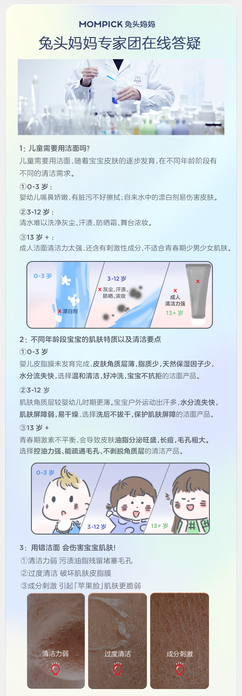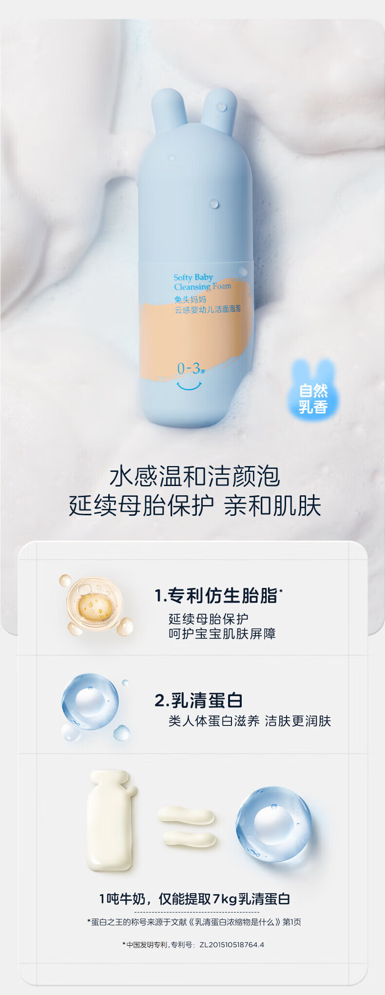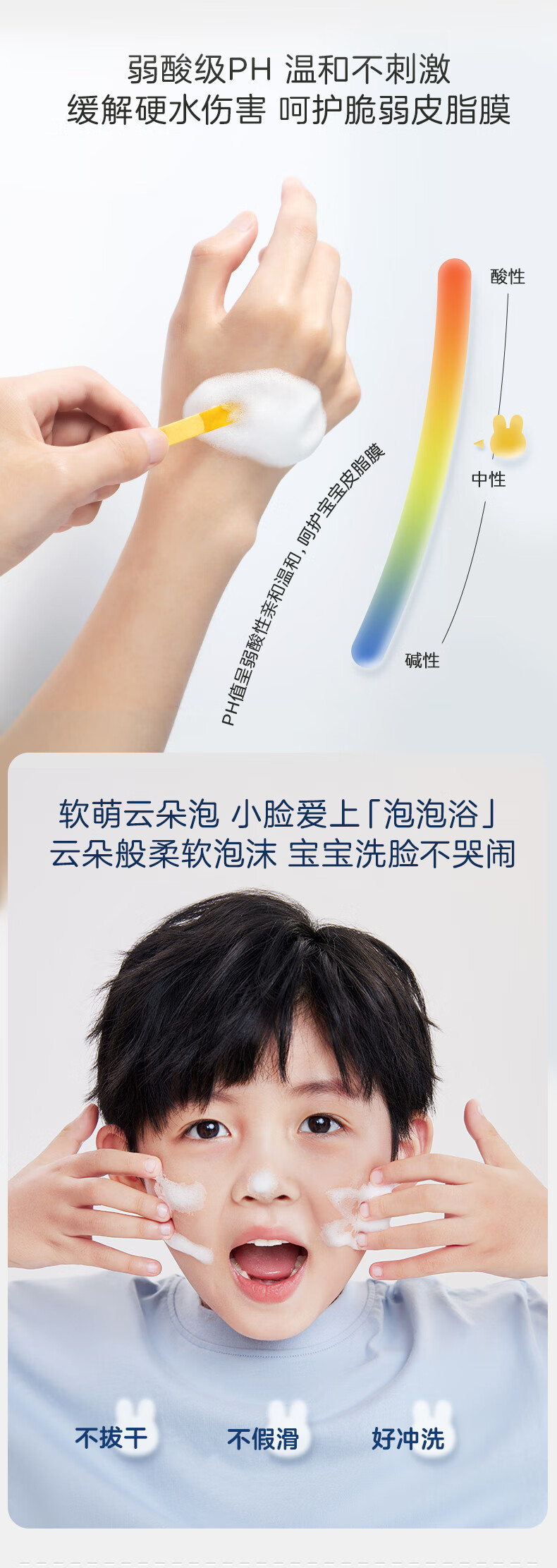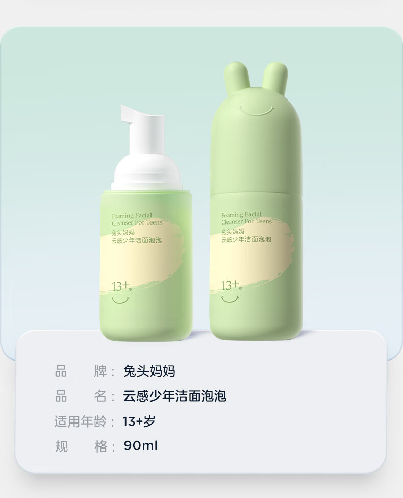 兔头妈妈儿童洗面奶 宝宝洁面乳洁面泡 护肤清洁洗脸舒缓卸防晒0-3岁90ml