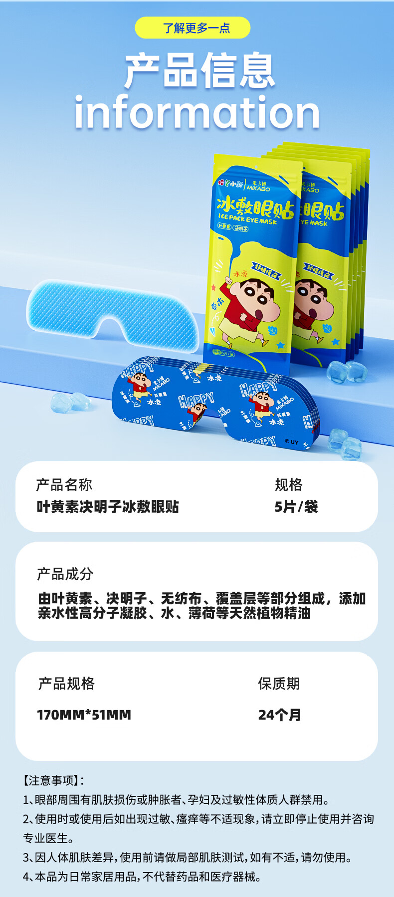 米卡博蜡笔小新联名冰敷眼贴添加草本精华呵护双眸神清气爽男女通用 30片【草本凉感 呵护双眼】