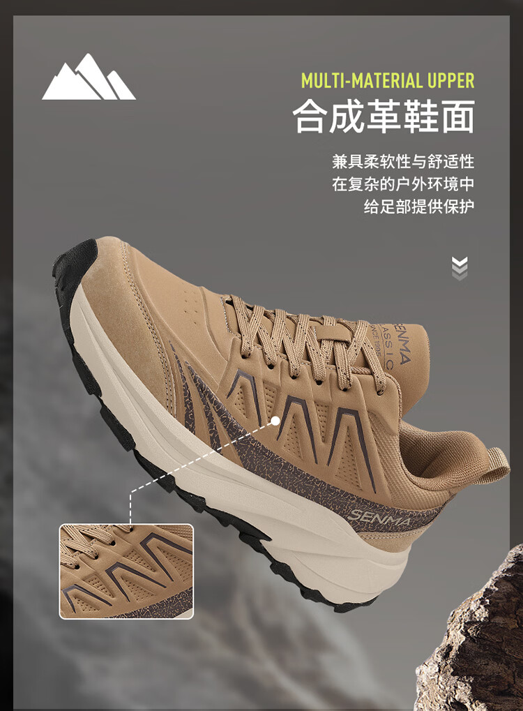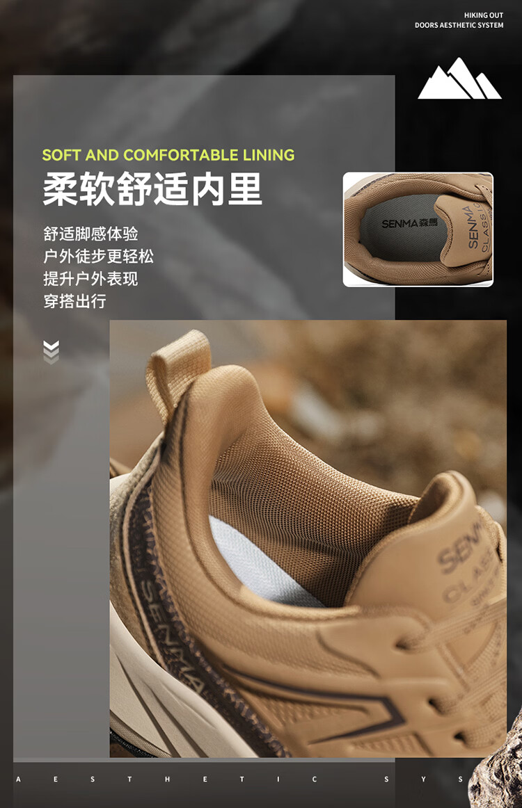 森馬男鞋2026春季户外休闲徒步运动鞋男士防滑减震厚底增高耐磨老爹鞋 卡其【基础款】 39 标准码数/现货秒发