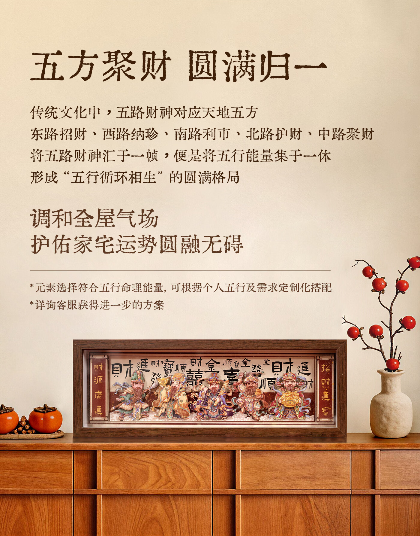 锦福五台五路财神非遗立体剪纸高级感乔迁开业礼品套装新中式摆件送长辈送同事中国风伴手礼