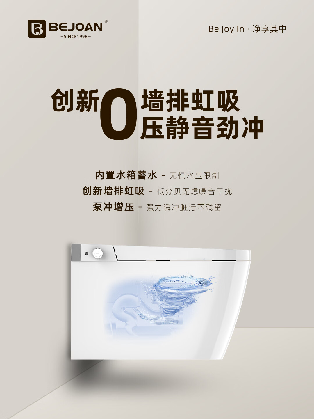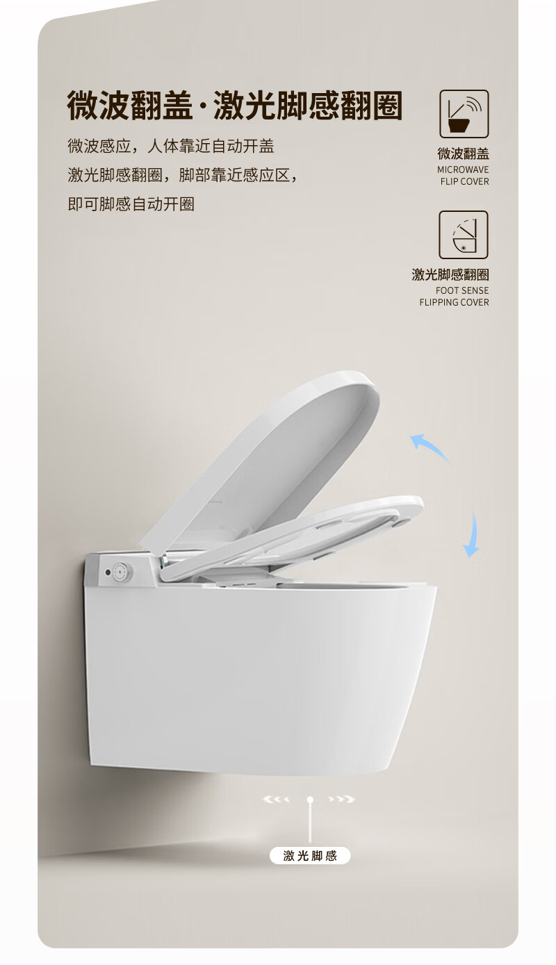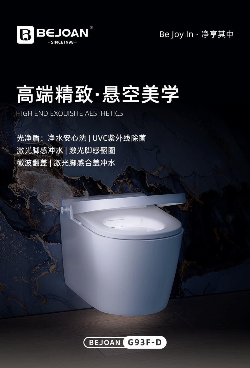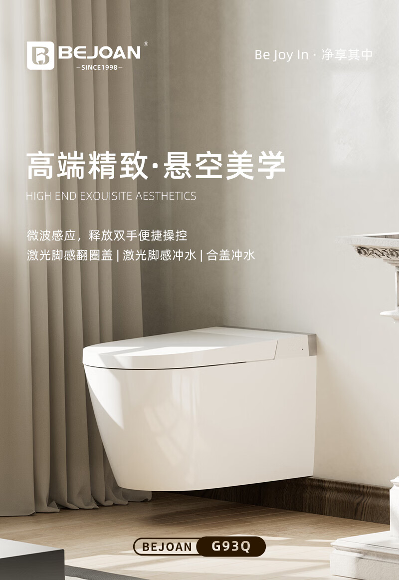 便洁宝(Bejoan)高端精致美学 Bejoan便洁宝新款智能壁挂马桶G93静音冲水微波感应 基础款轻智能 G93Q(微波开盖+激光脚感冲水)