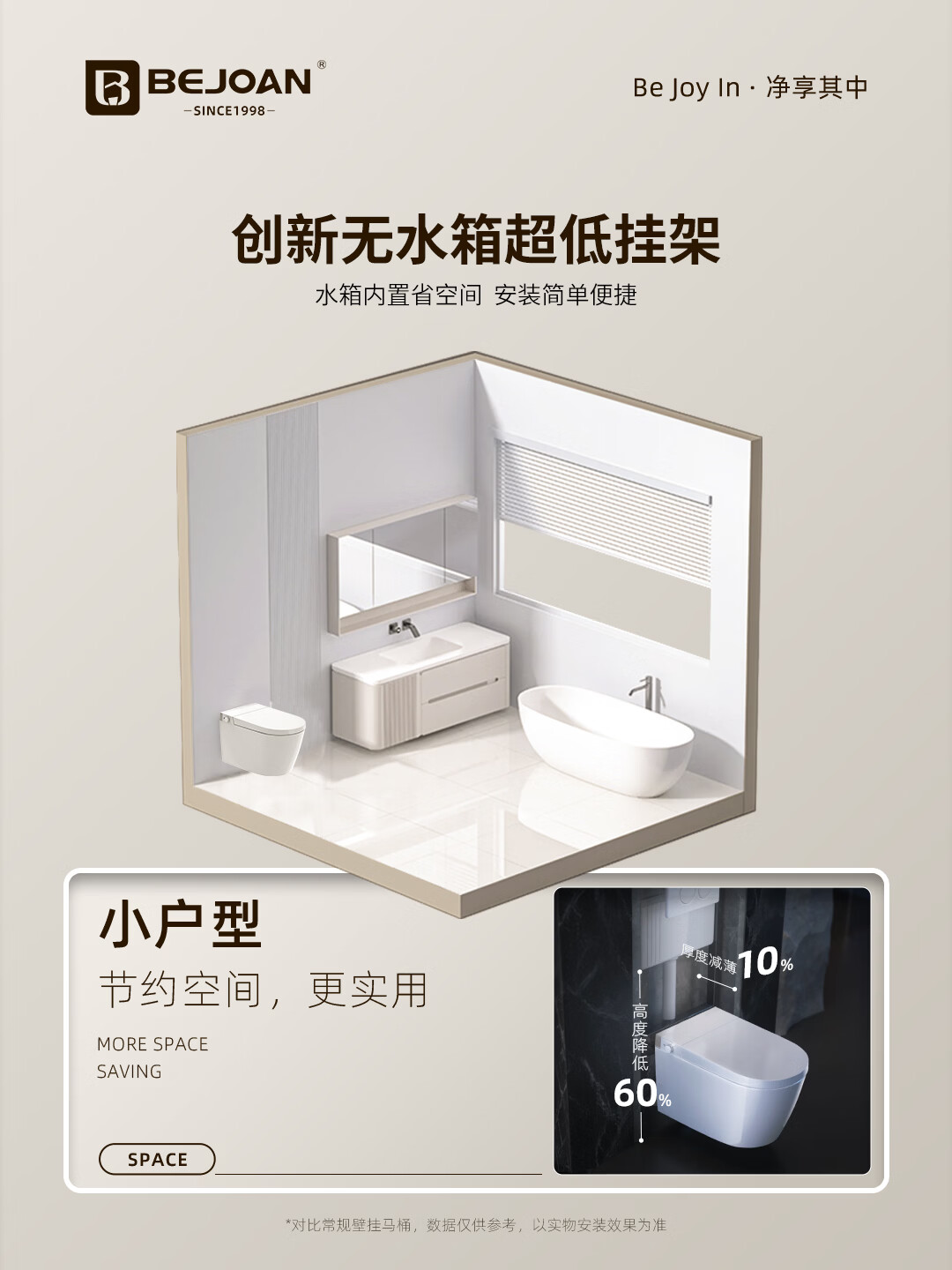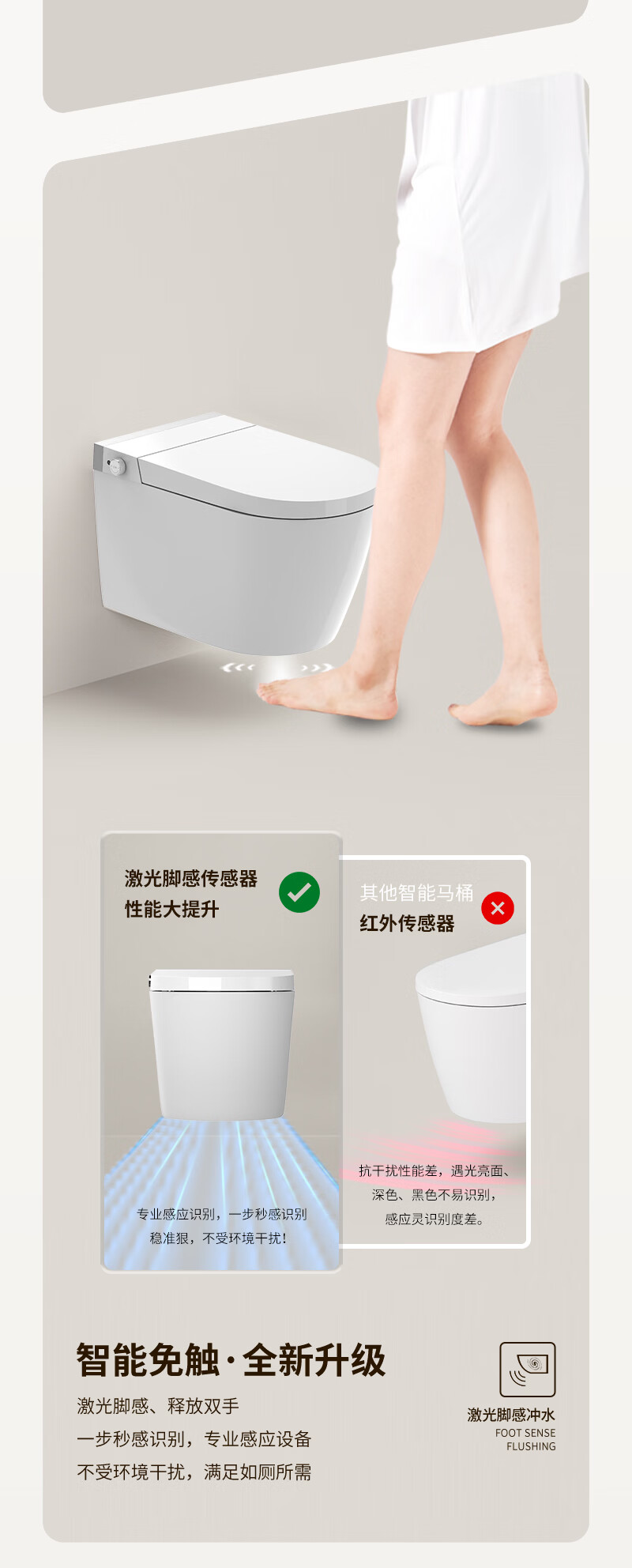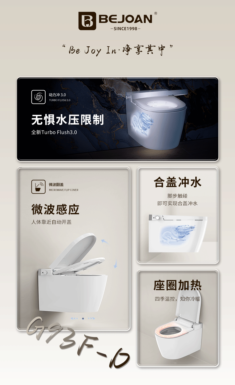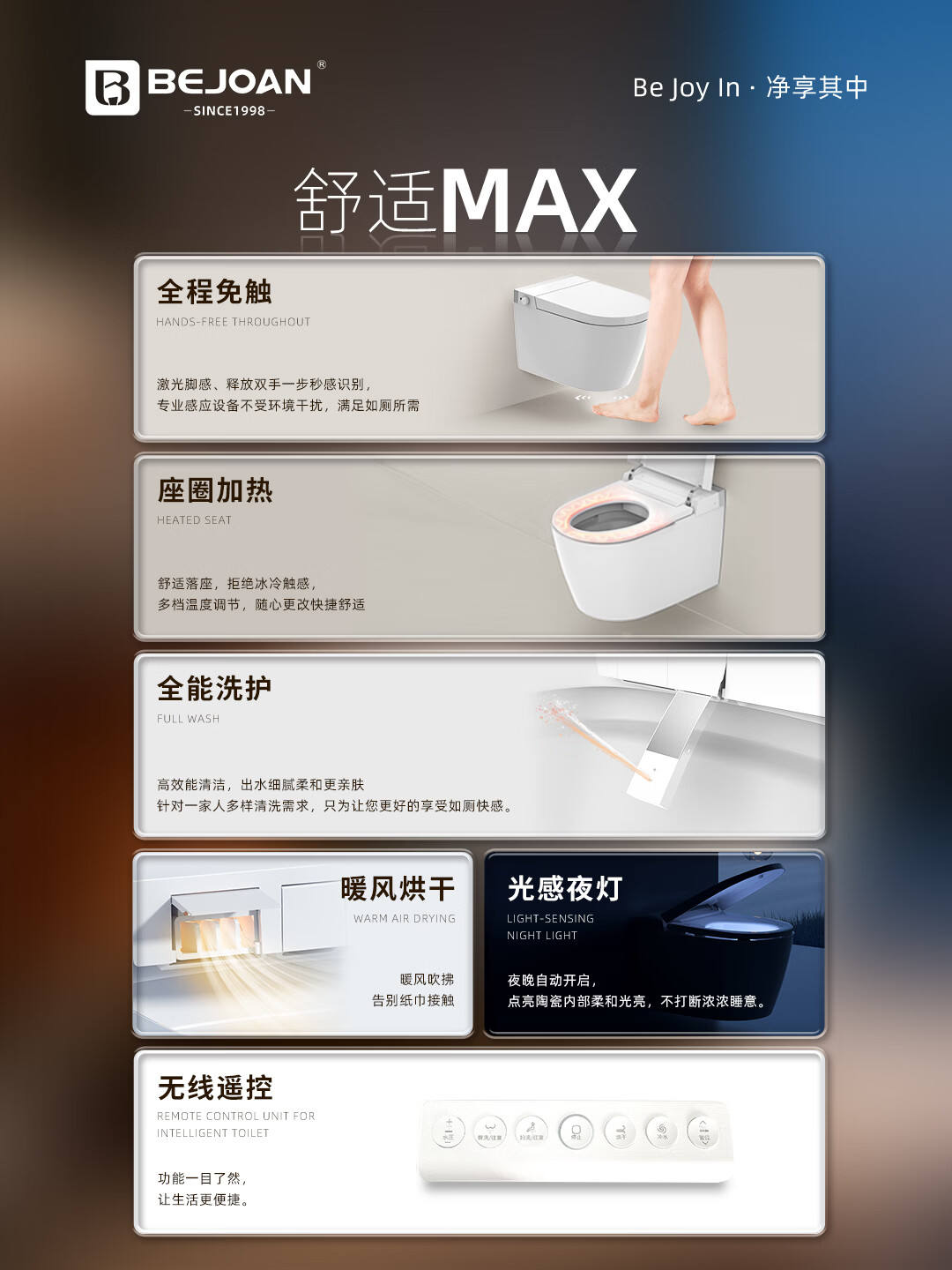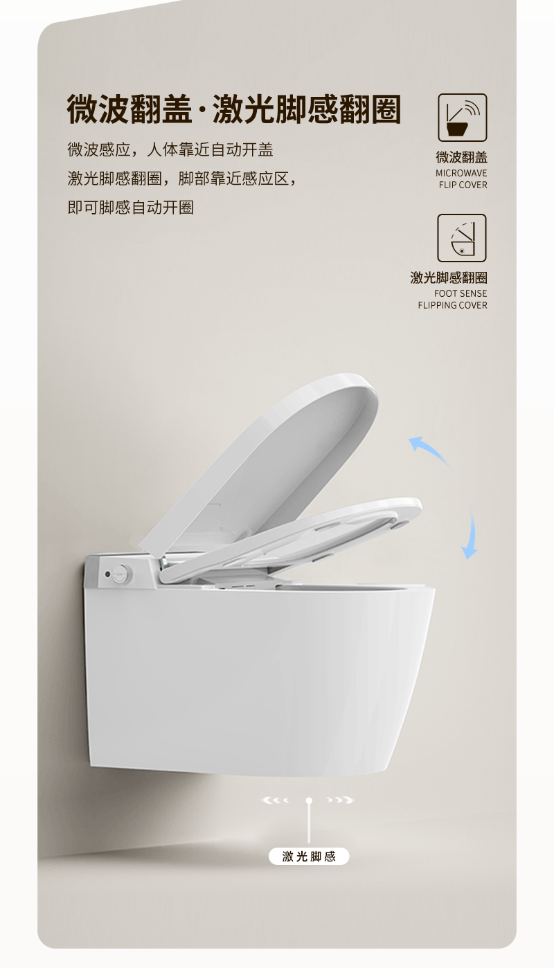 便洁宝(Bejoan)高端精致美学 Bejoan便洁宝新款智能壁挂马桶G93静音冲水微波感应 基础款轻智能 G93Q(微波开盖+激光脚感冲水)