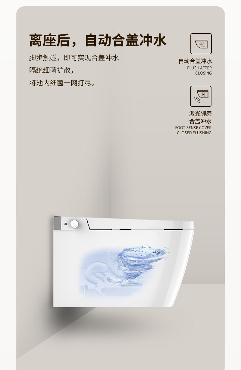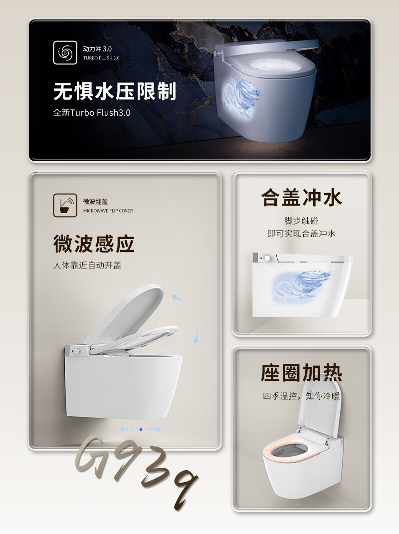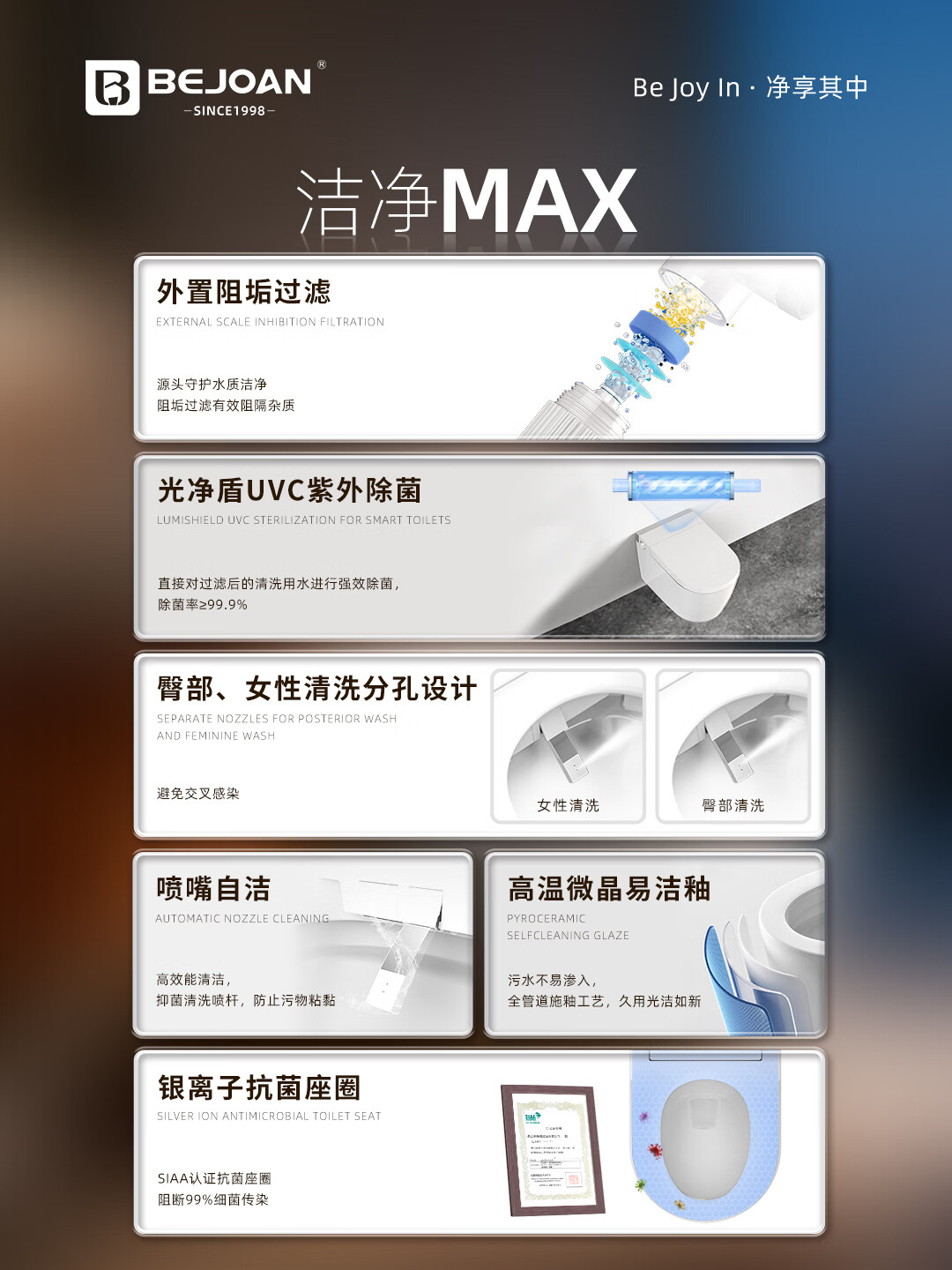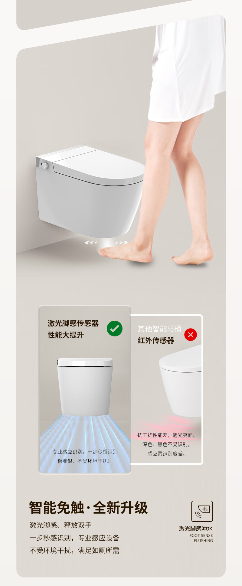 便洁宝(Bejoan)高端精致美学 Bejoan便洁宝新款智能壁挂马桶G93静音冲水微波感应 基础款轻智能 G93Q(微波开盖+激光脚感冲水)