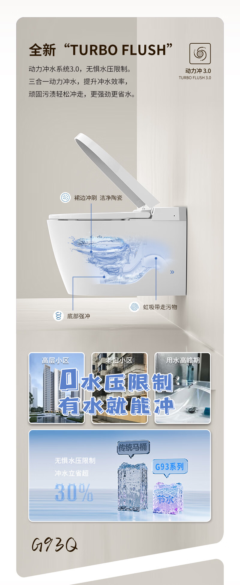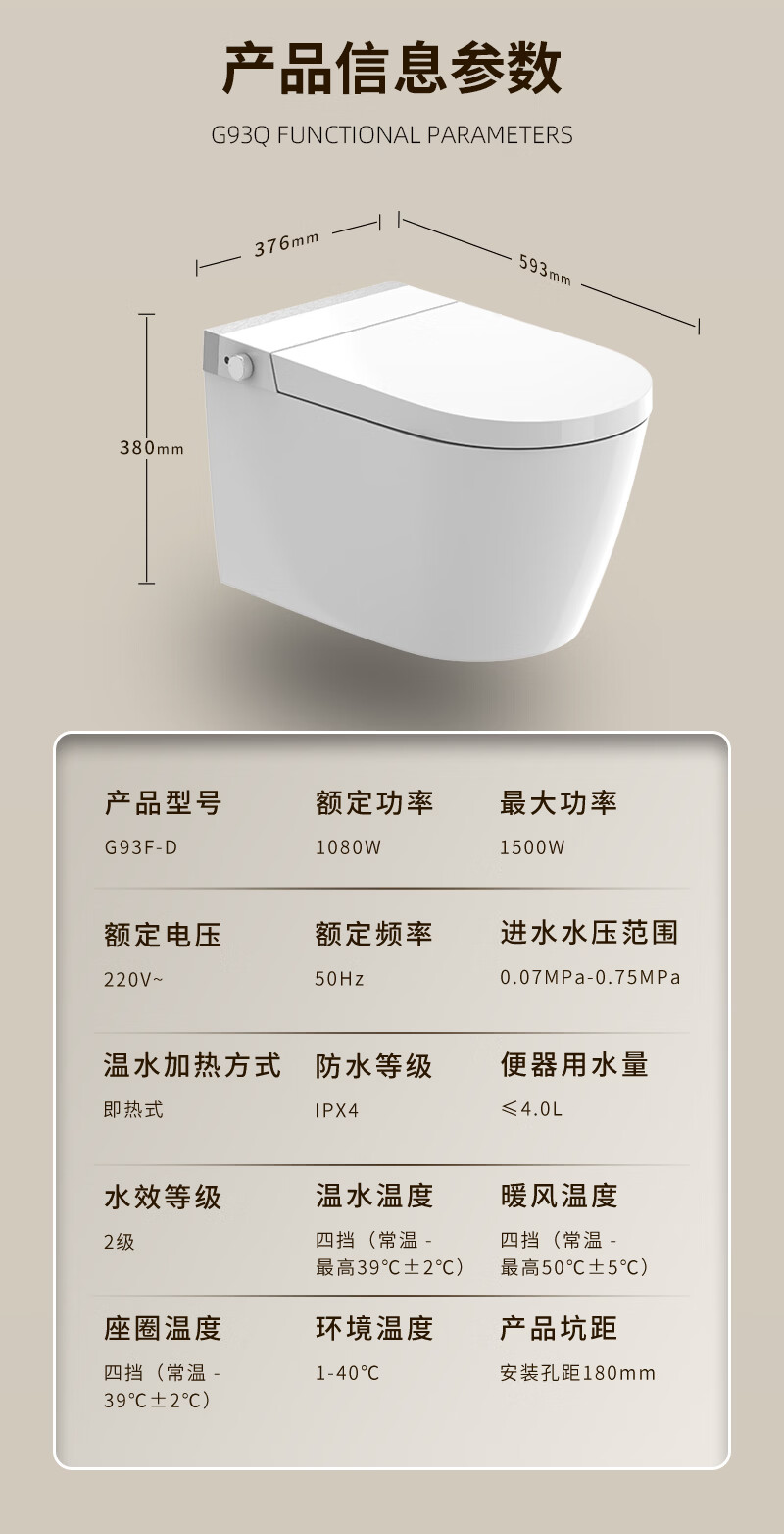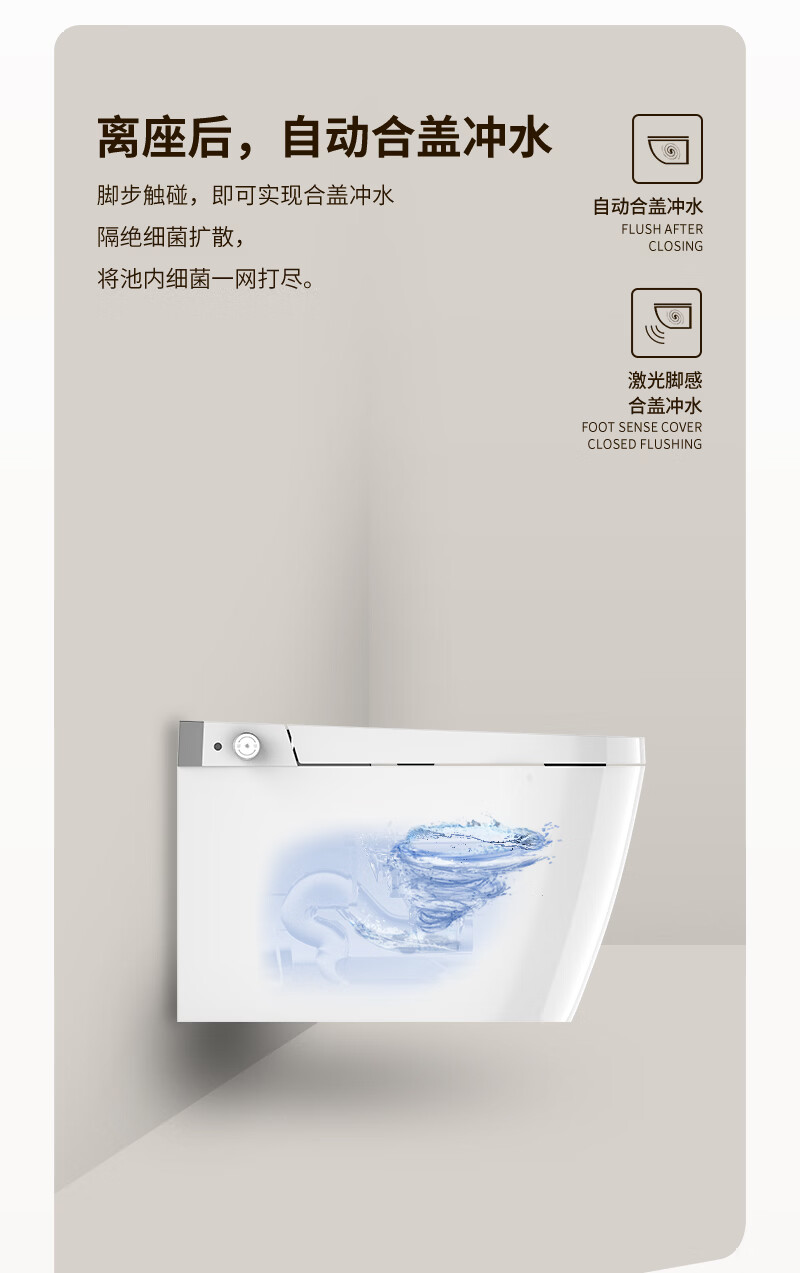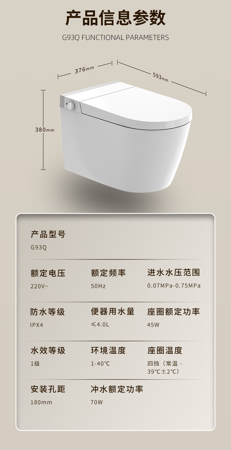 便洁宝(Bejoan)高端精致美学 Bejoan便洁宝新款智能壁挂马桶G93静音冲水微波感应 基础款轻智能 G93Q(微波开盖+激光脚感冲水)