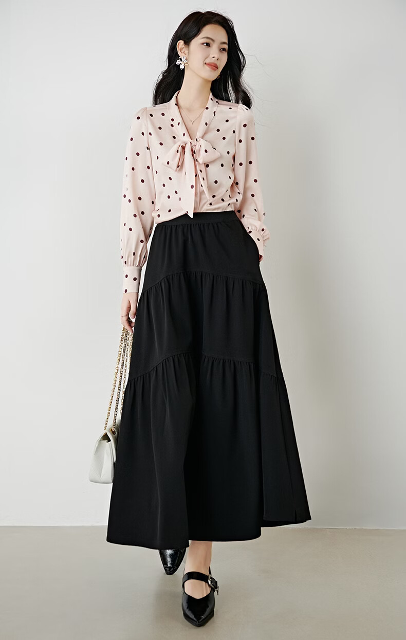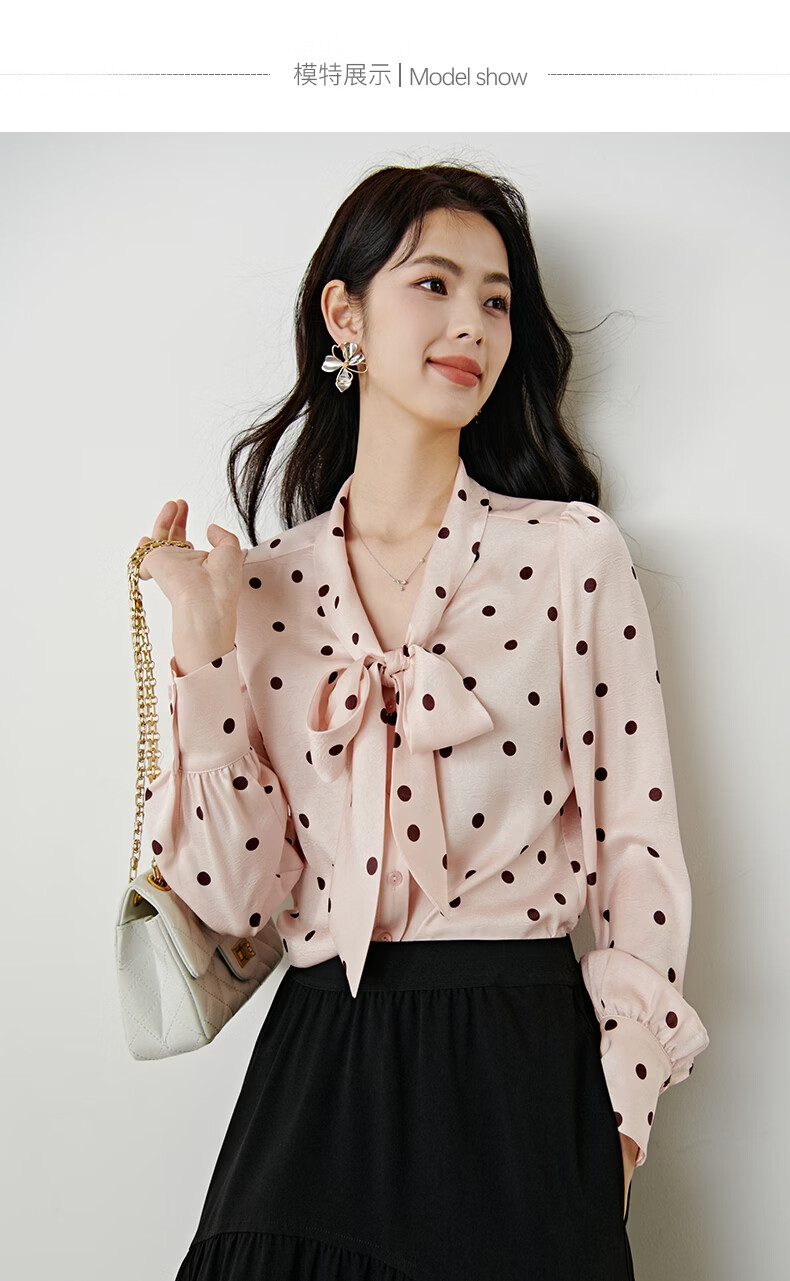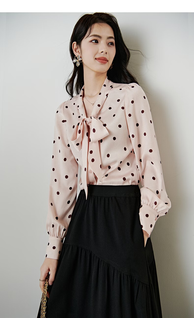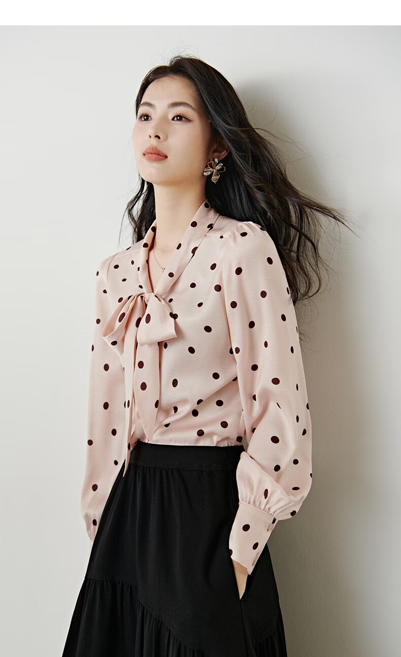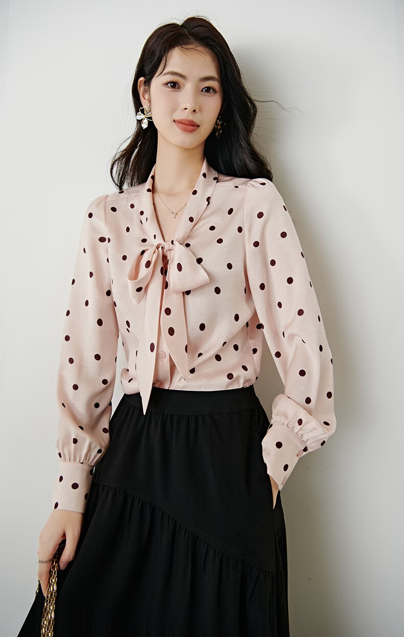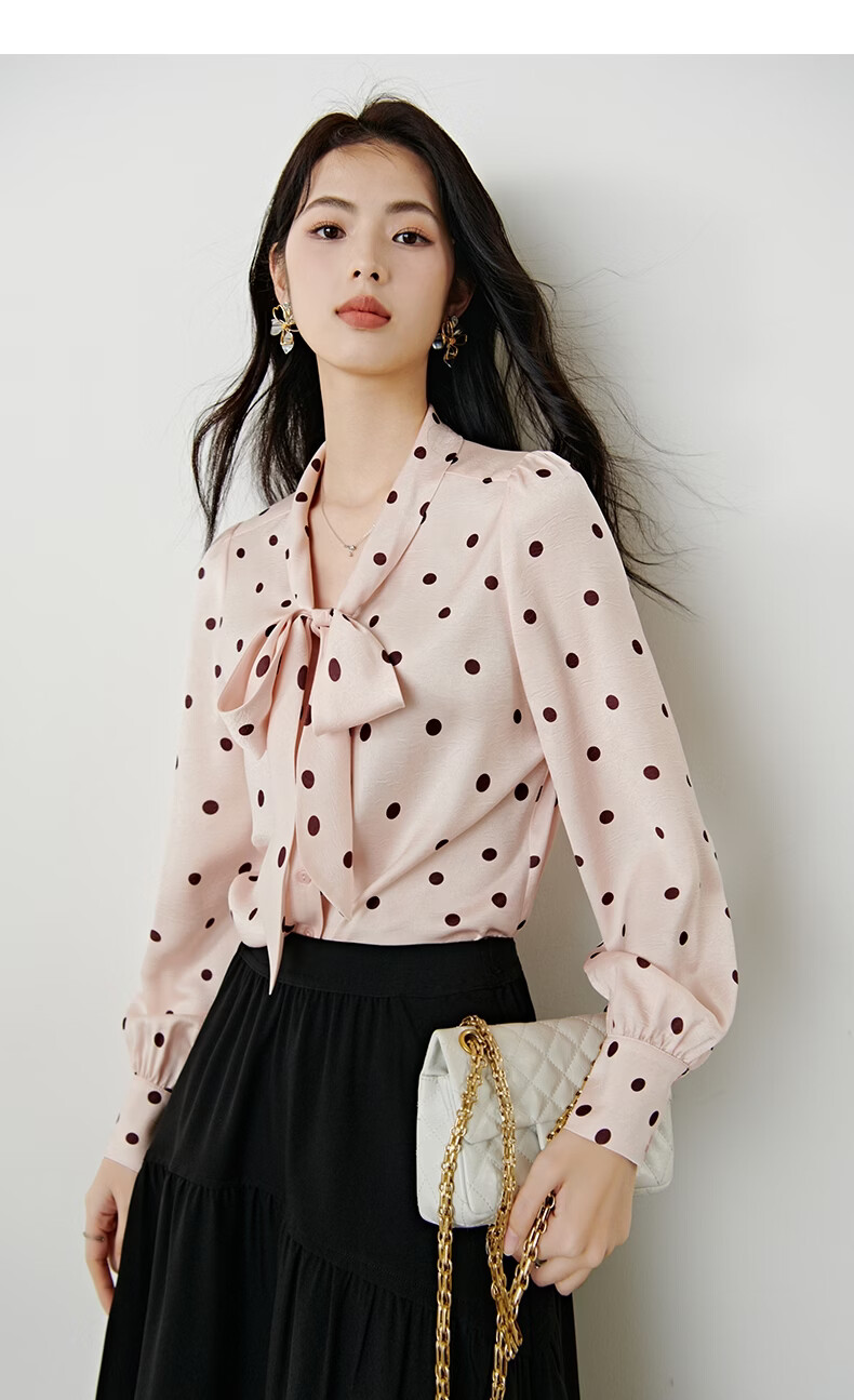 晚白2026年春款法式浪漫复古名媛系带蝴蝶结上衣顺滑柔软气质衬衫女 粉色 L