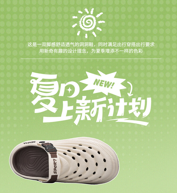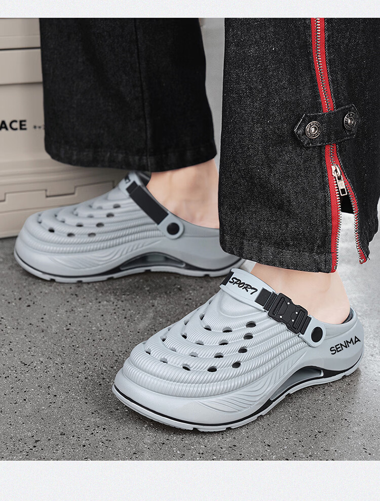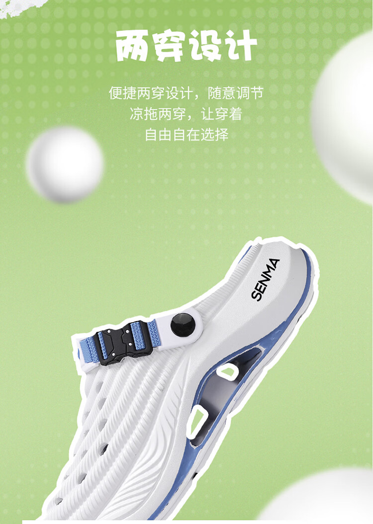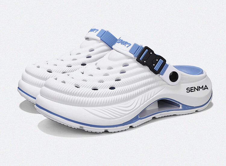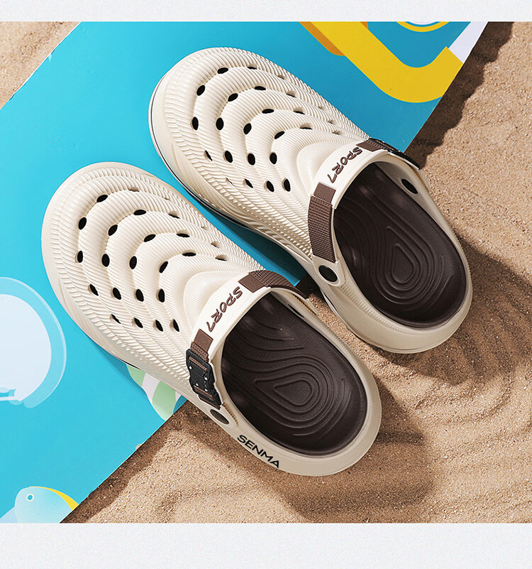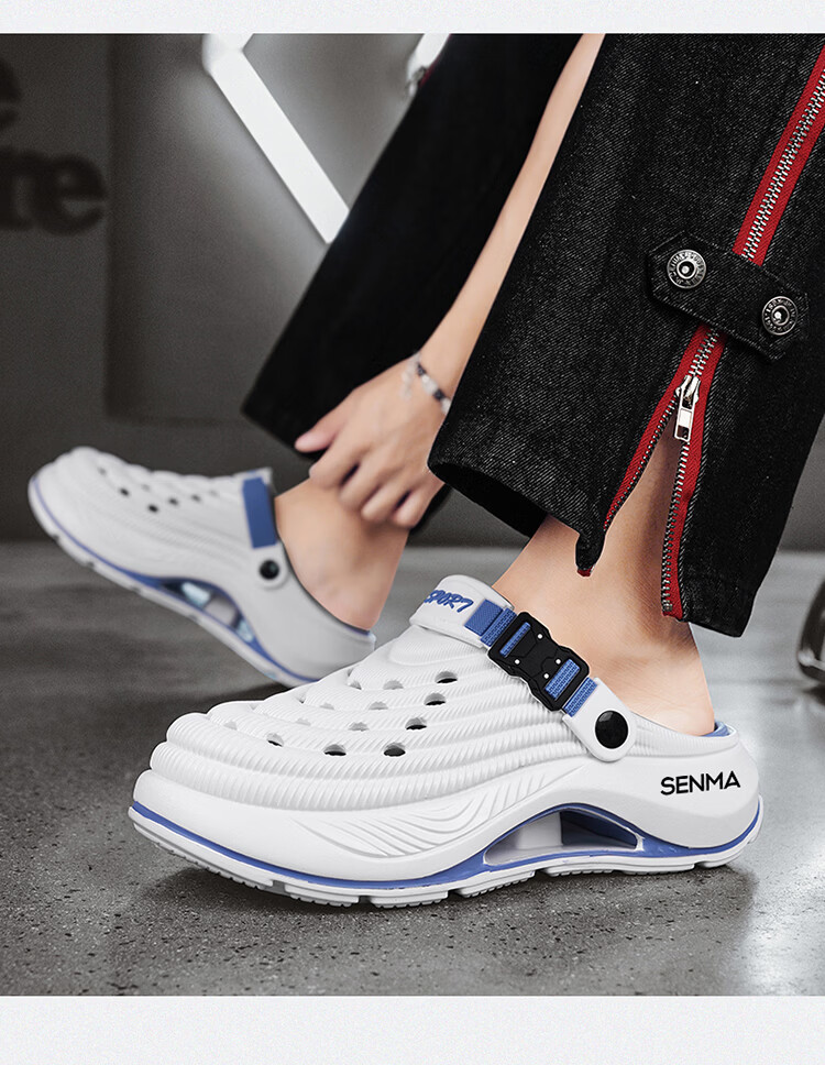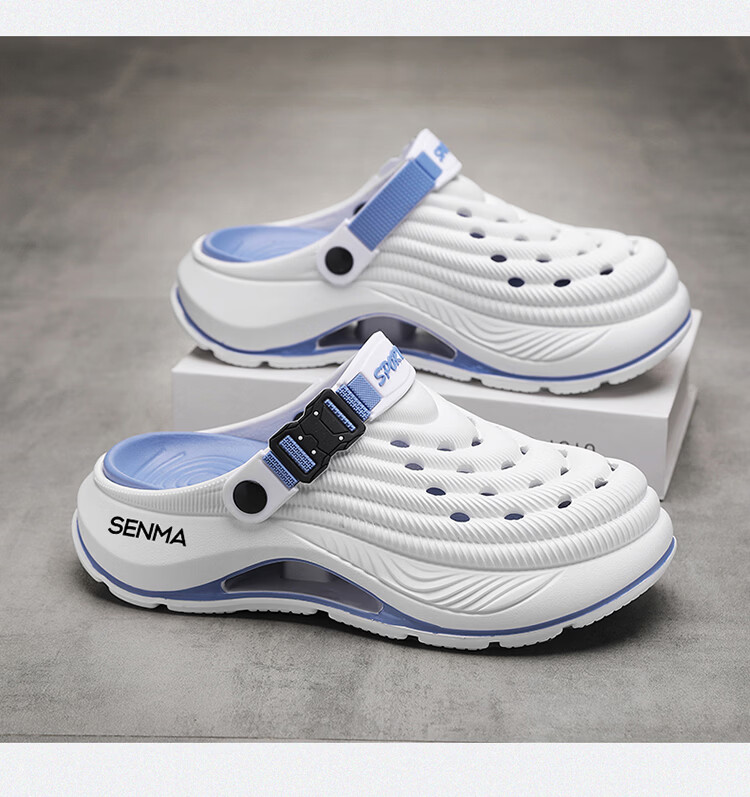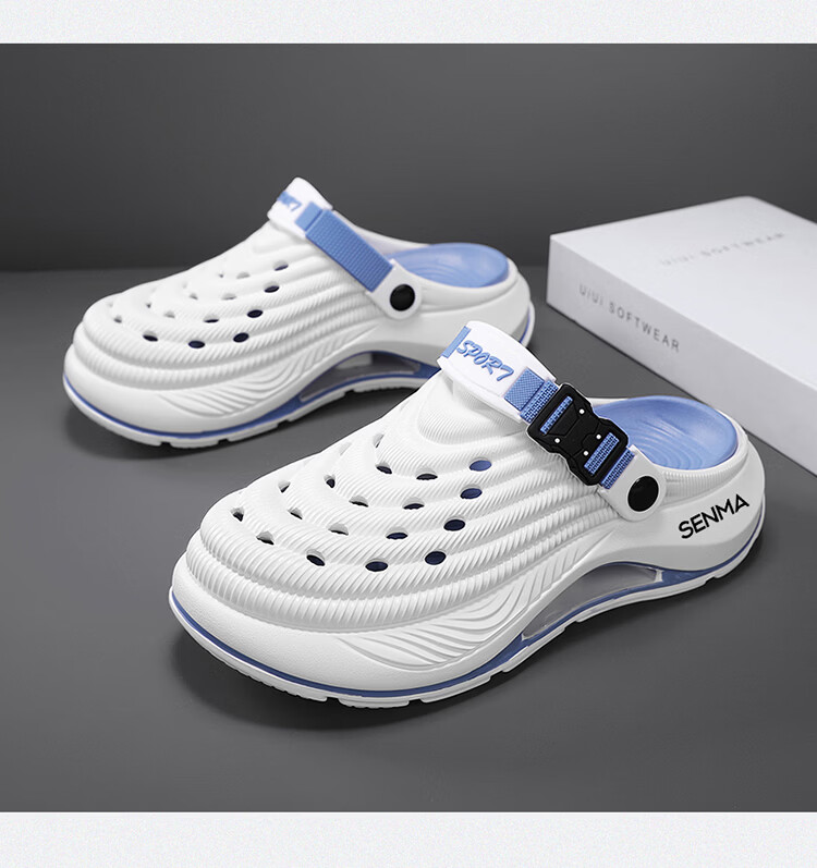 森馬洞洞鞋男款2026年新款夏季外穿踩屎感运动包头拖鞋涉水沙滩凉拖鞋 白蓝【基础款】 42-43 【现货秒发】