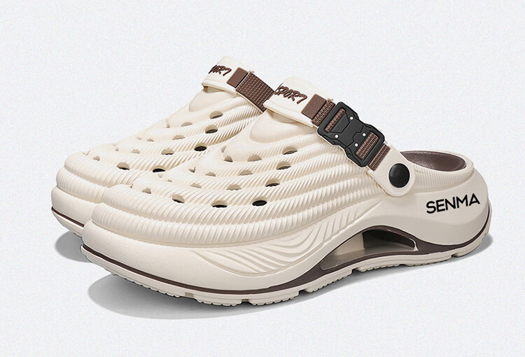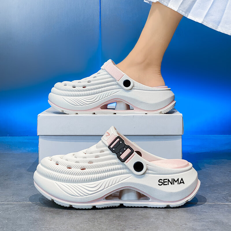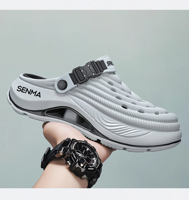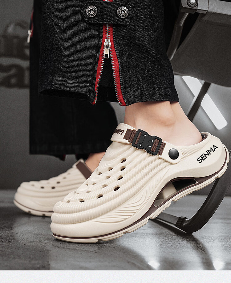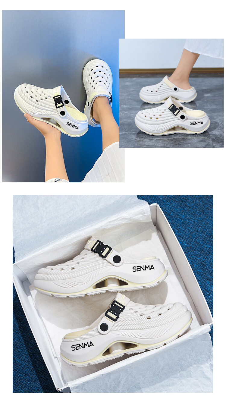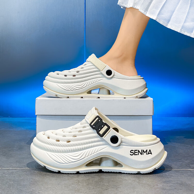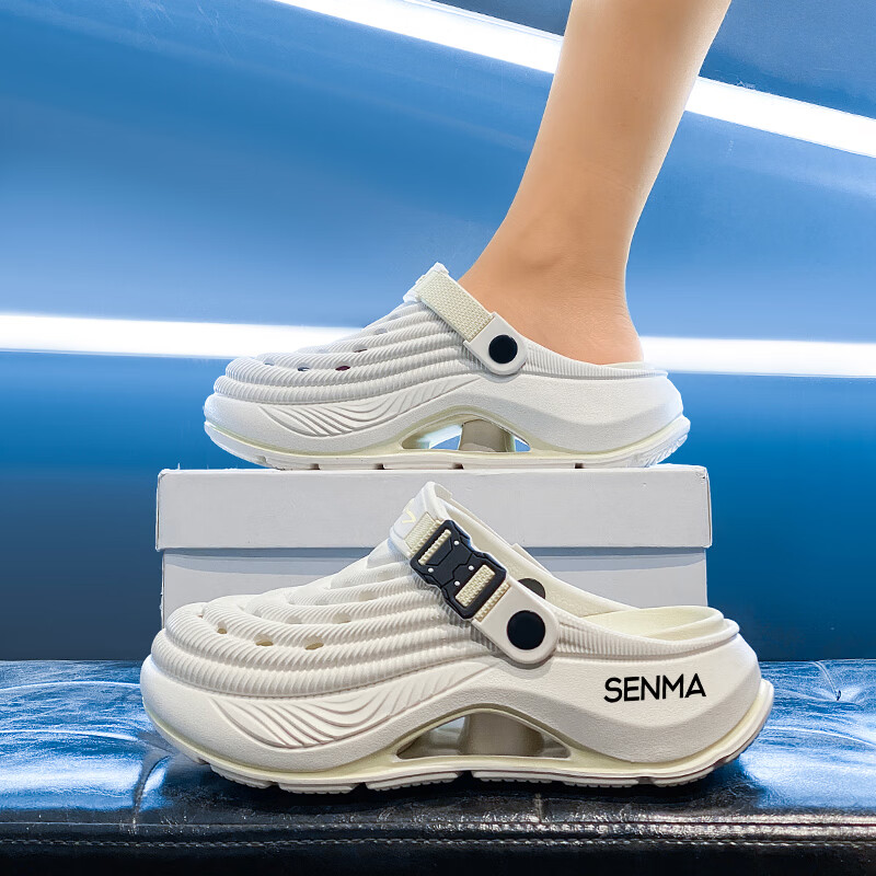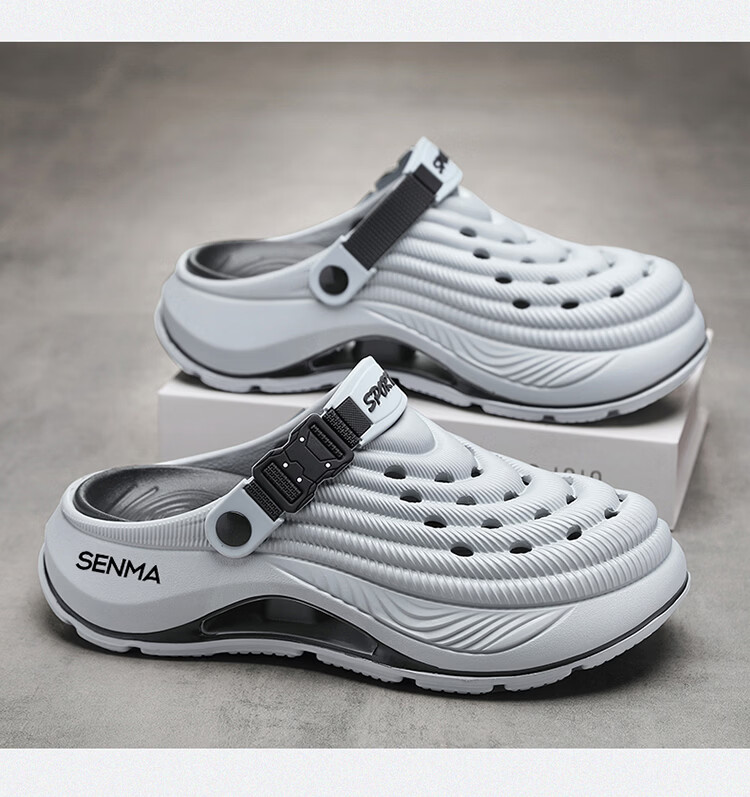 森馬洞洞鞋男款2026年新款夏季外穿踩屎感运动包头拖鞋涉水沙滩凉拖鞋 白蓝【基础款】 42-43 【现货秒发】