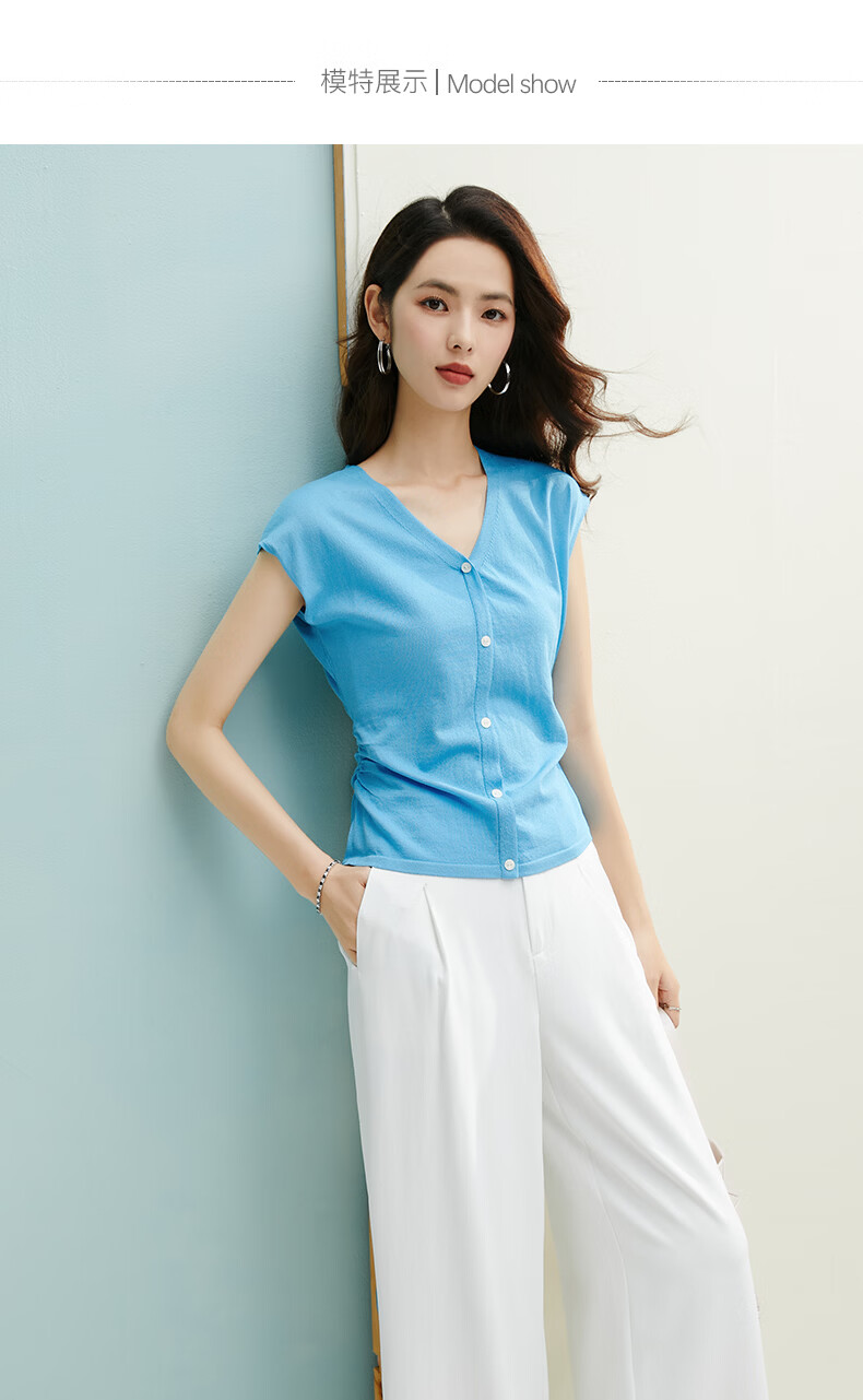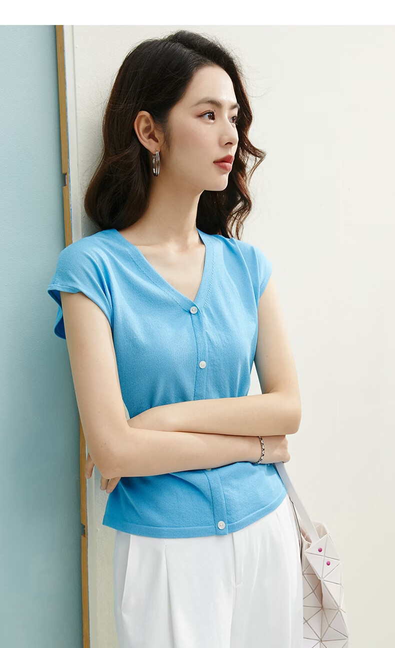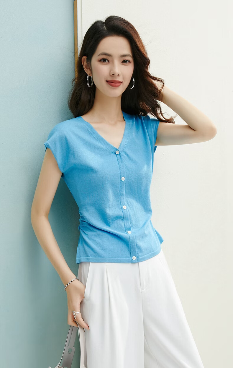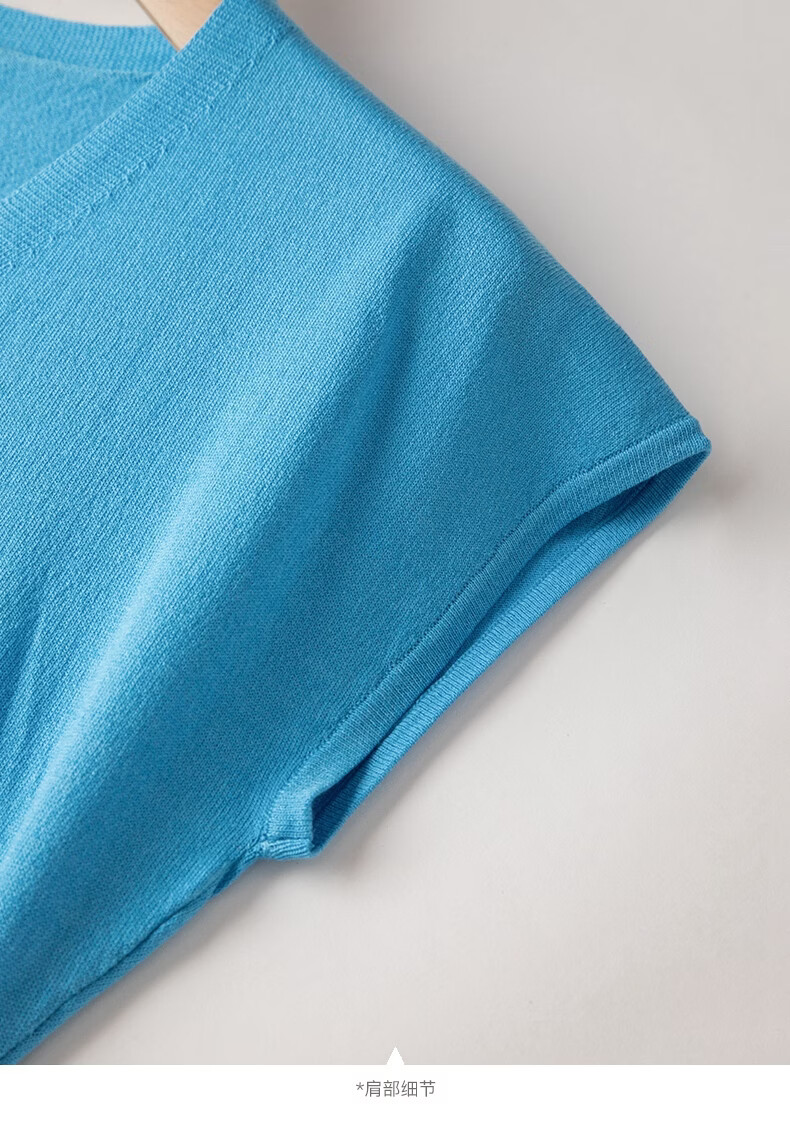晚白【新品】2026年春款V领打底上衣亲肤舒适弹力套头针织衫女 蓝色 L