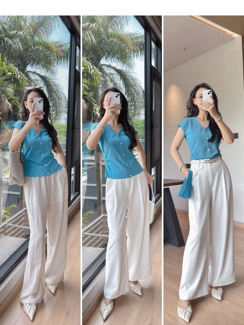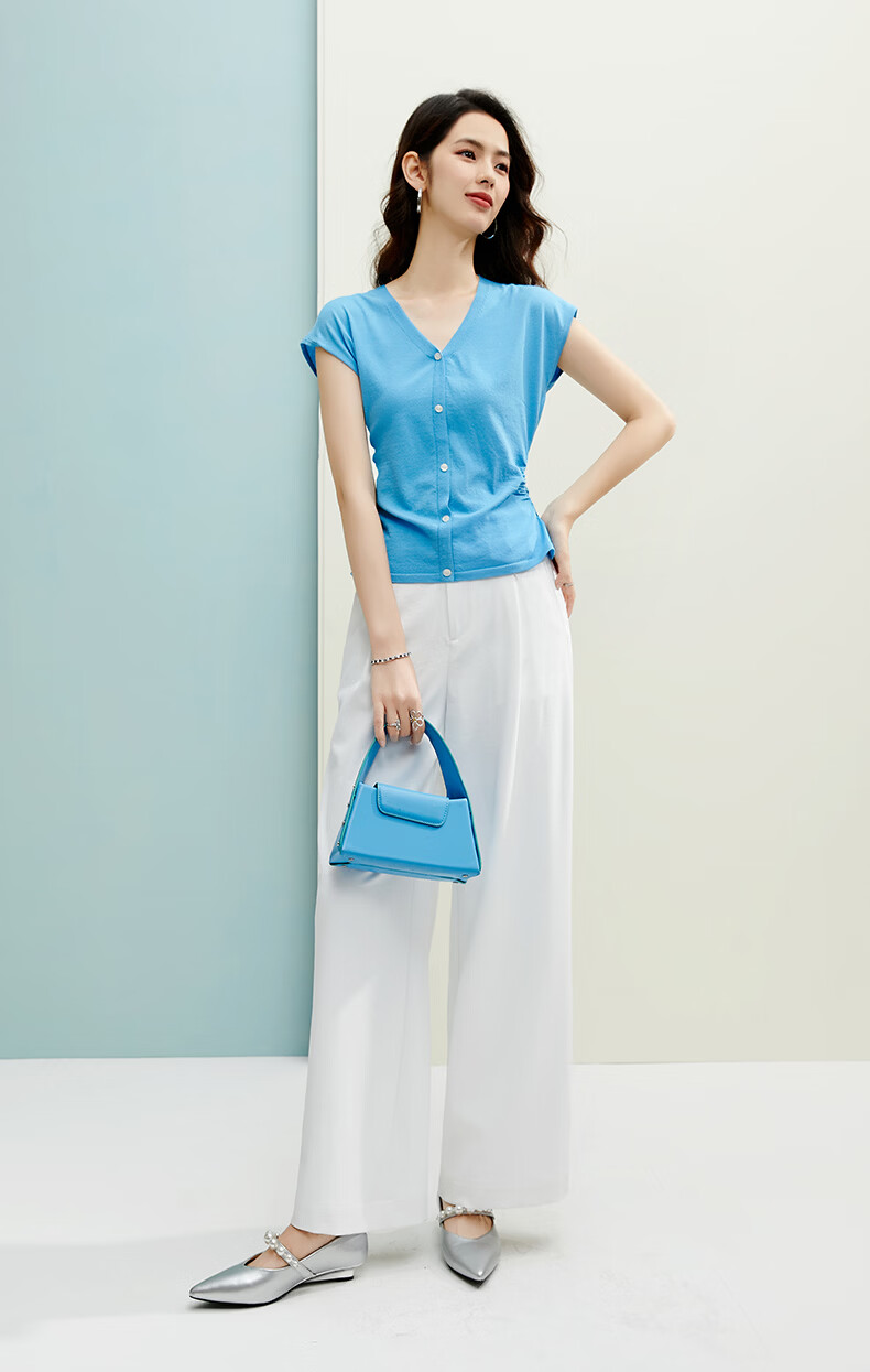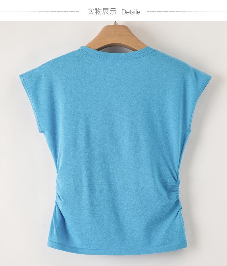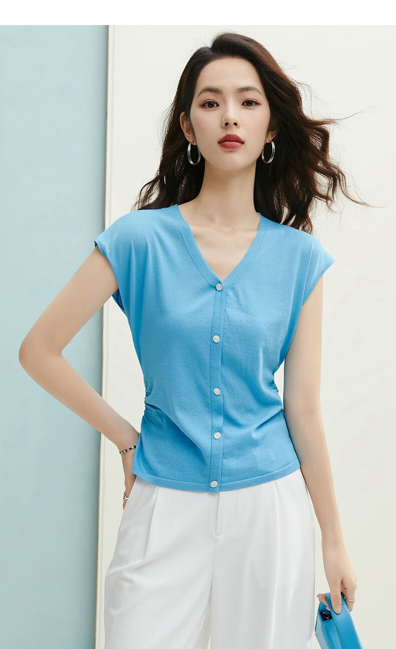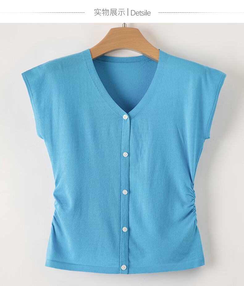 晚白【新品】2026年春款V领打底上衣亲肤舒适弹力套头针织衫女 蓝色 L