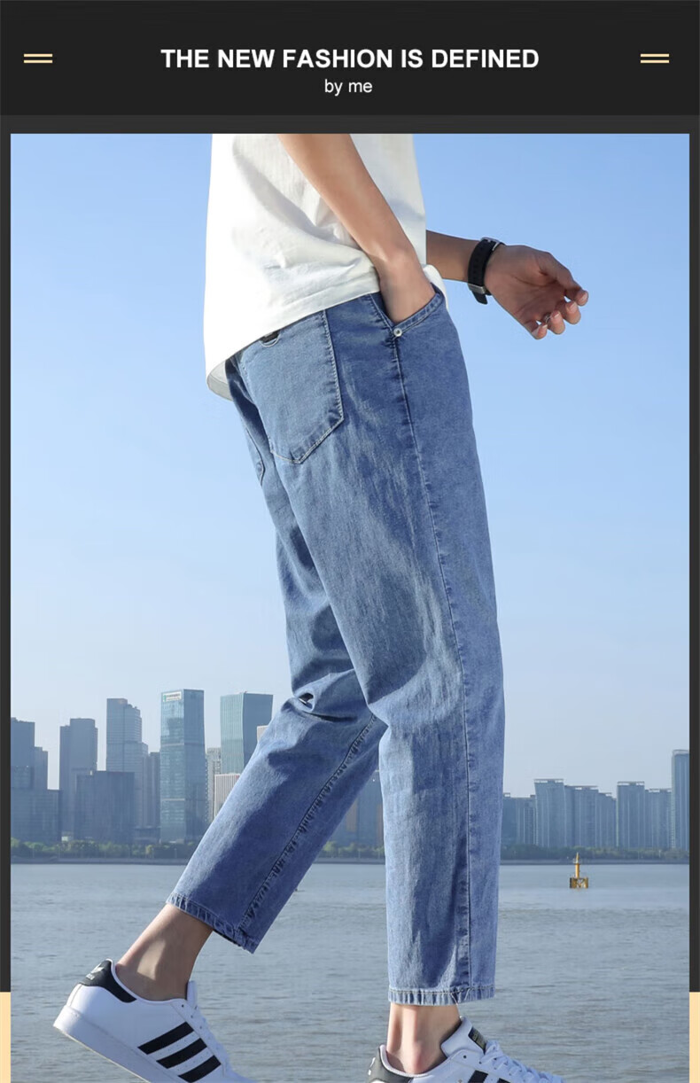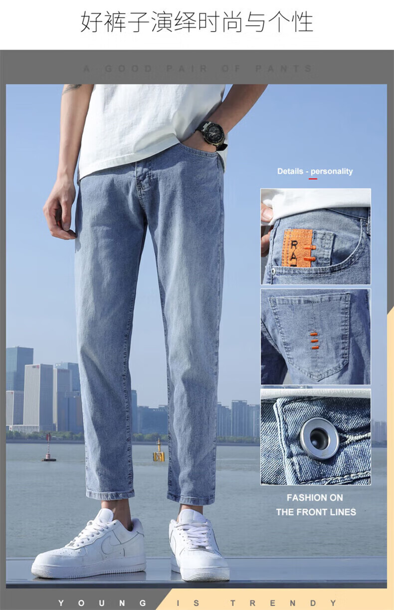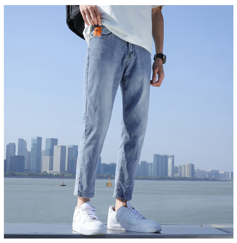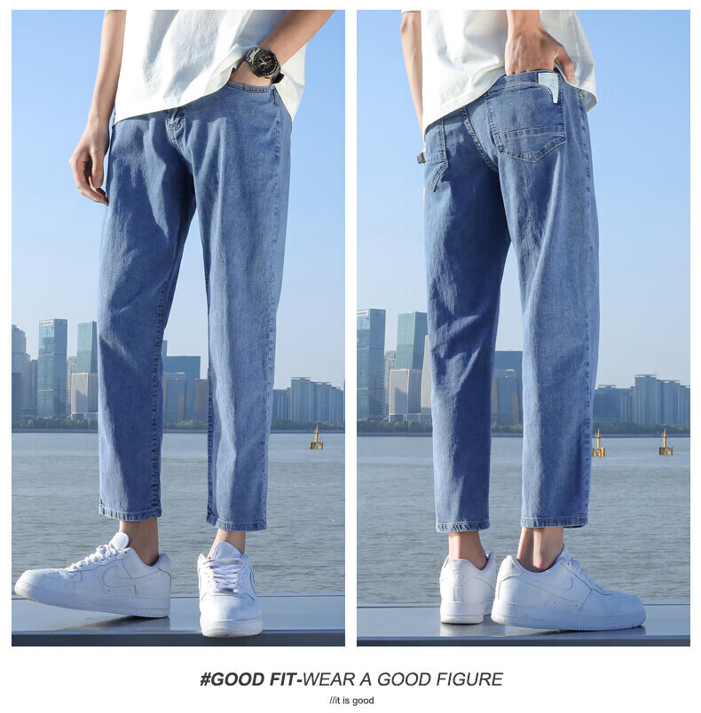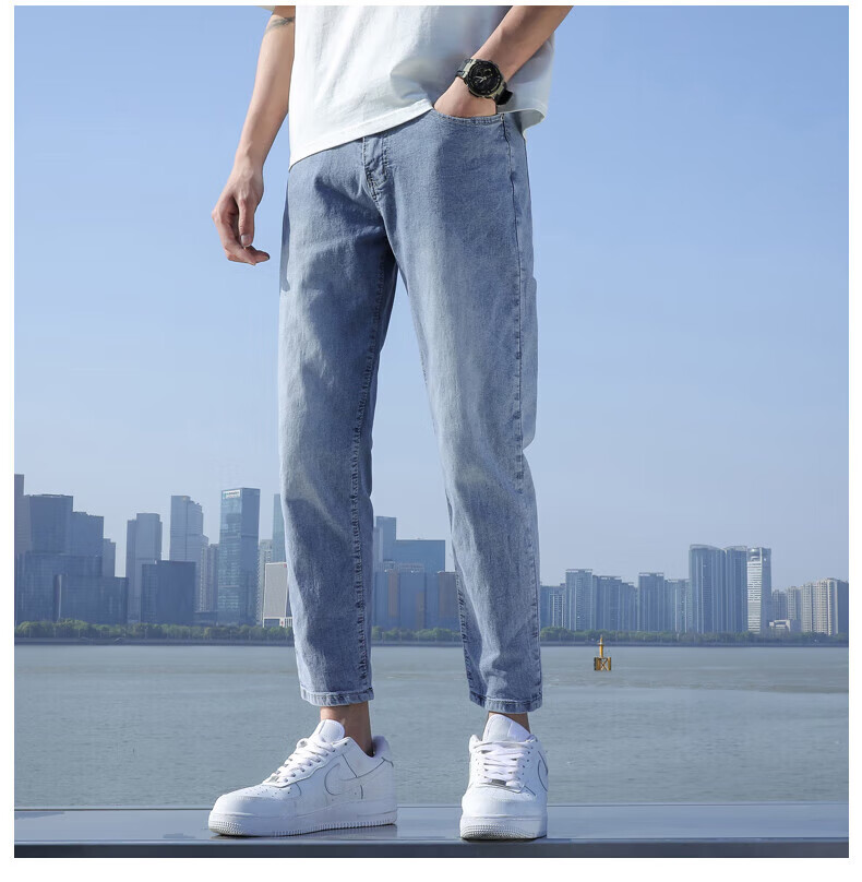 真维斯(Jeanswest)2026春夏季新款牛仔裤男士修身直筒男裤潮流百搭男款休闲九分裤子 T10浅蓝 28 码(2尺1)