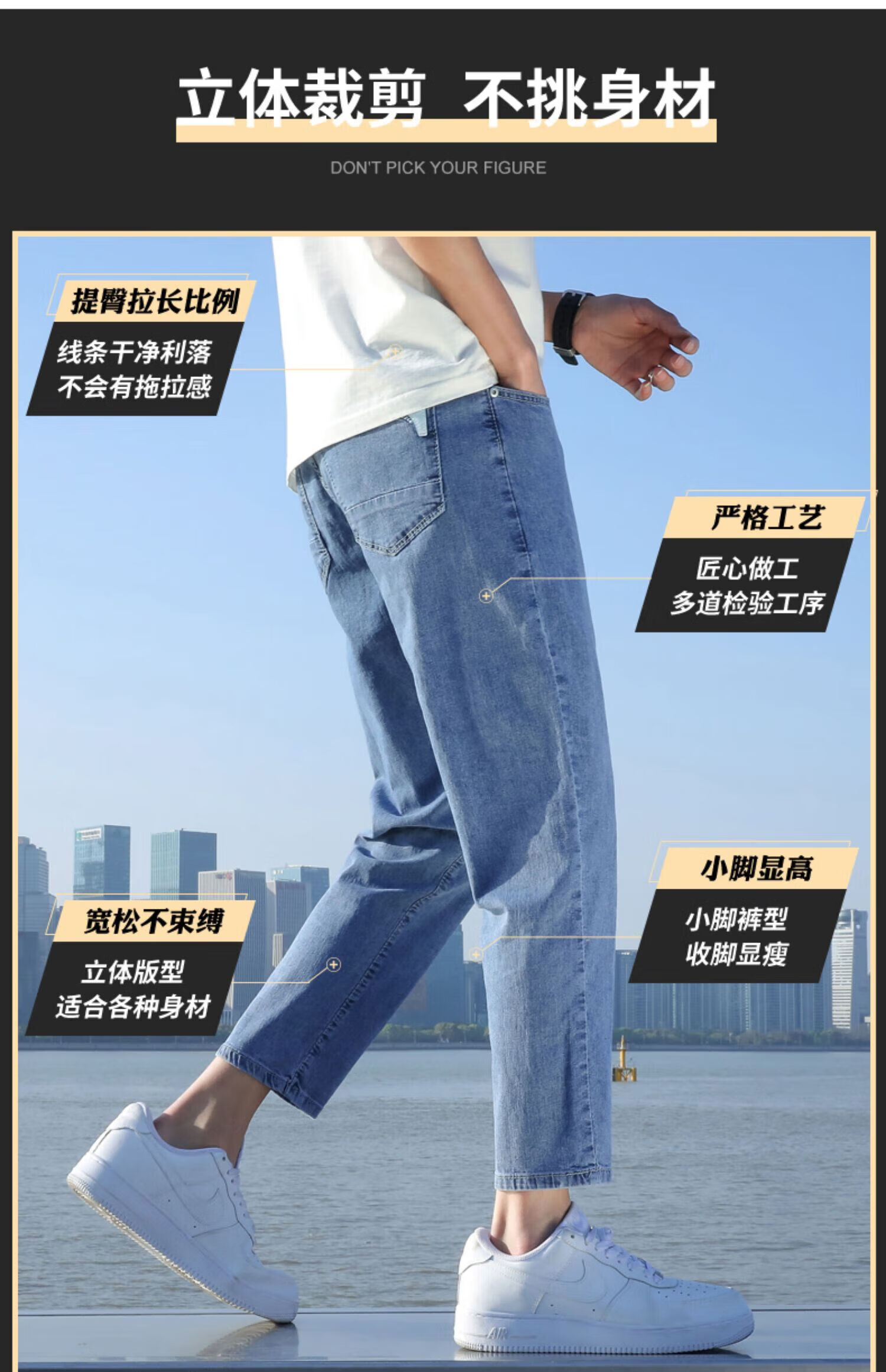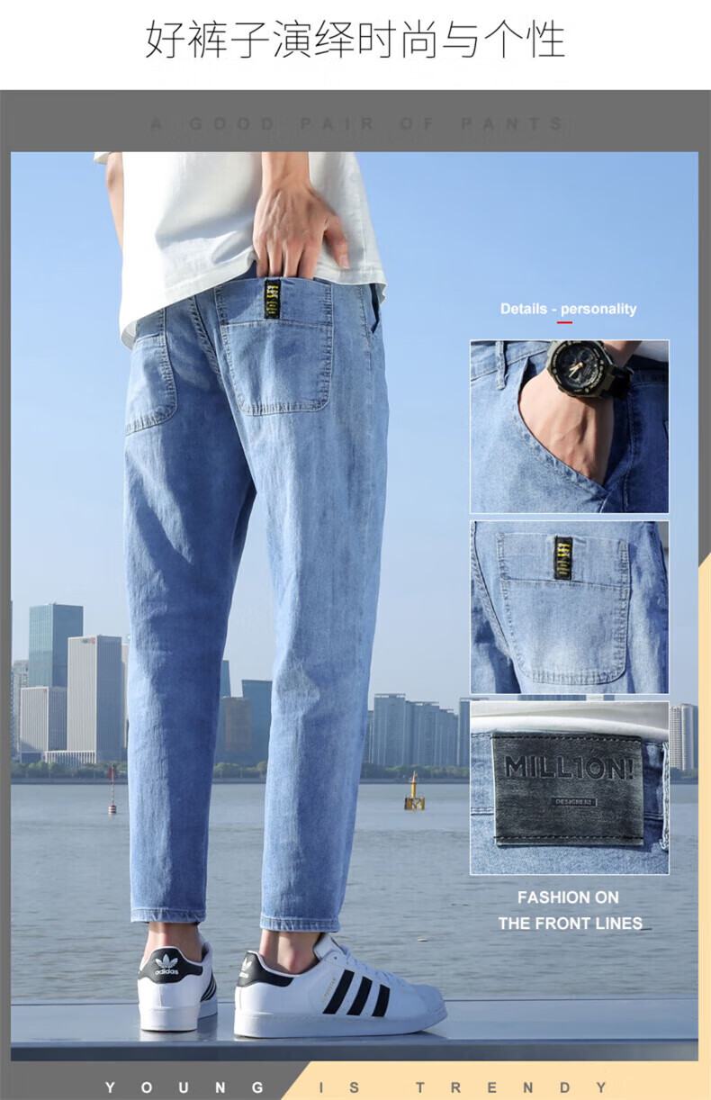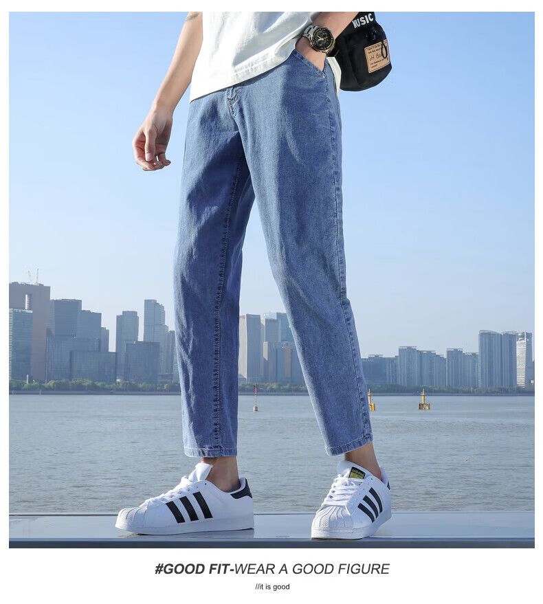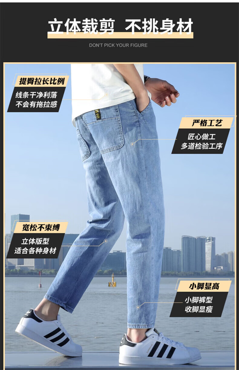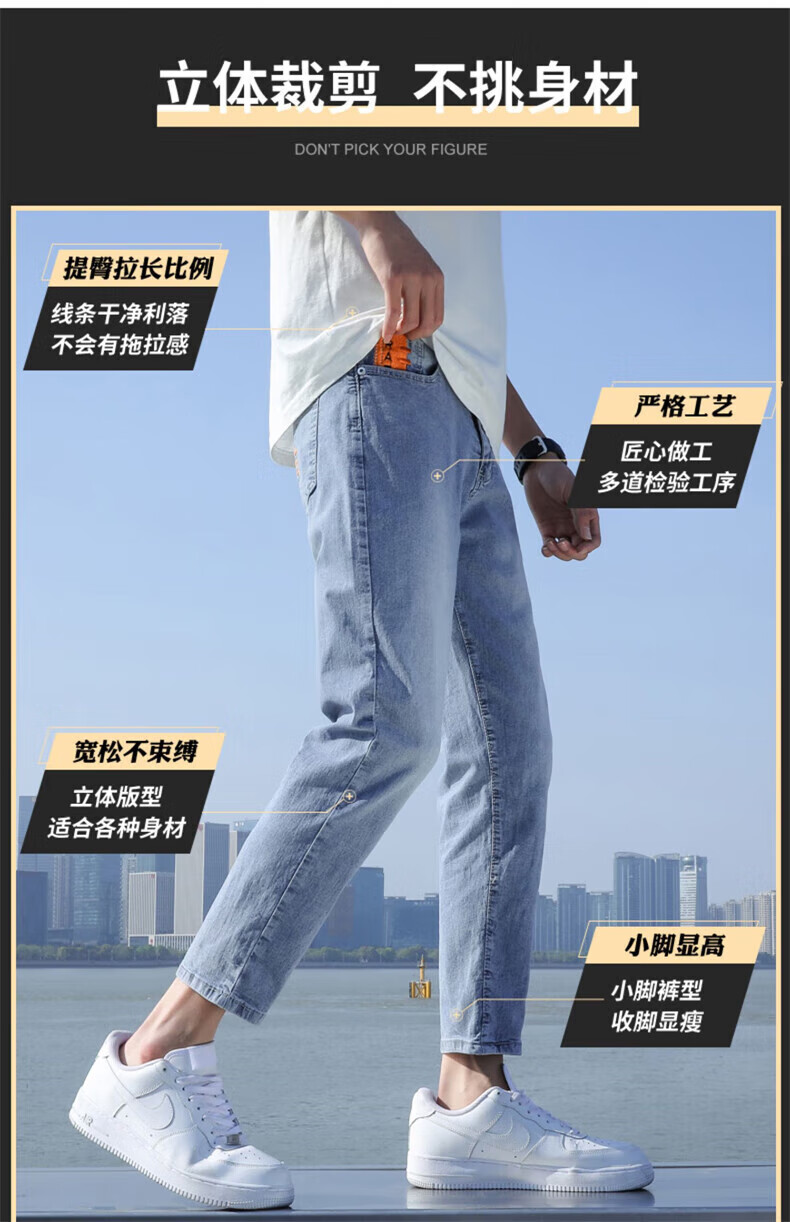 真维斯(Jeanswest)2026春夏季新款牛仔裤男士修身直筒男裤潮流百搭男款休闲九分裤子 T10浅蓝 28 码(2尺1)