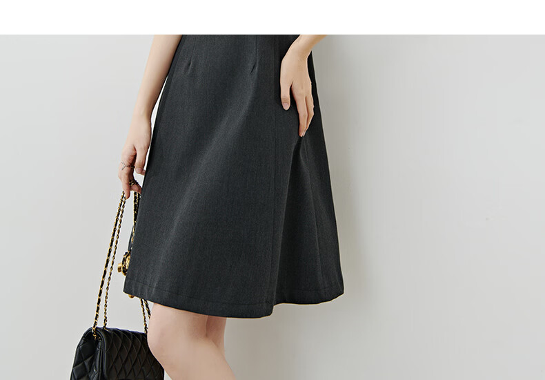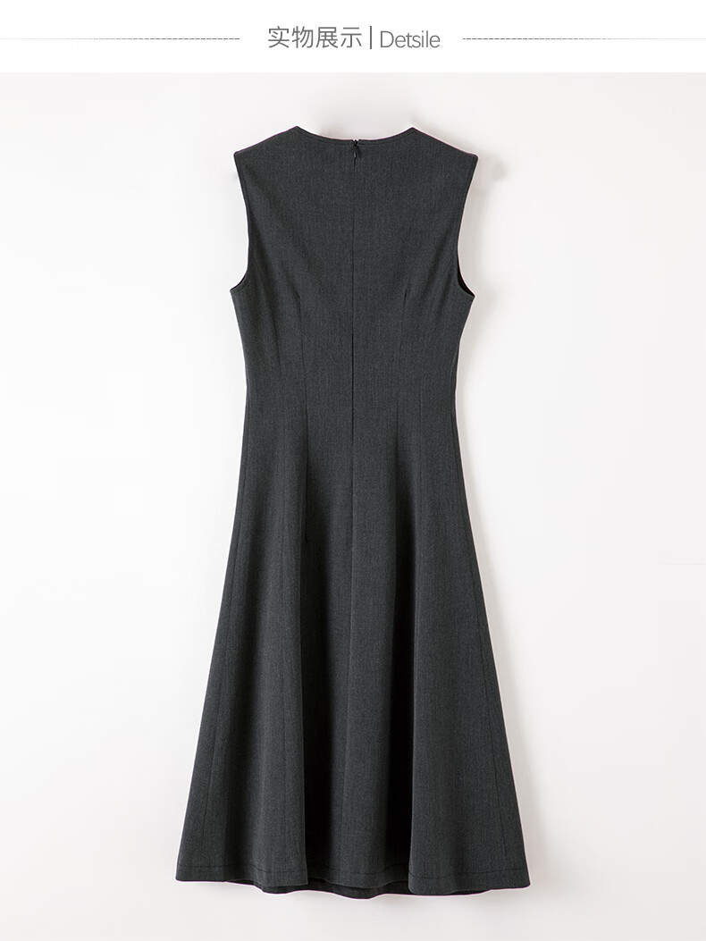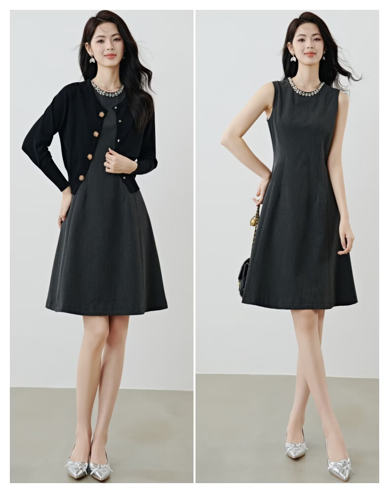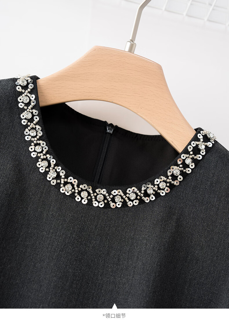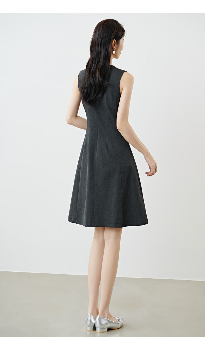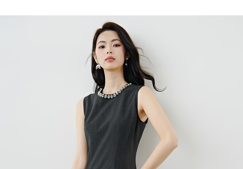 晚白【新品】2026年春款钉珠圆领裙子小个子修身显瘦无袖连衣裙 深灰色 S