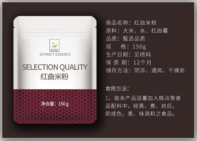 谷本道元红曲米粉150g天然食用色素红丝绒蛋糕烘焙原料卤味香肠馒头上色用