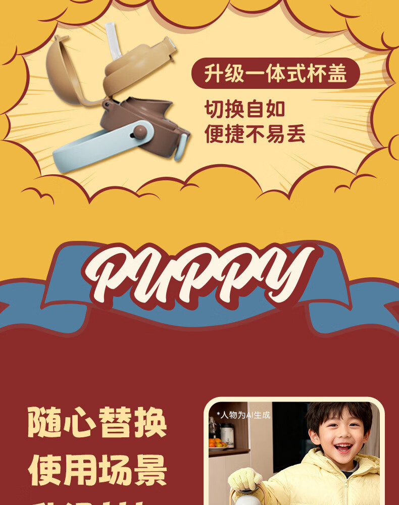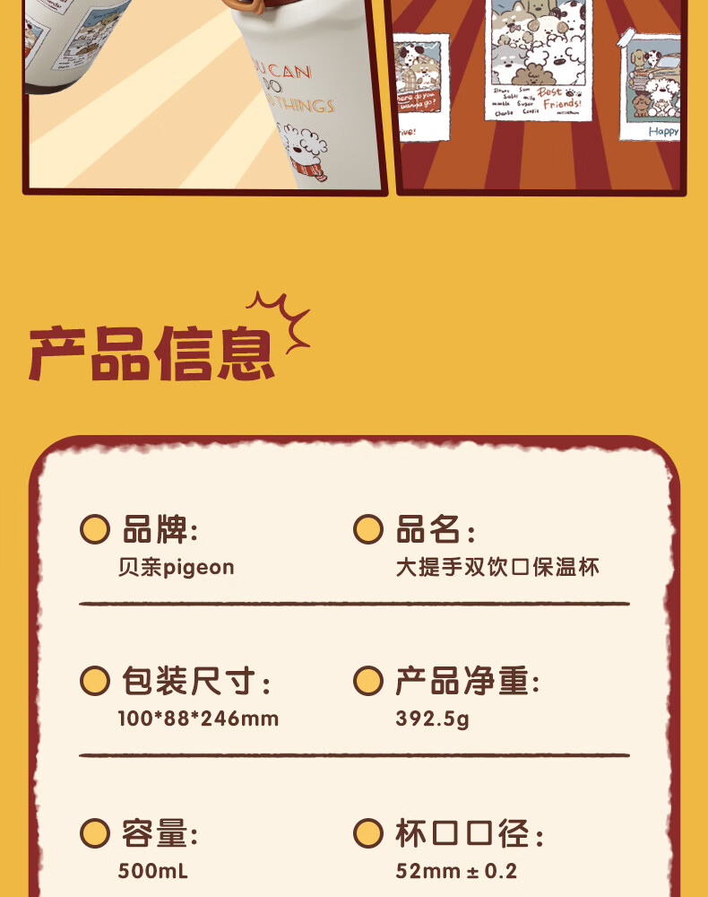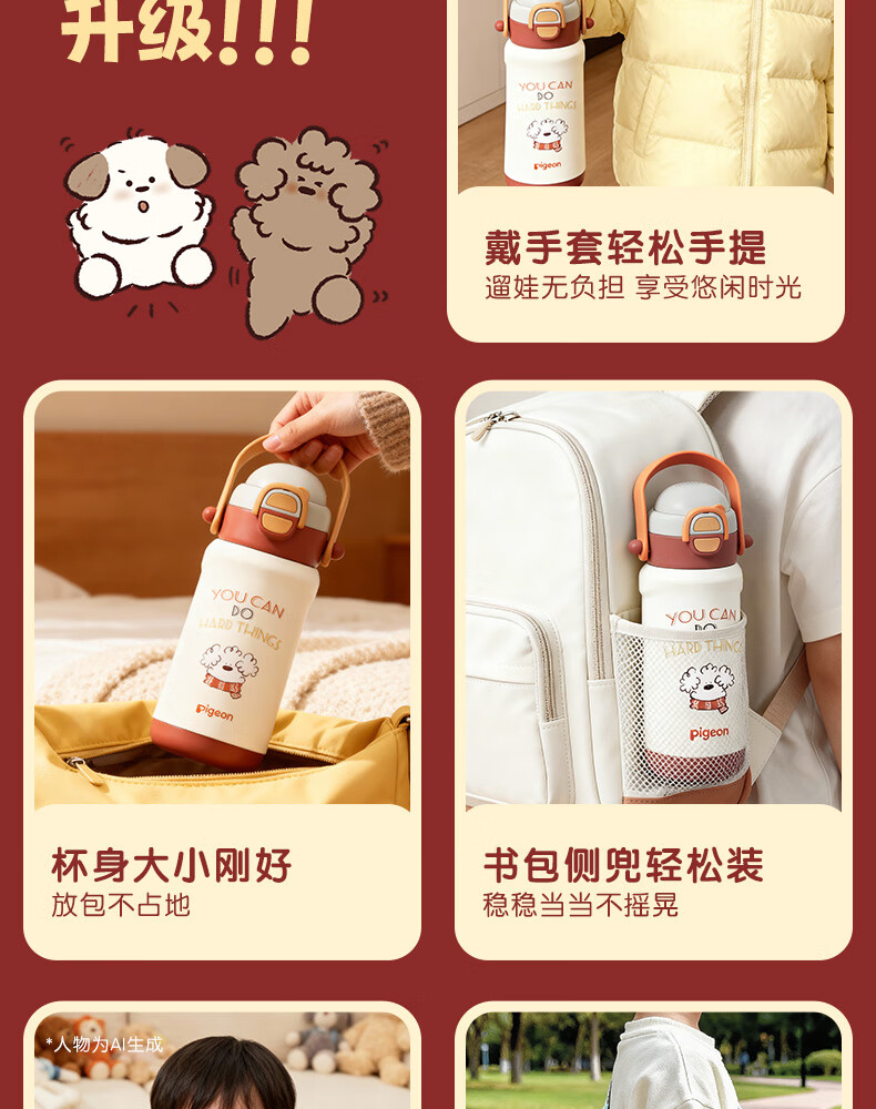 贝亲(Pigeon)miiichan儿童保温杯 双饮提手杯500ml (复古围巾小狗)