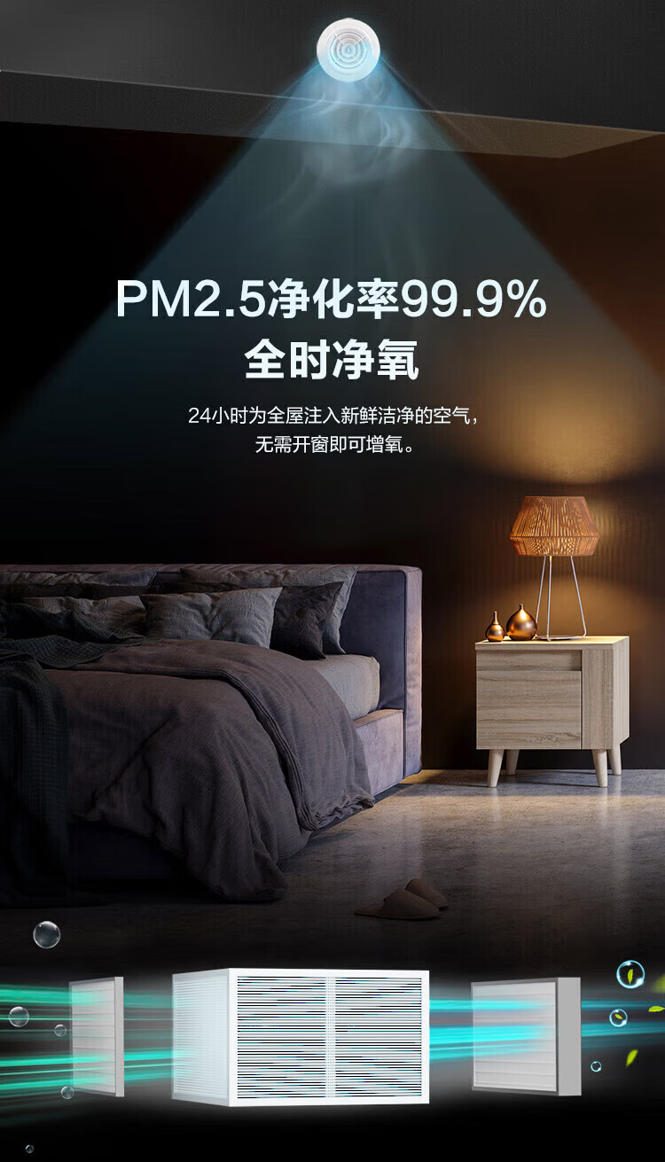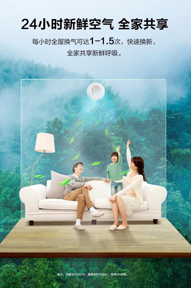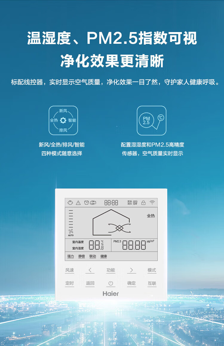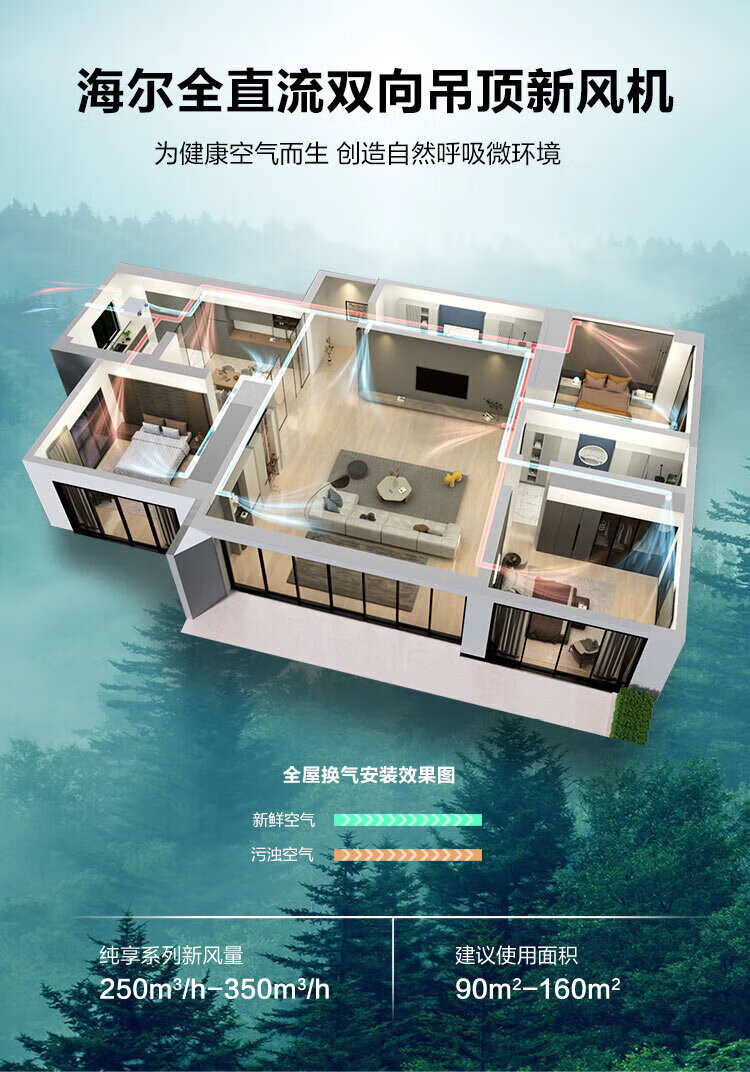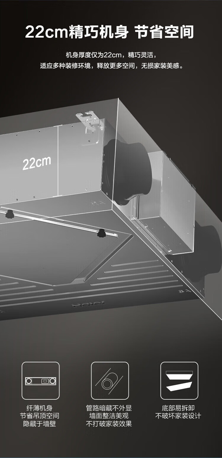 海尔全屋新风系统家用中央空调新风机全热交换器除霾除pm2.5空气净化换气增氧 吊顶安装 套装25新风机90-120m2