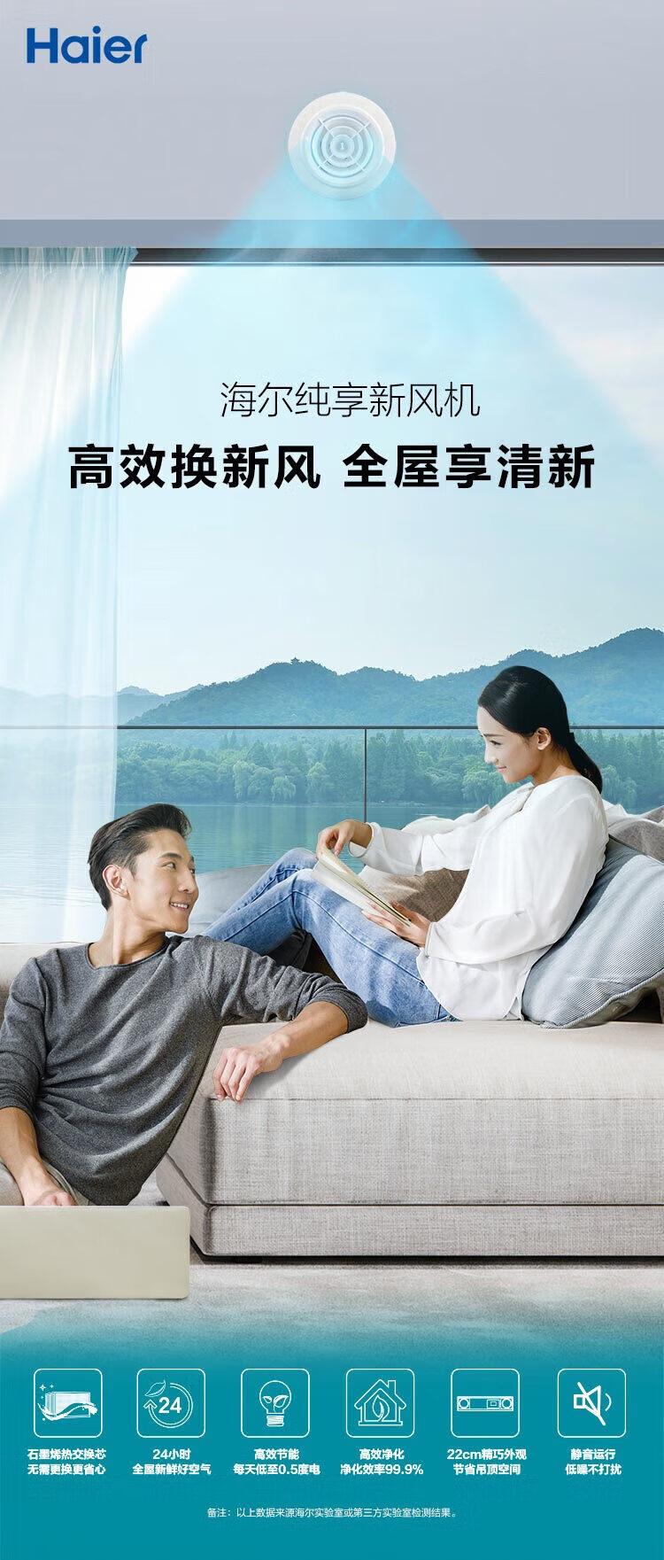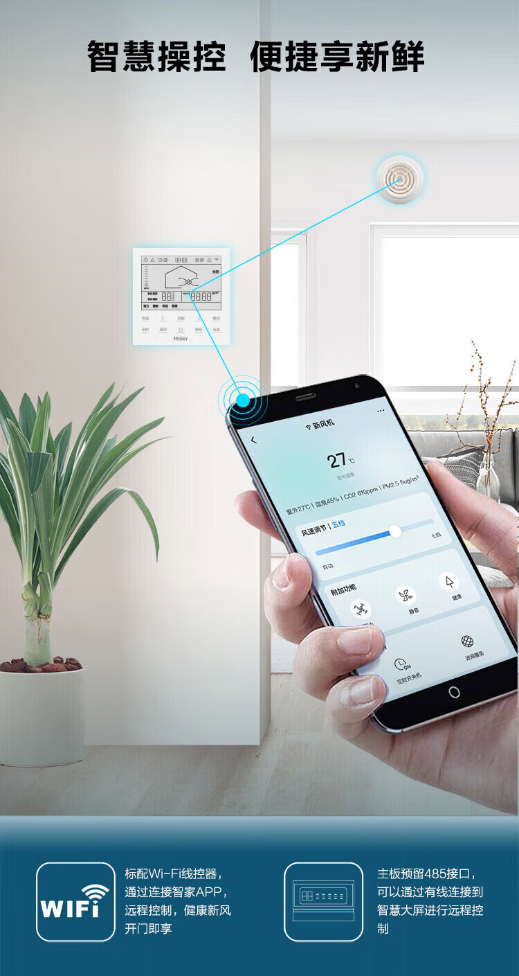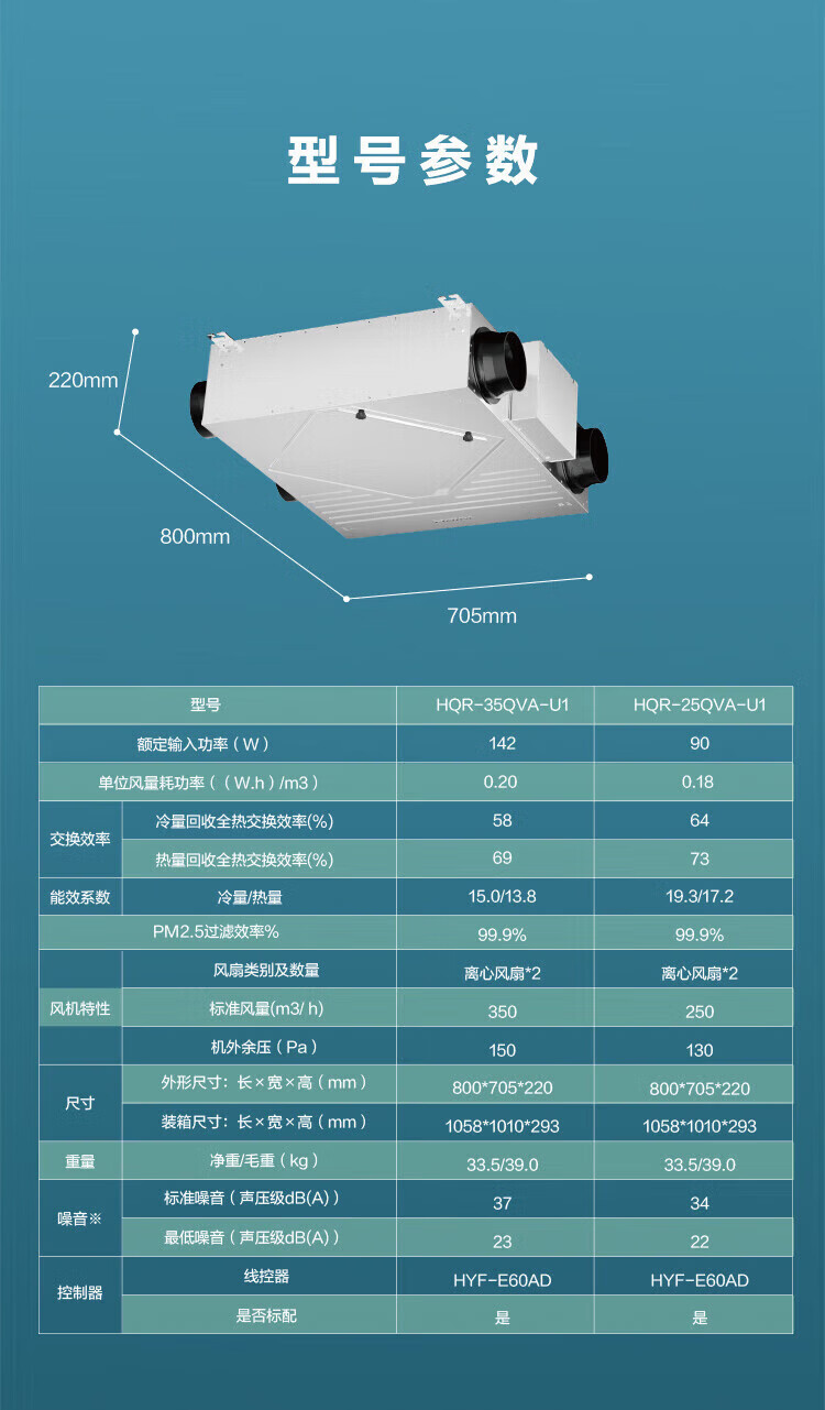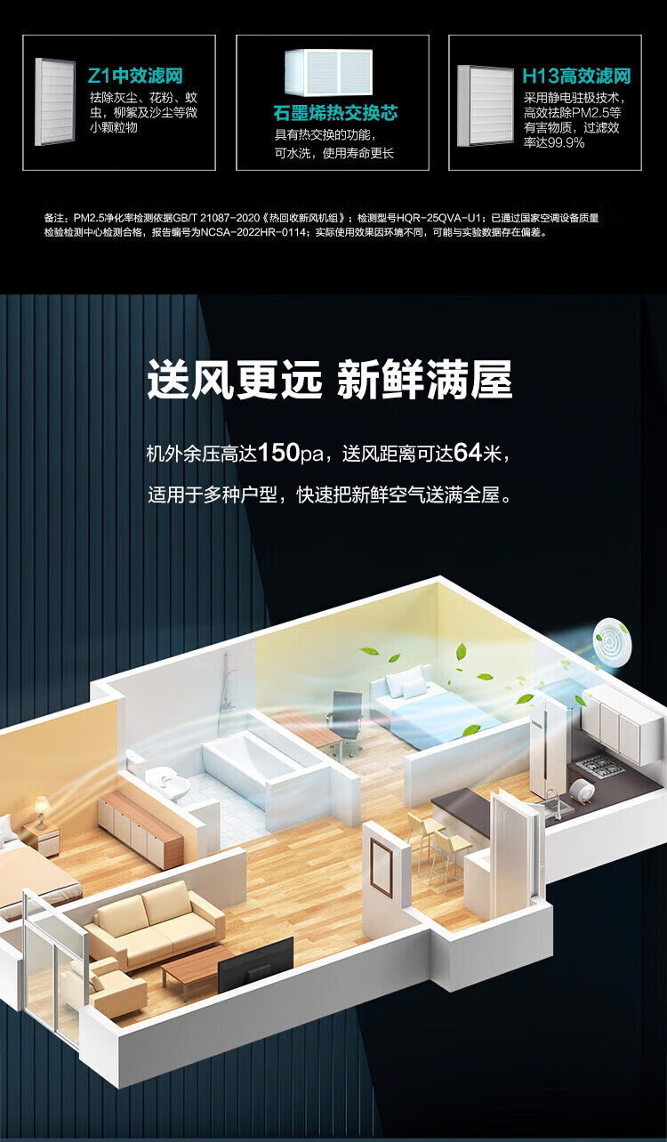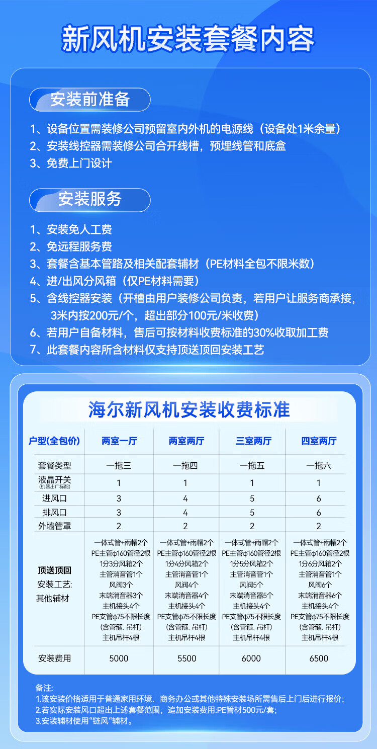 海尔全屋新风系统家用中央空调新风机全热交换器除霾除pm2.5空气净化换气增氧 吊顶安装 套装25新风机90-120m2