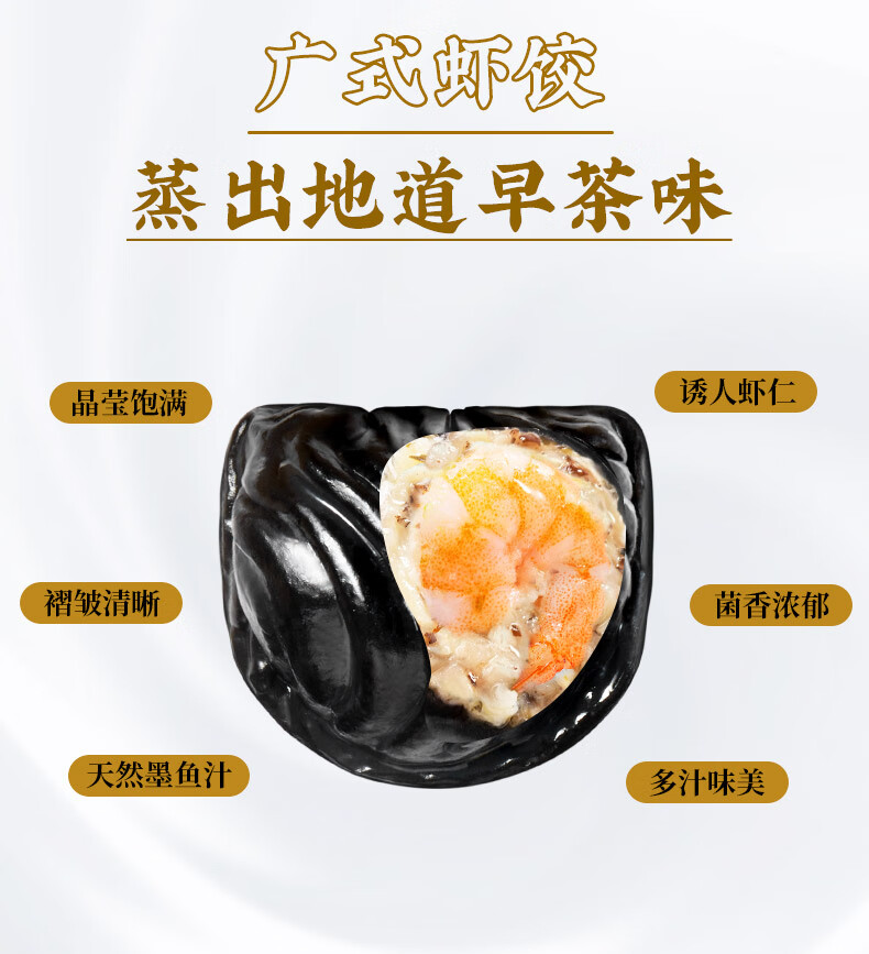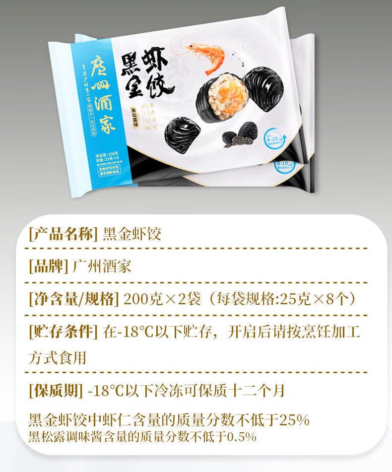 广州酒家黑金虾饺200g*2袋 16个 儿童早餐 早茶点心 速食面点速冻开学季