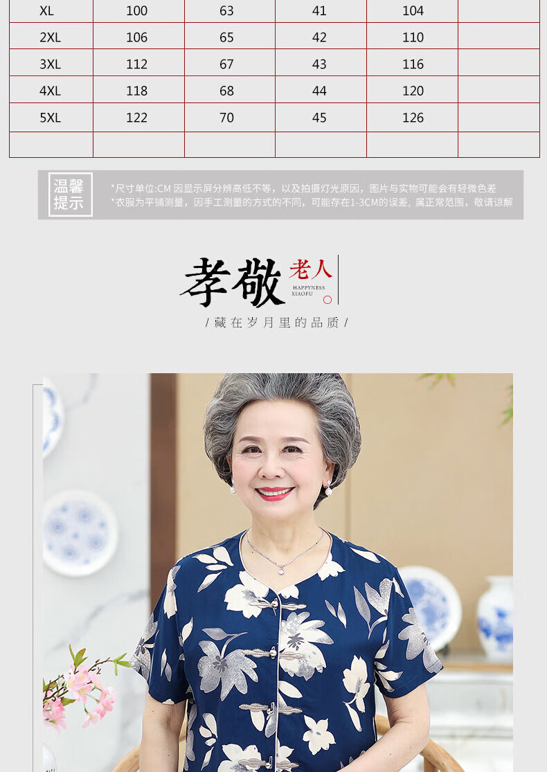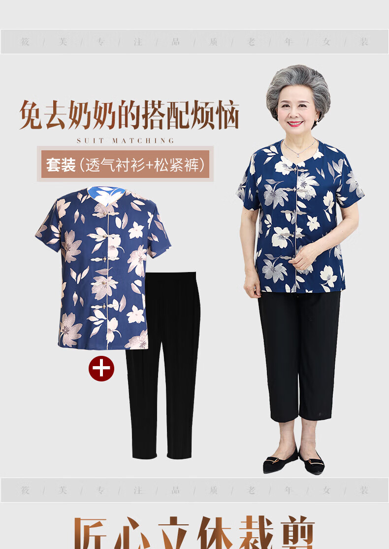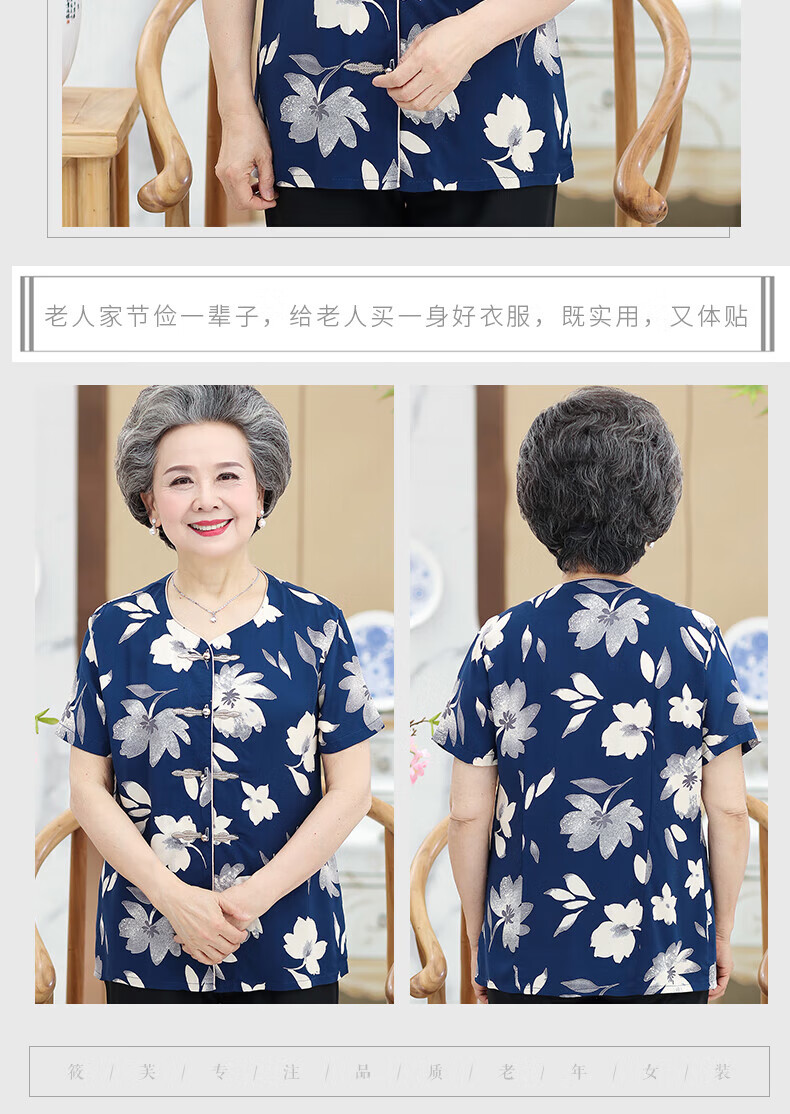 孜颜老年人女装中老年夏装妈妈装套装棉麻两件套70岁80奶奶装夏天衣服 1号蓝底白花 XL (建议80-100斤)