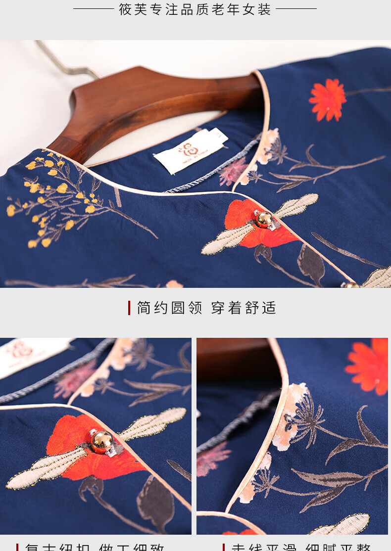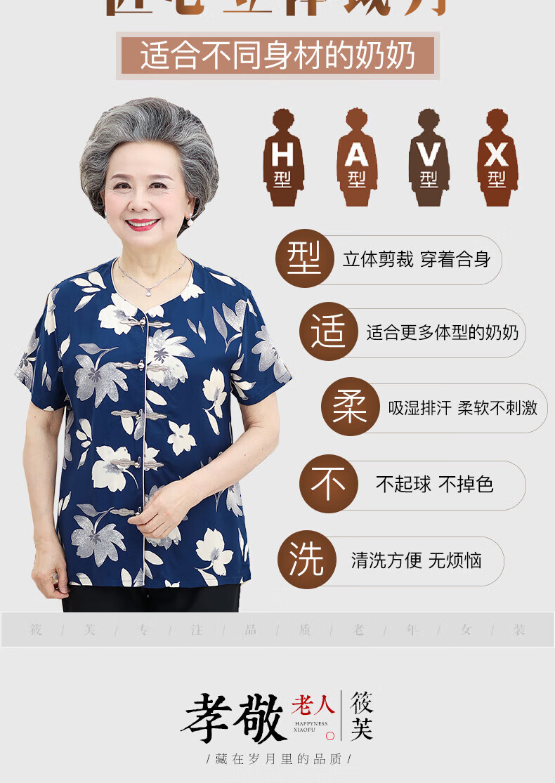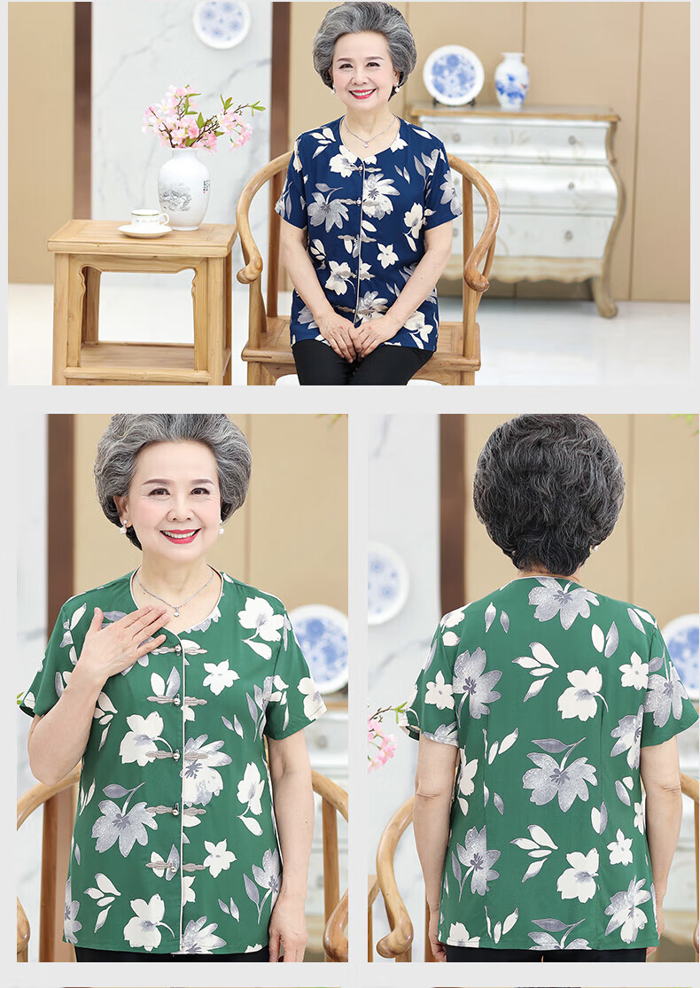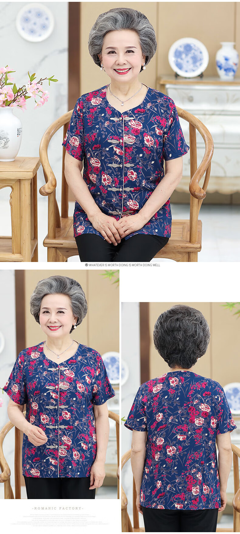 孜颜老年人女装中老年夏装妈妈装套装棉麻两件套70岁80奶奶装夏天衣服 1号蓝底白花 XL (建议80-100斤)
