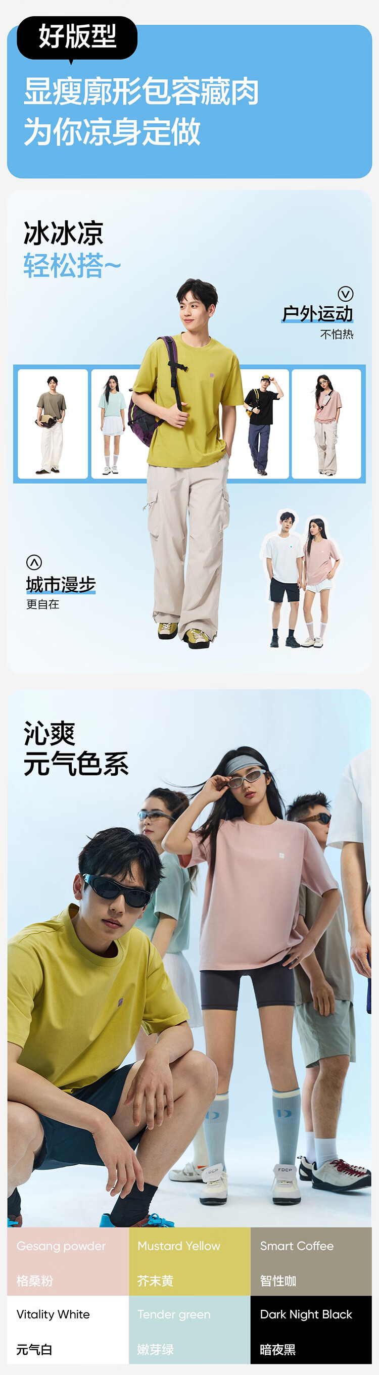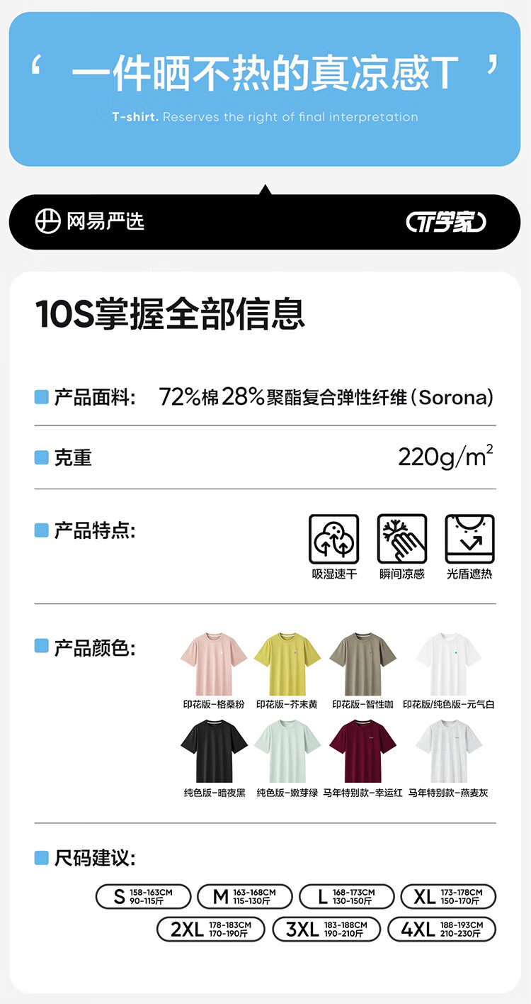 网易严选26新品凉感T恤短袖吸湿速干防晒冰感圆领男女同款显瘦廓形 印花版-智性咖 XL 适合150-170斤
