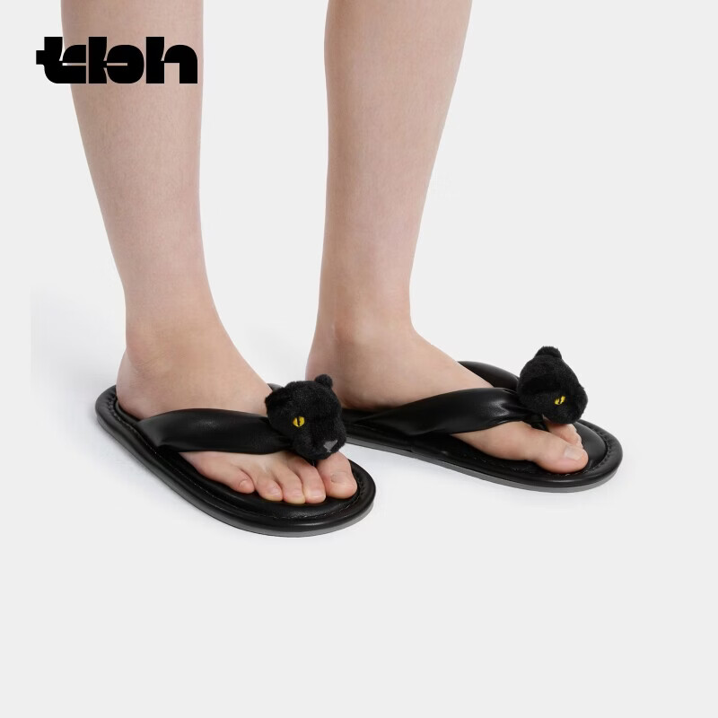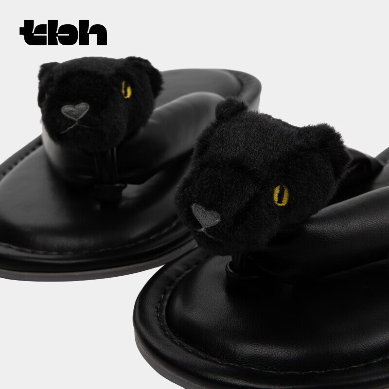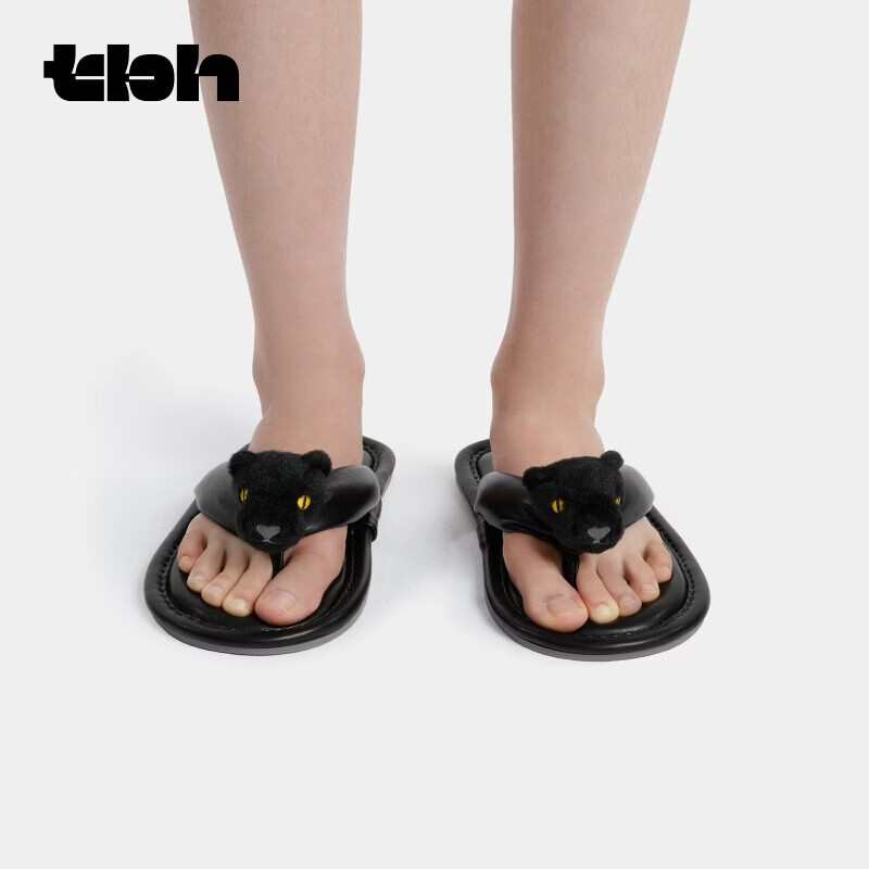 野兽派家居(tbh)都市野兽黑豹毛绒人字拖夏季拖鞋可外穿室内家居鞋 “都市野兽”黑豹人字拖 36-37