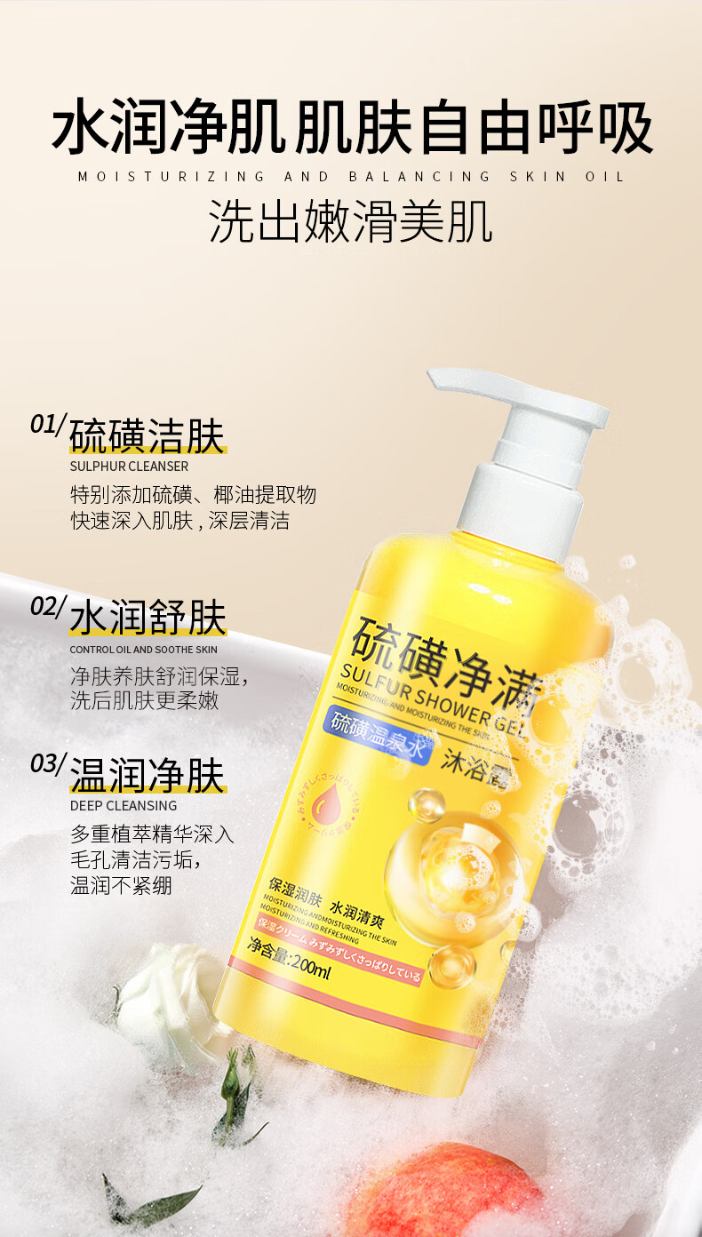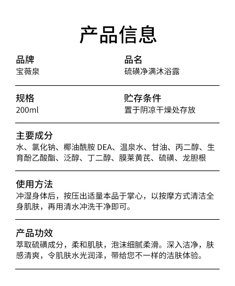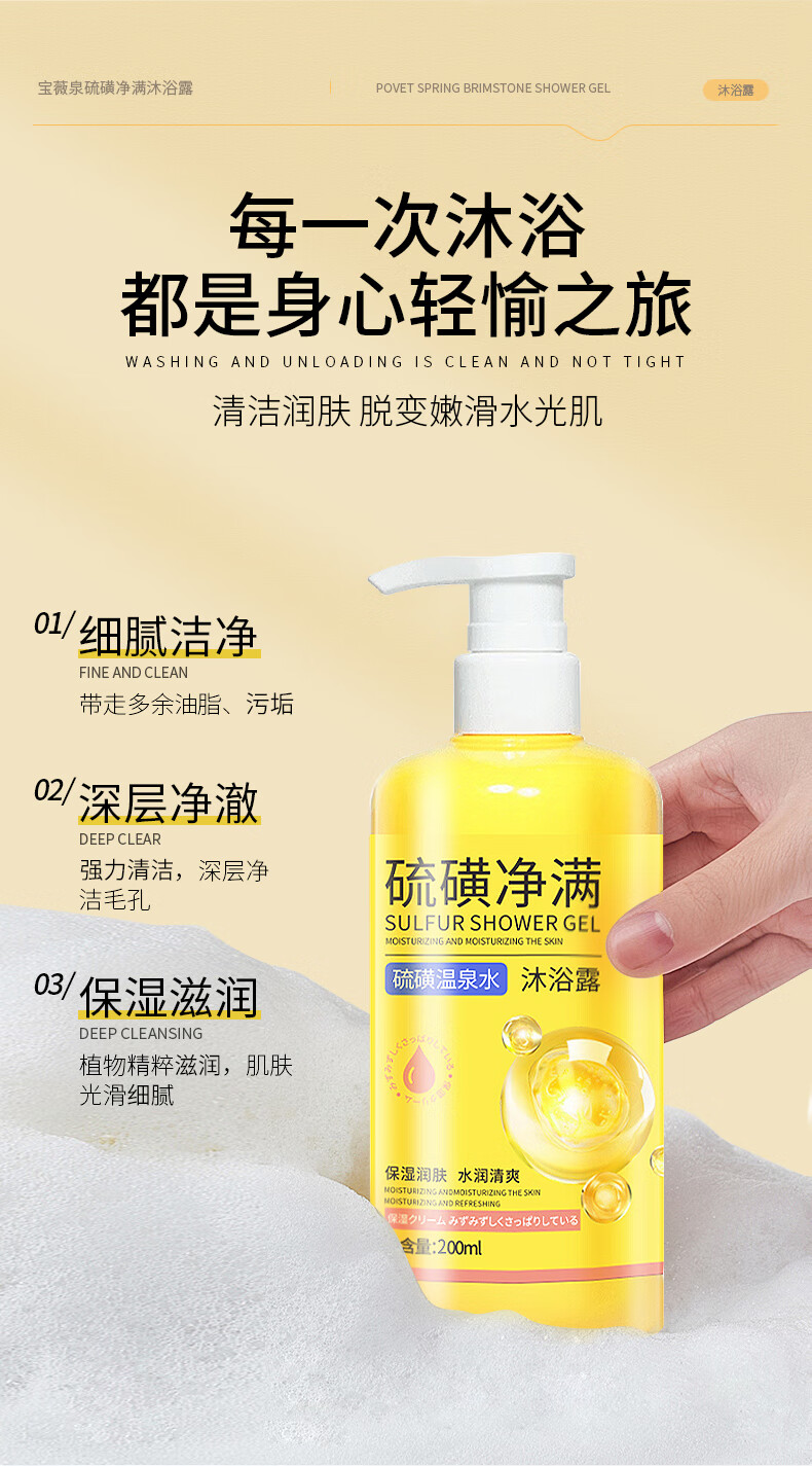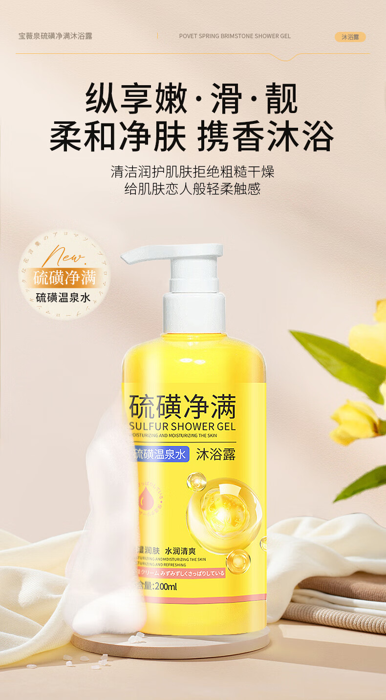 硫磺温泉水沐浴露香皂后背净满保湿持久留香深层清洁大瓶皂液正品 【商超同款】硫磺净满沐浴露200ml