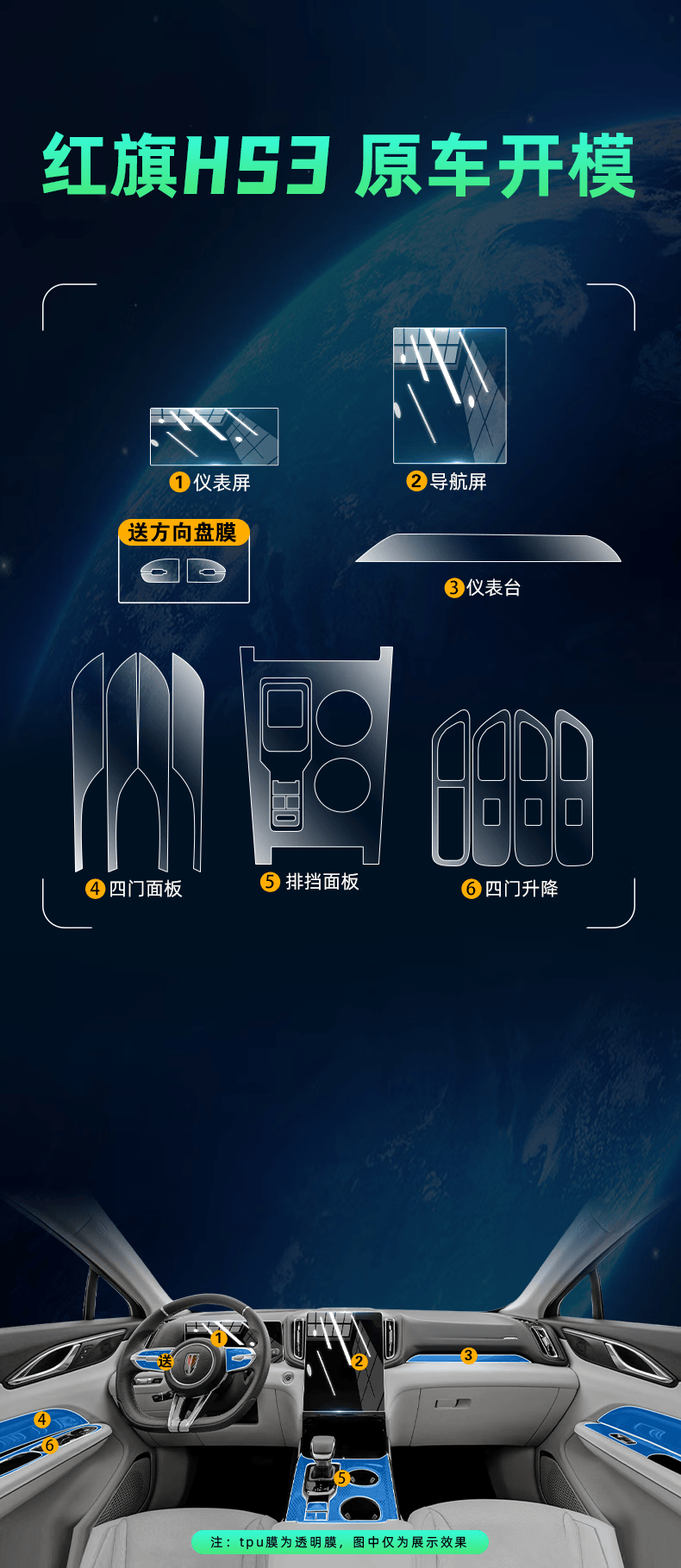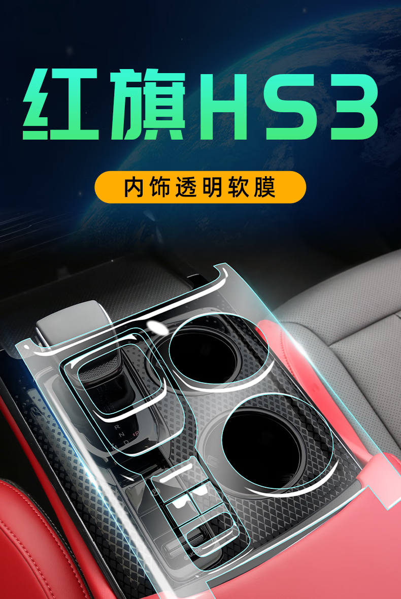 路透仕23-25款红旗HS3导航钢化膜中控液晶显示大屏幕玻璃保护贴膜改装饰 红旗HS3【内饰TPU+两屏蓝光钢化膜】
