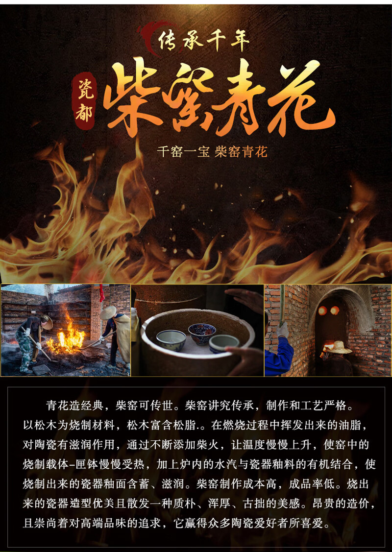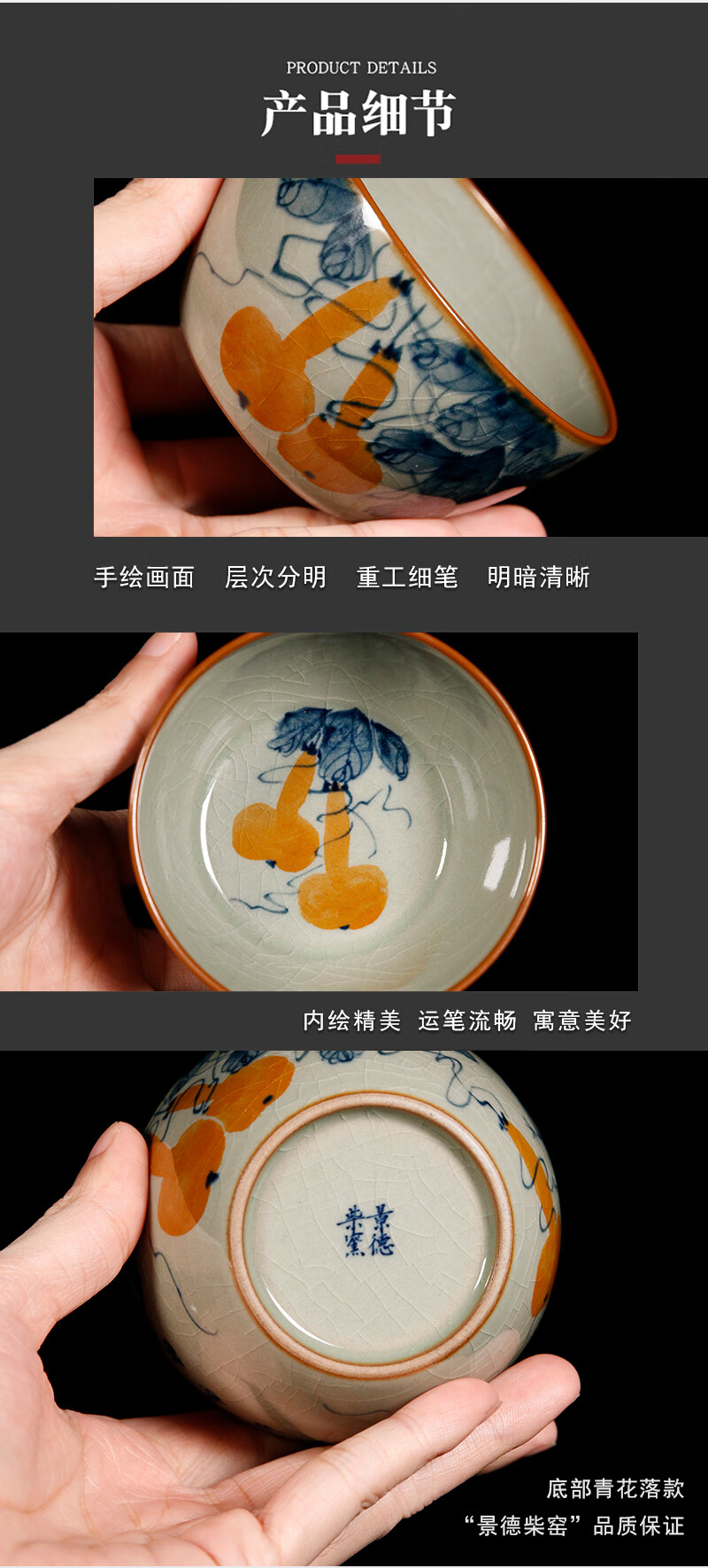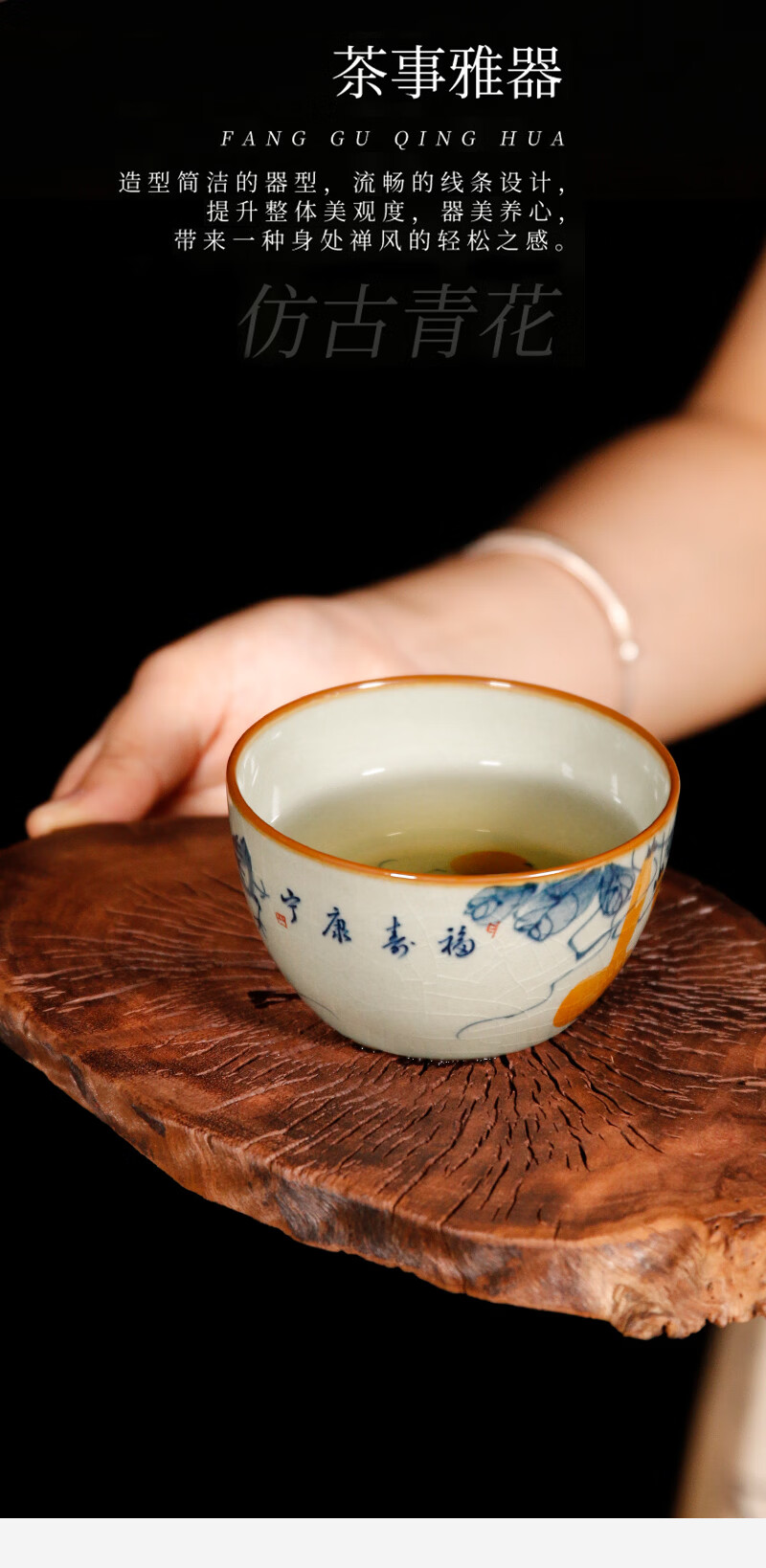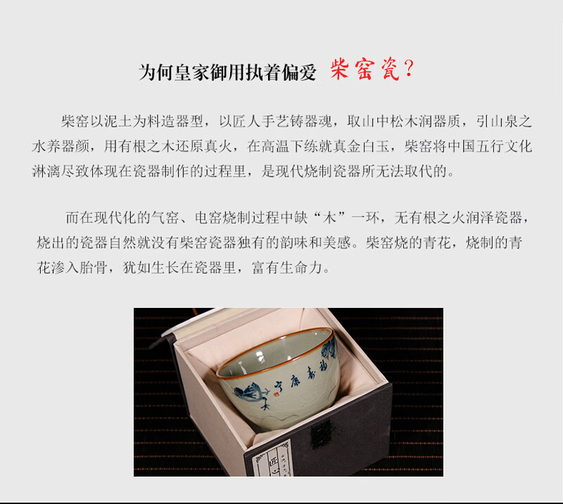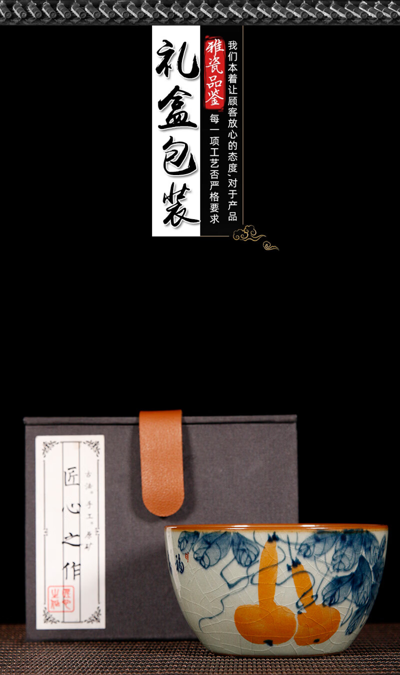 【柴房雅器】景德镇柴窑手绘青花釉里红福寿康宁卧足杯纯手工茶杯