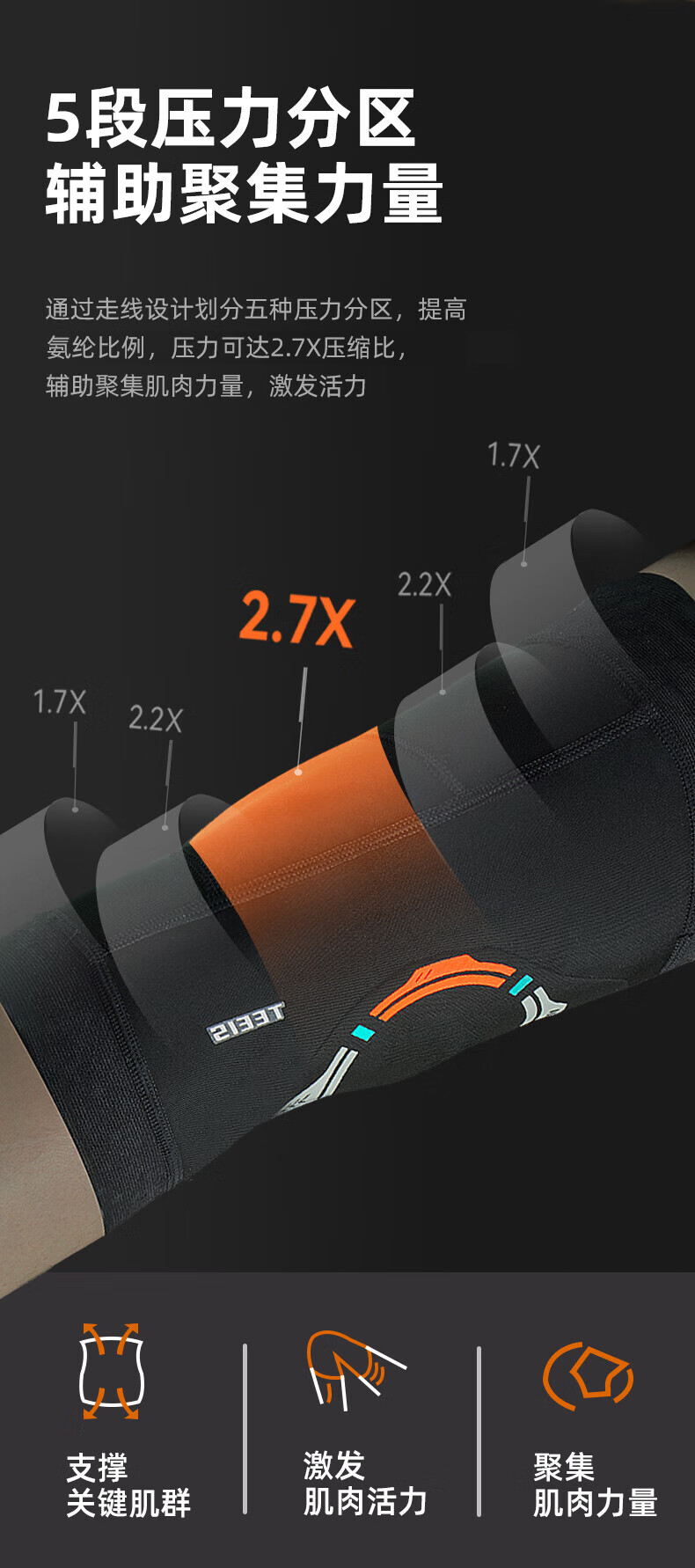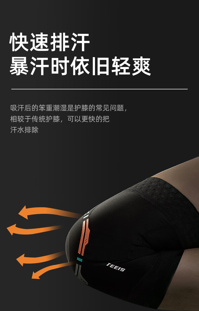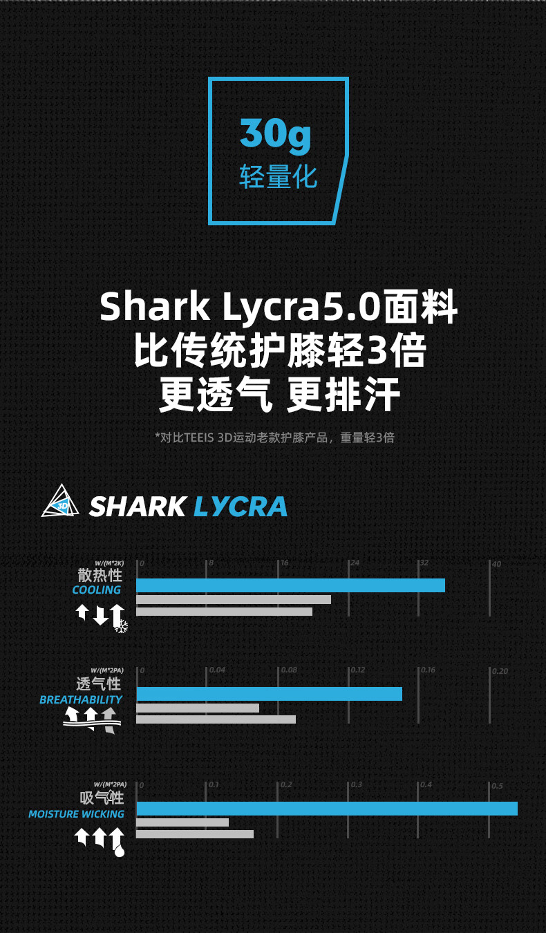 TEEIS德国护膝运动专业防护跑步专用男士女登山羽毛球半月板损伤护具 Shark Lycra 5.0 M码 丨大腿围33CM-48CM