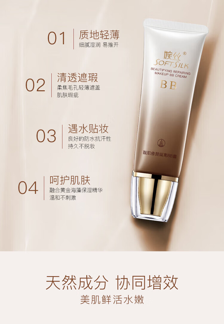 婉丝(SOFTSILK)靓肌修颜遮盖BB霜50g 提亮保湿持久不脱妆透亮礼物女生 美肌露+美肌乳+美肤霜