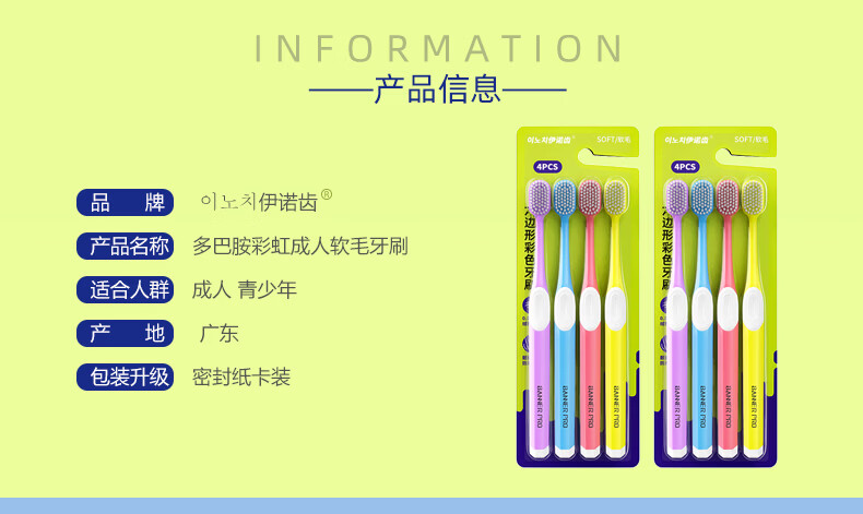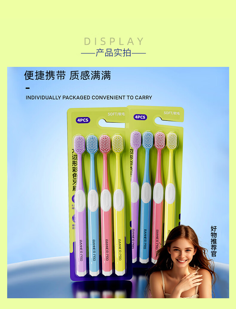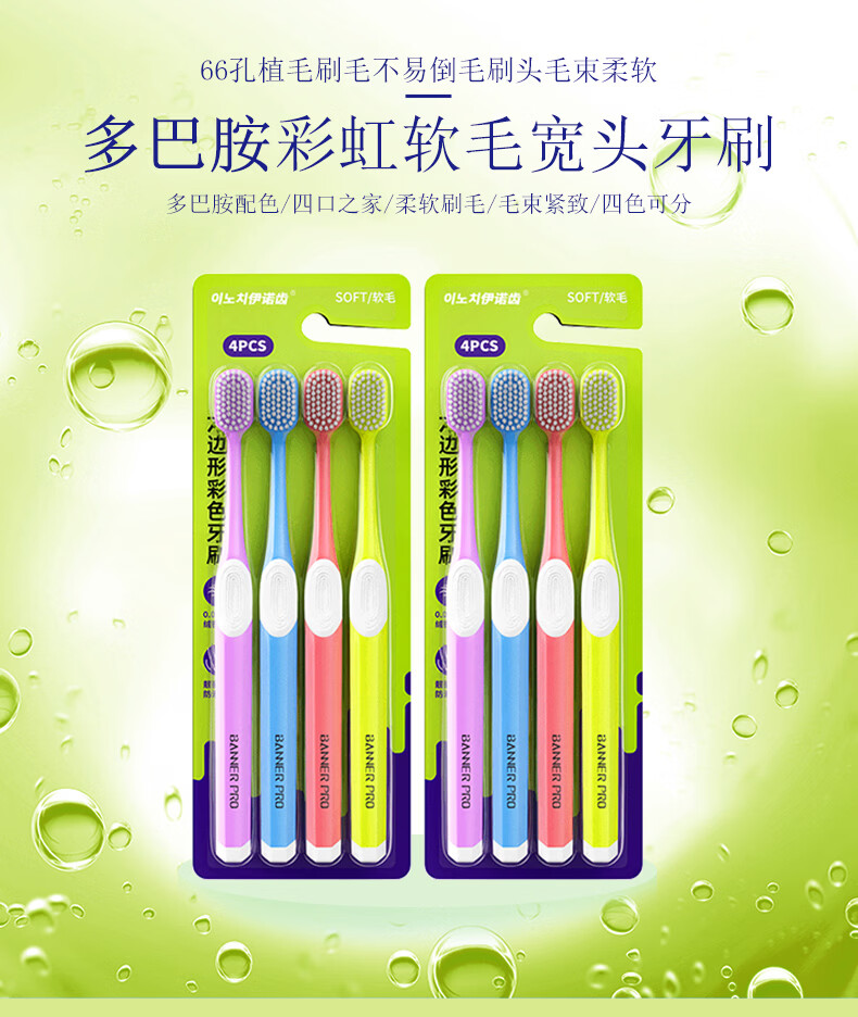 伊诺齿成人软毛牙刷宽头牙刷家庭装大人牙刷男女士通用情侣款背面刮舌苔 升级款/多巴胺彩虹牙刷+背面刮舌苔 8支