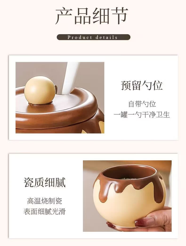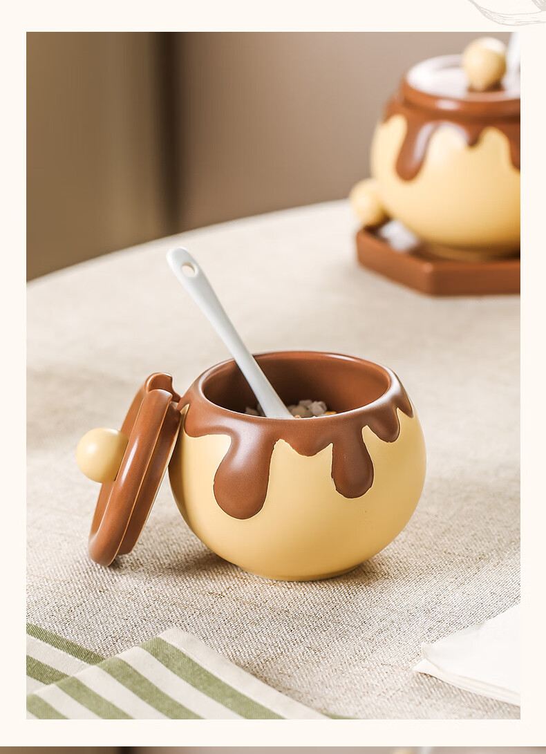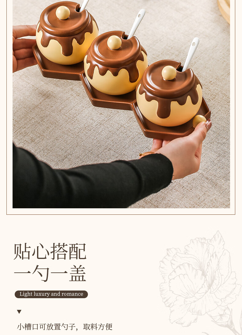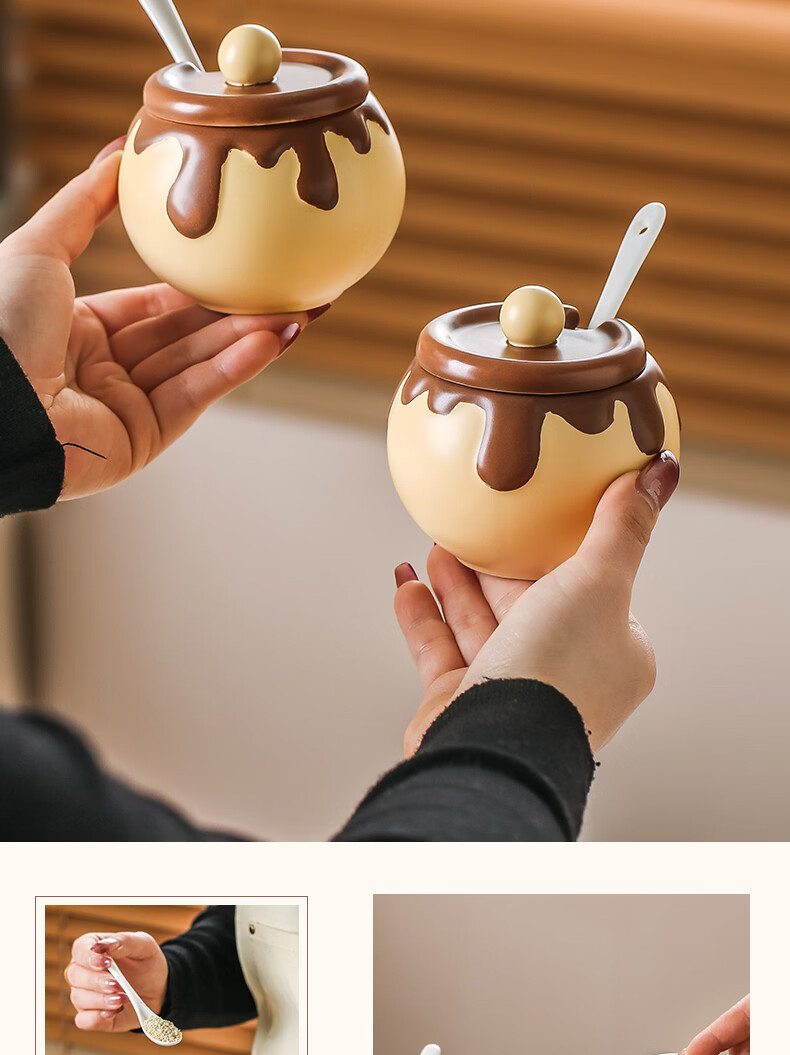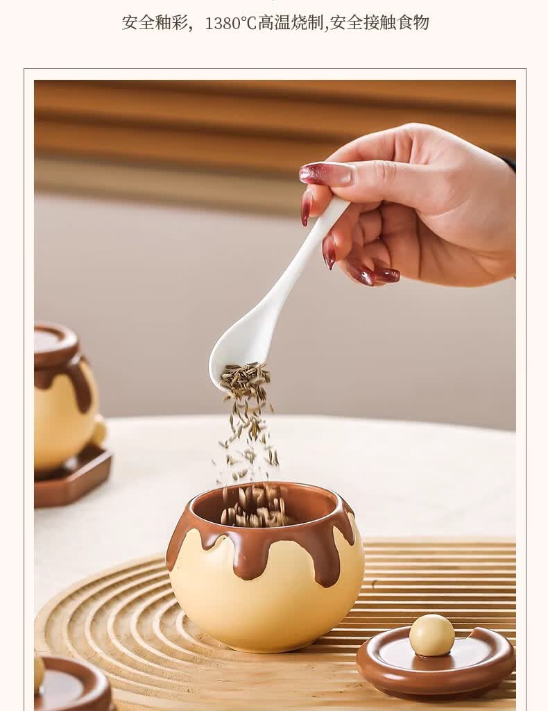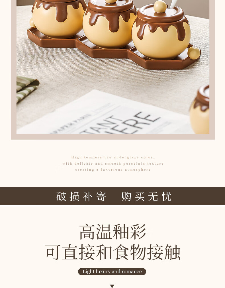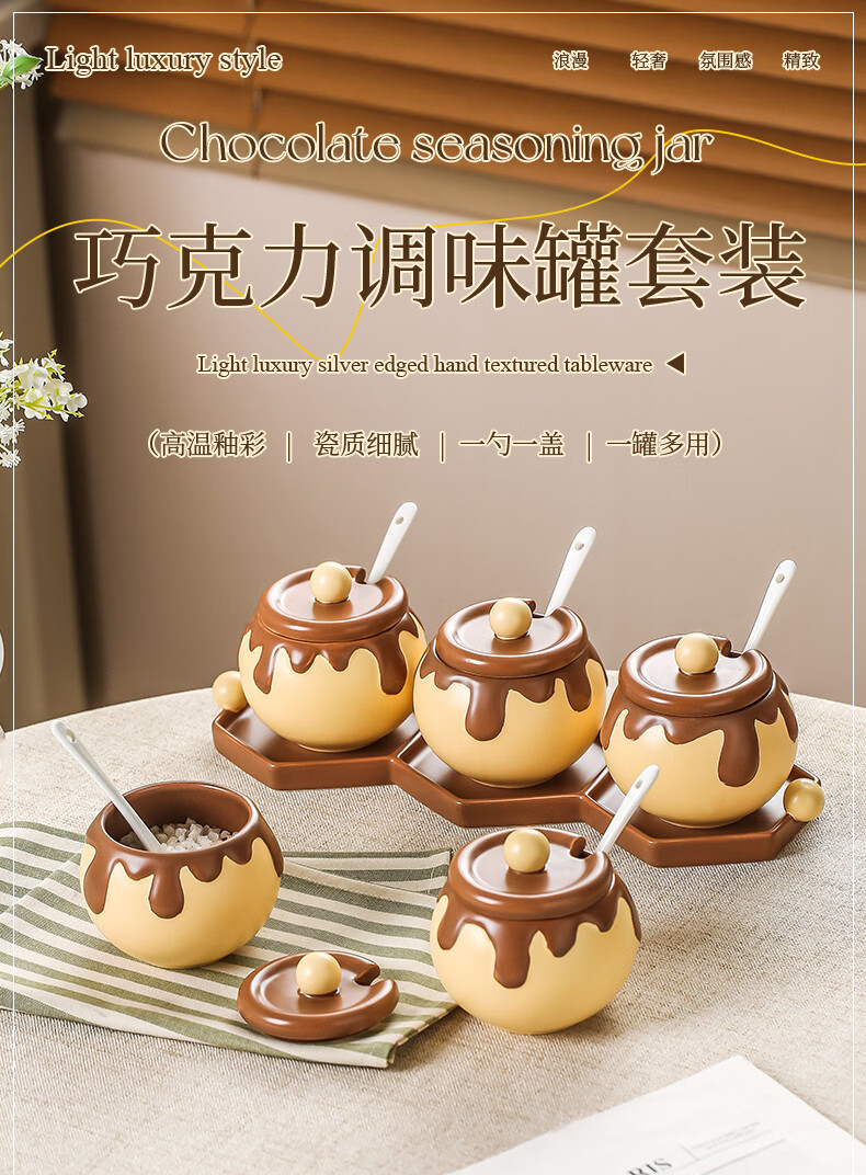 溥畔巧克力调料罐盐罐厨房陶瓷高颜值味精糖辣椒调料瓶调味品套装 巧克力调味罐套装+蜂蜜猪油罐大号