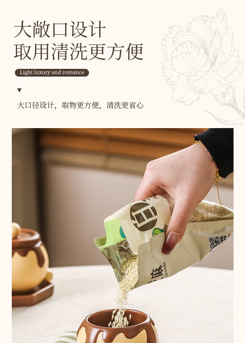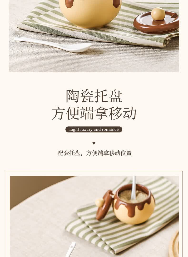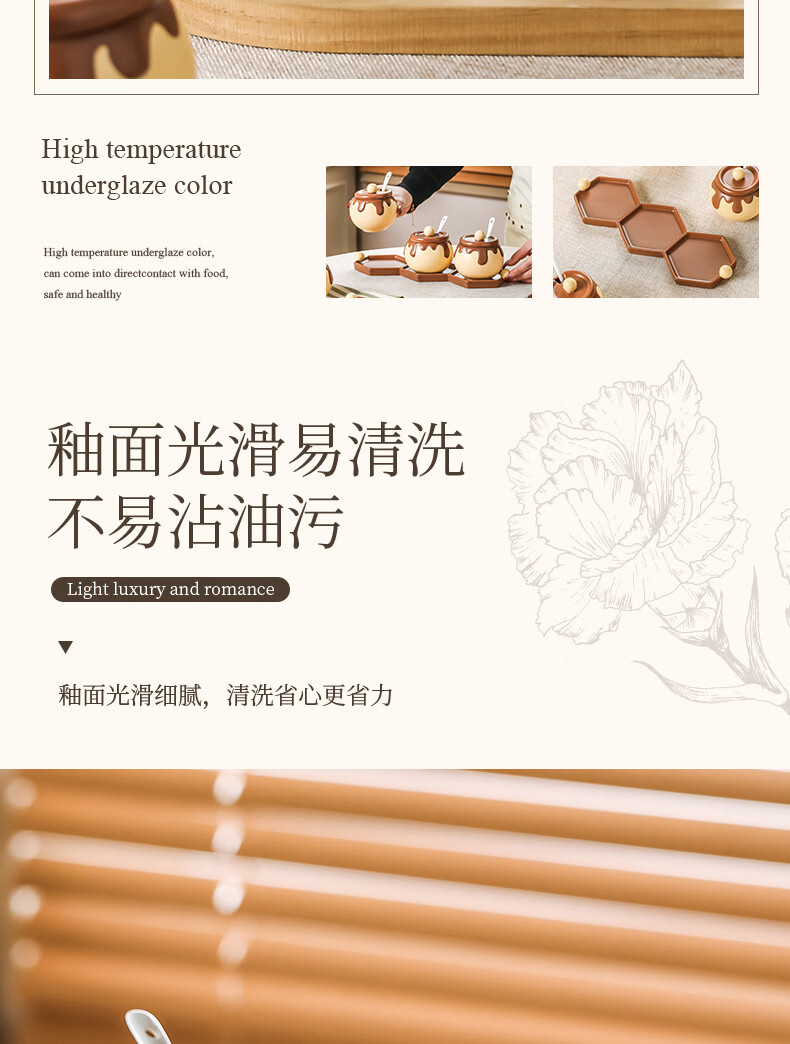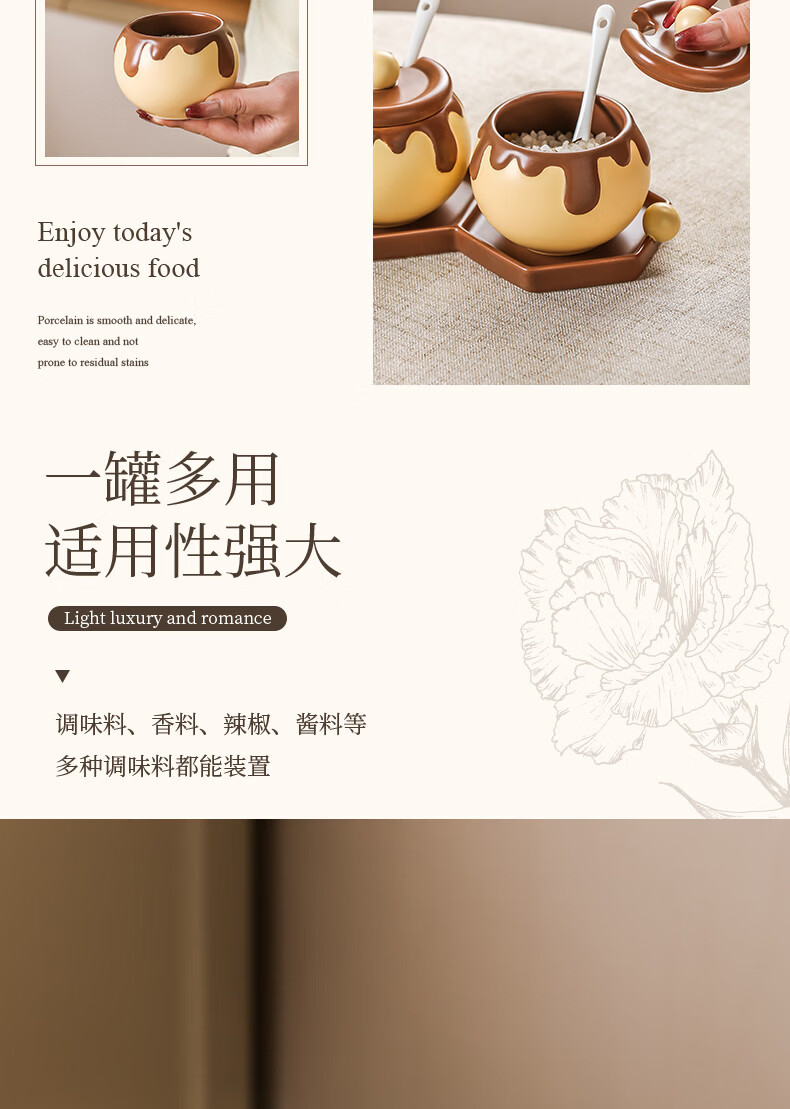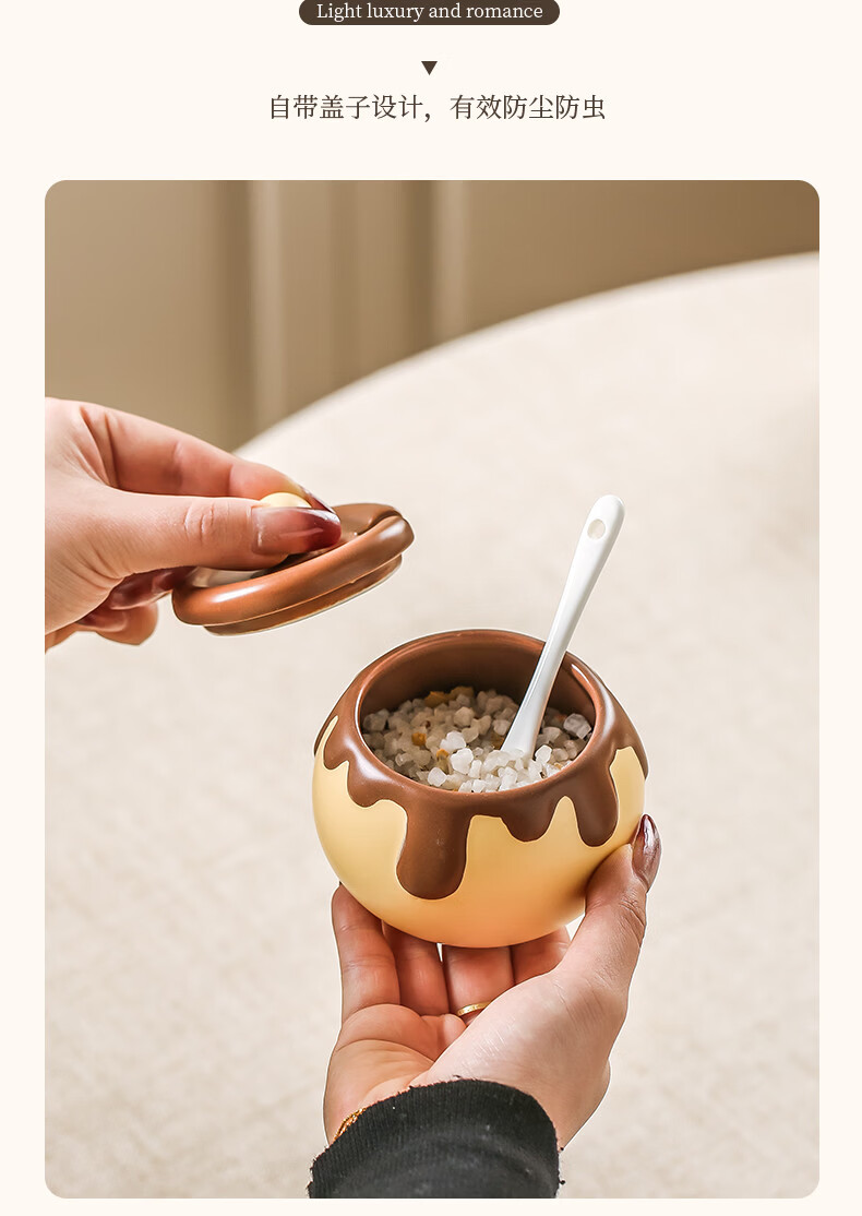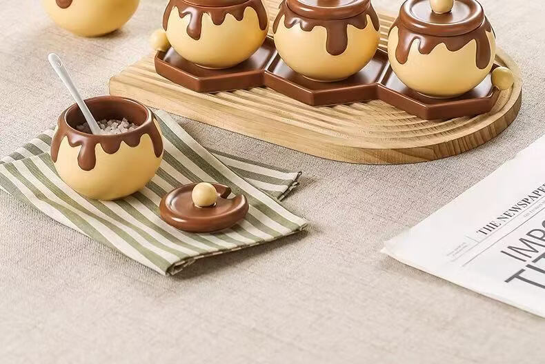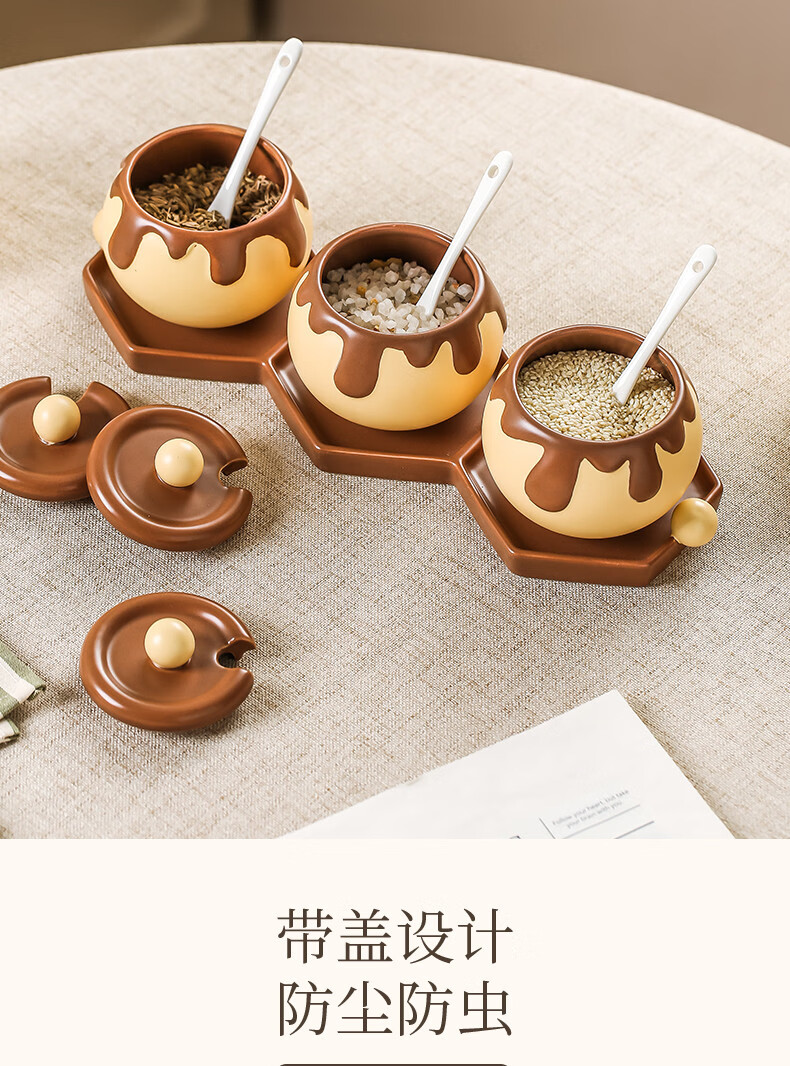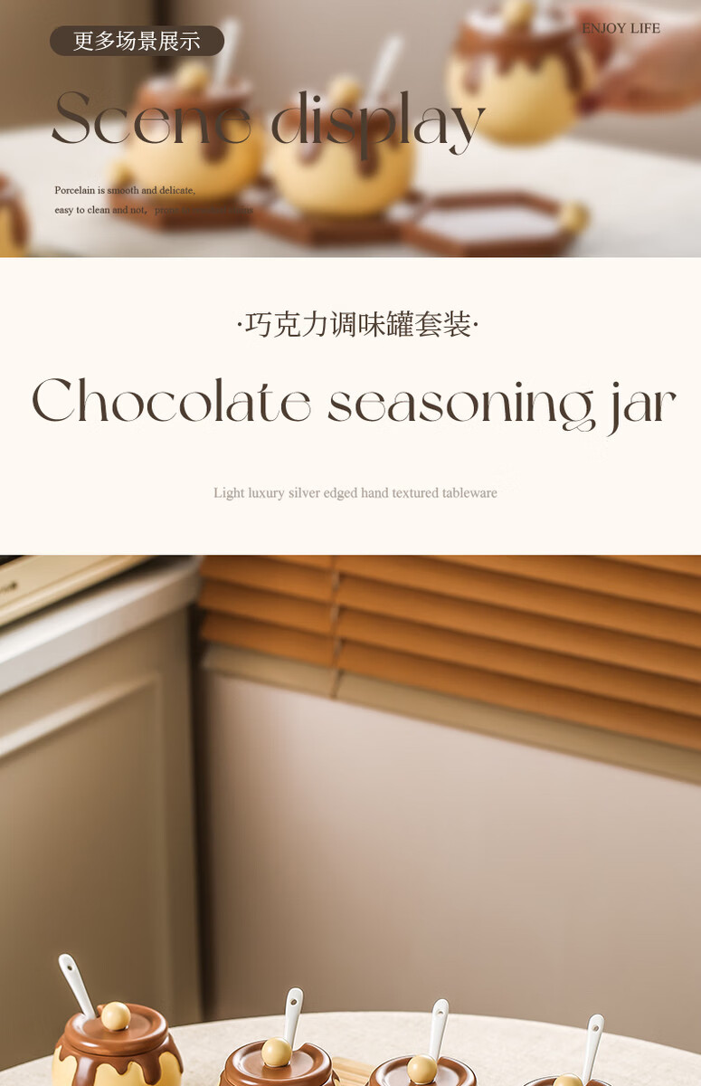 溥畔巧克力调料罐盐罐厨房陶瓷高颜值味精糖辣椒调料瓶调味品套装 巧克力调味罐套装+蜂蜜猪油罐大号