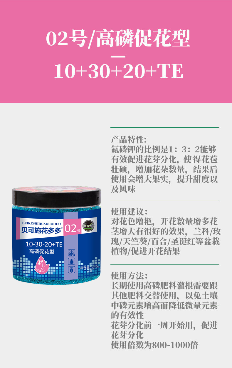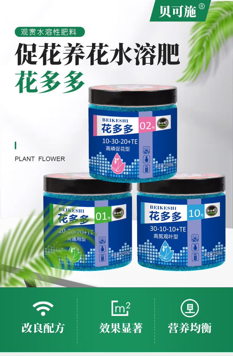 贝可施花多多1号2号10号肥料家用通用型 花多多2号高磷促花型