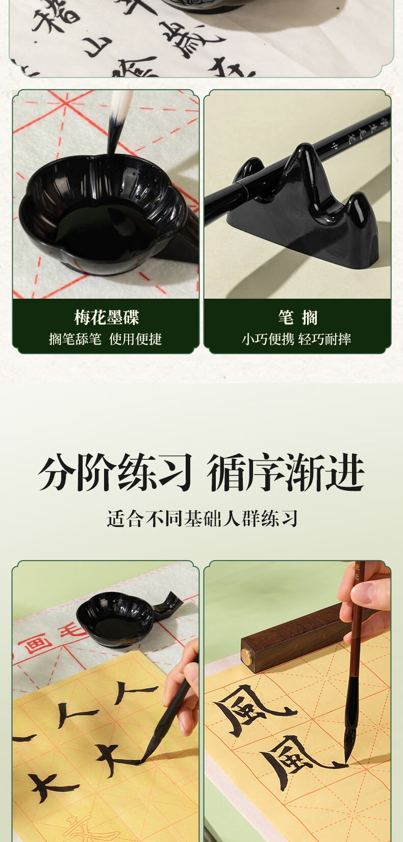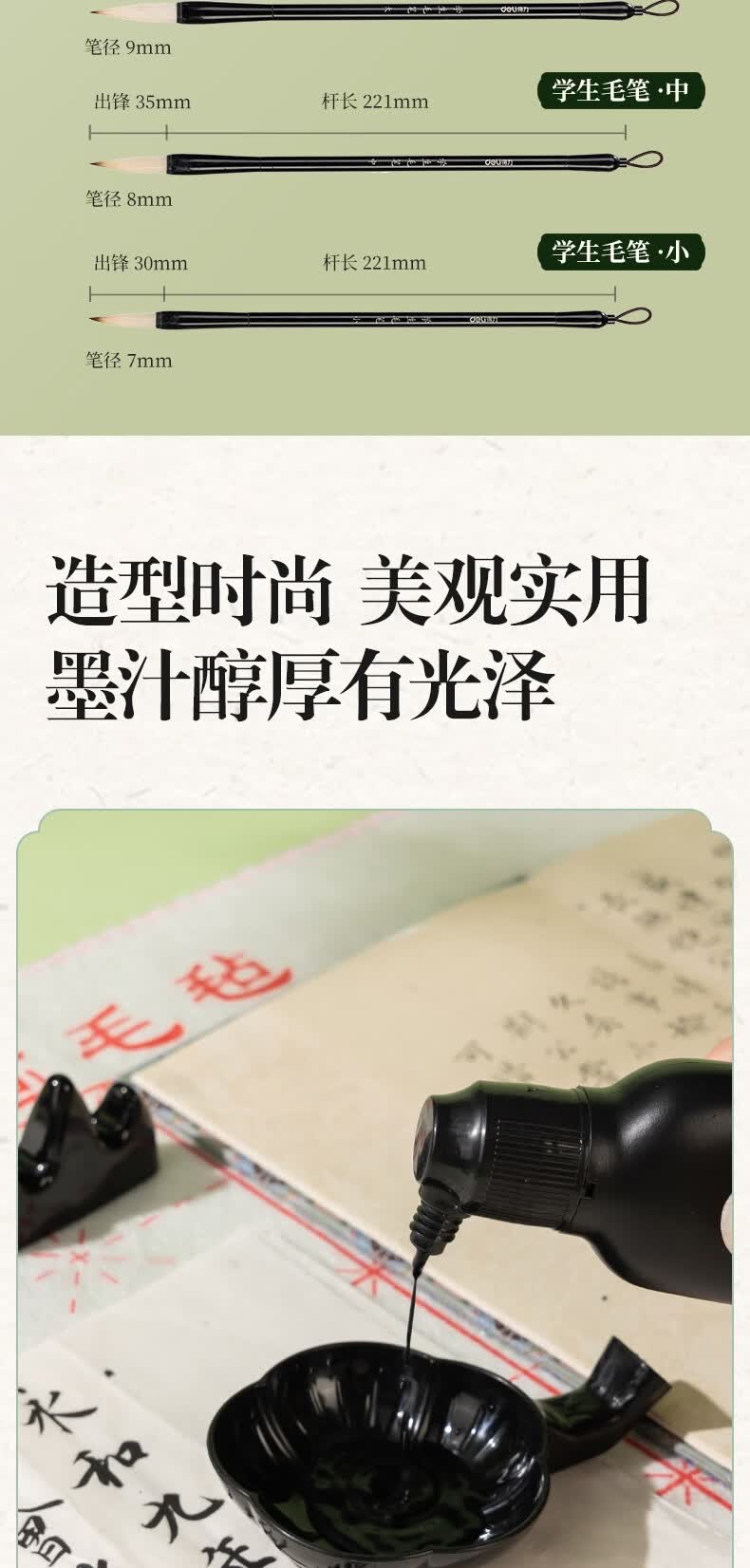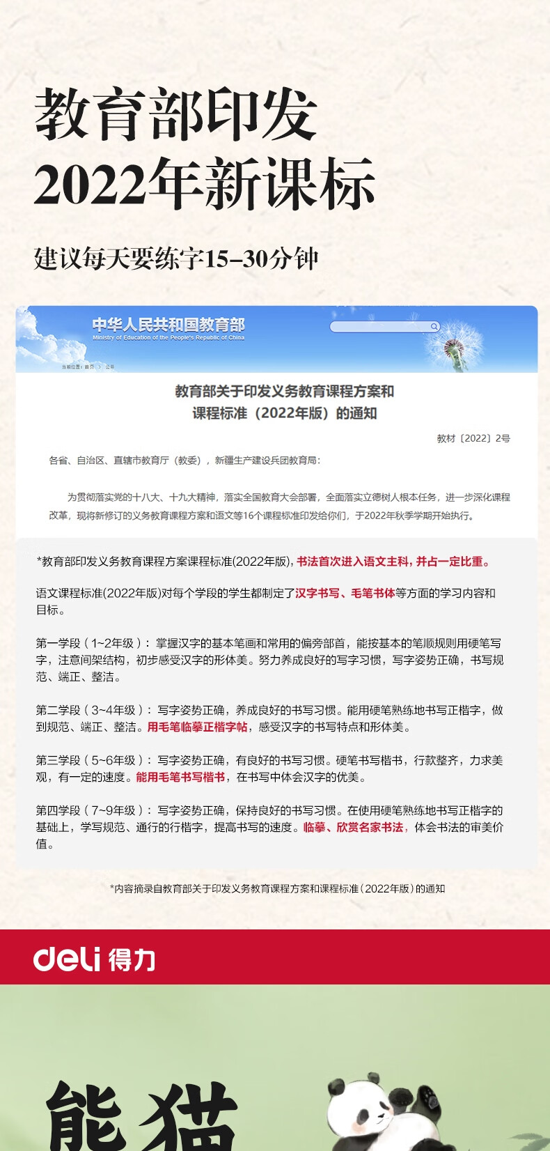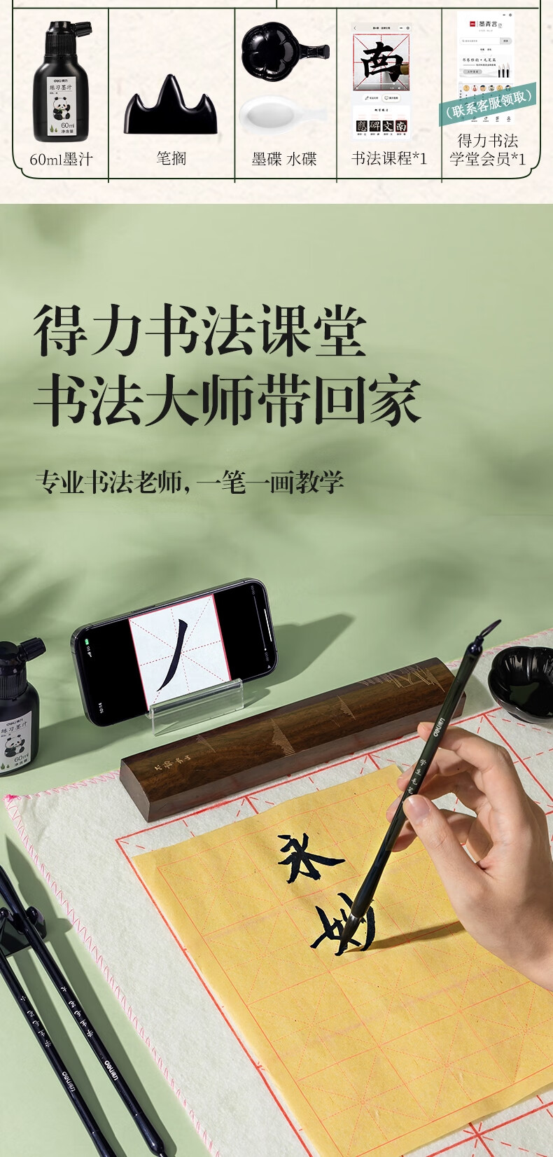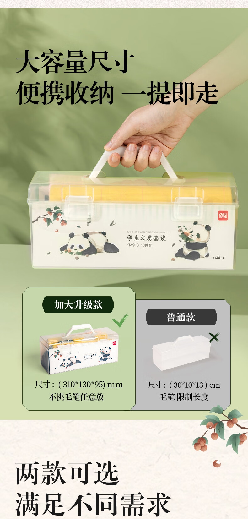 得力(deli)熊猫学生文房书法套装文房四宝毛笔砚台宣纸开学礼物初学者入门临摹书法收纳箱16件套开学用品
