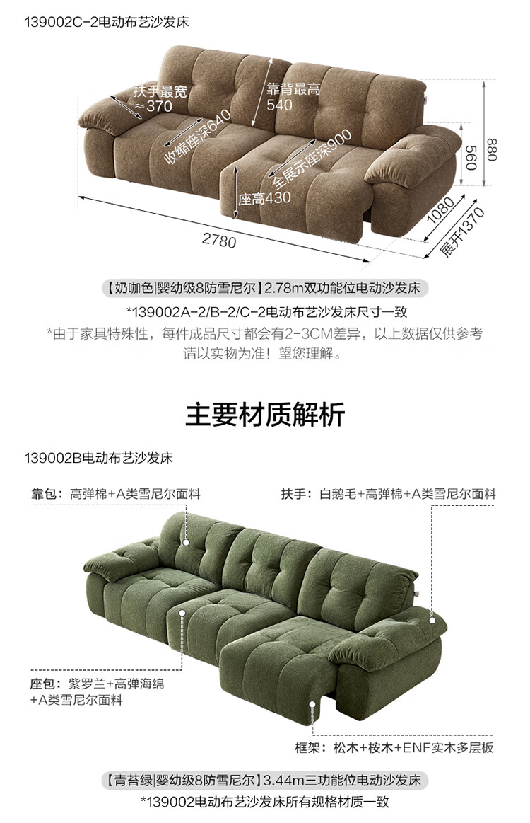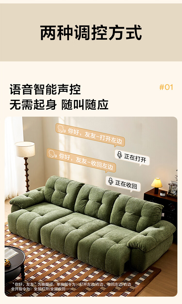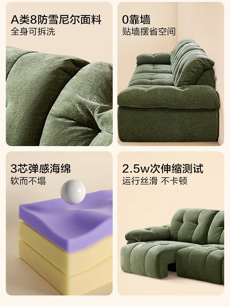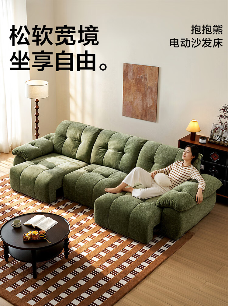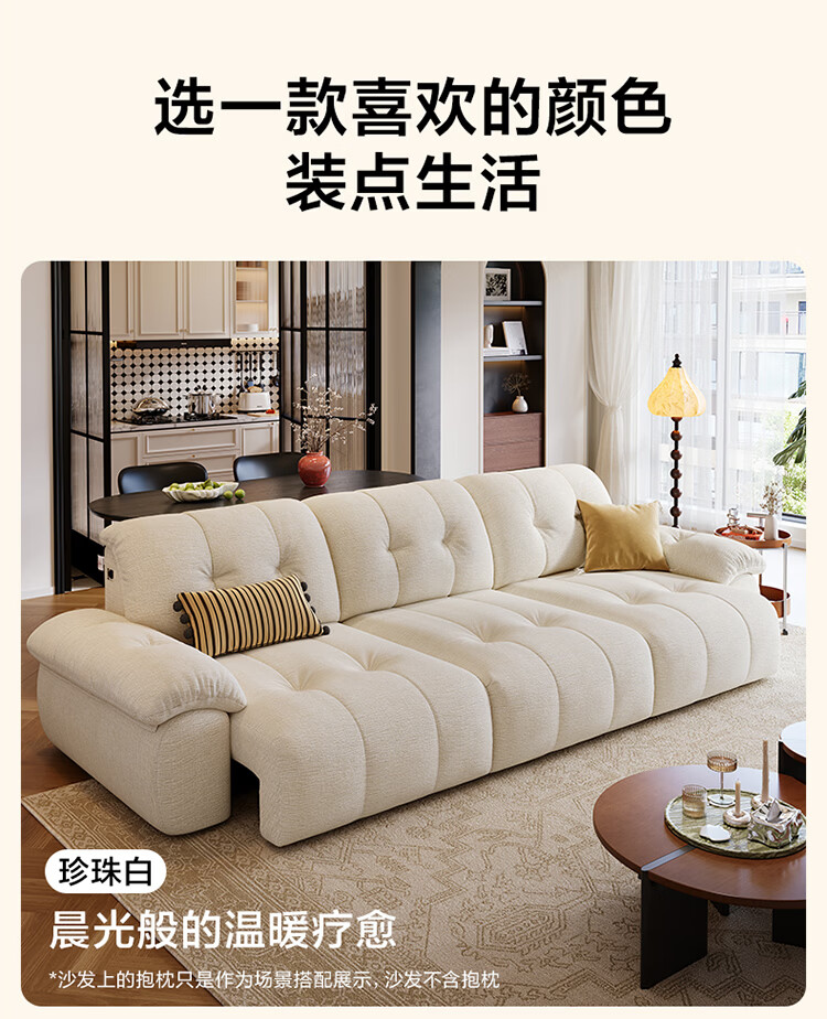 全友家居现代简约风雪尼尔抱抱熊布艺沙发客厅高级感2026新款功能沙发 【珍珠白 | 婴幼级8防雪尼尔】3.14米三功能位电动沙发床