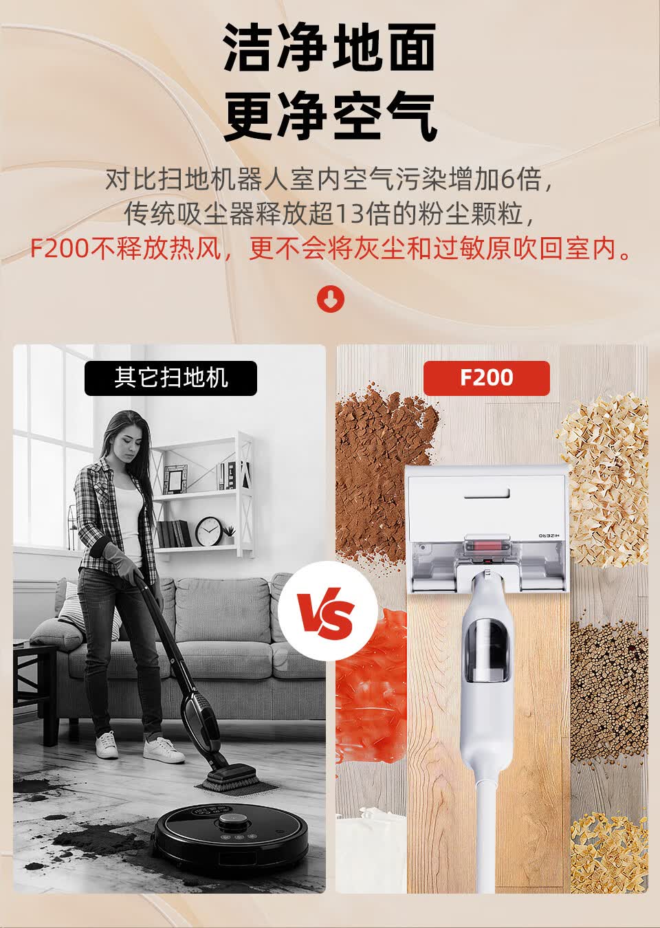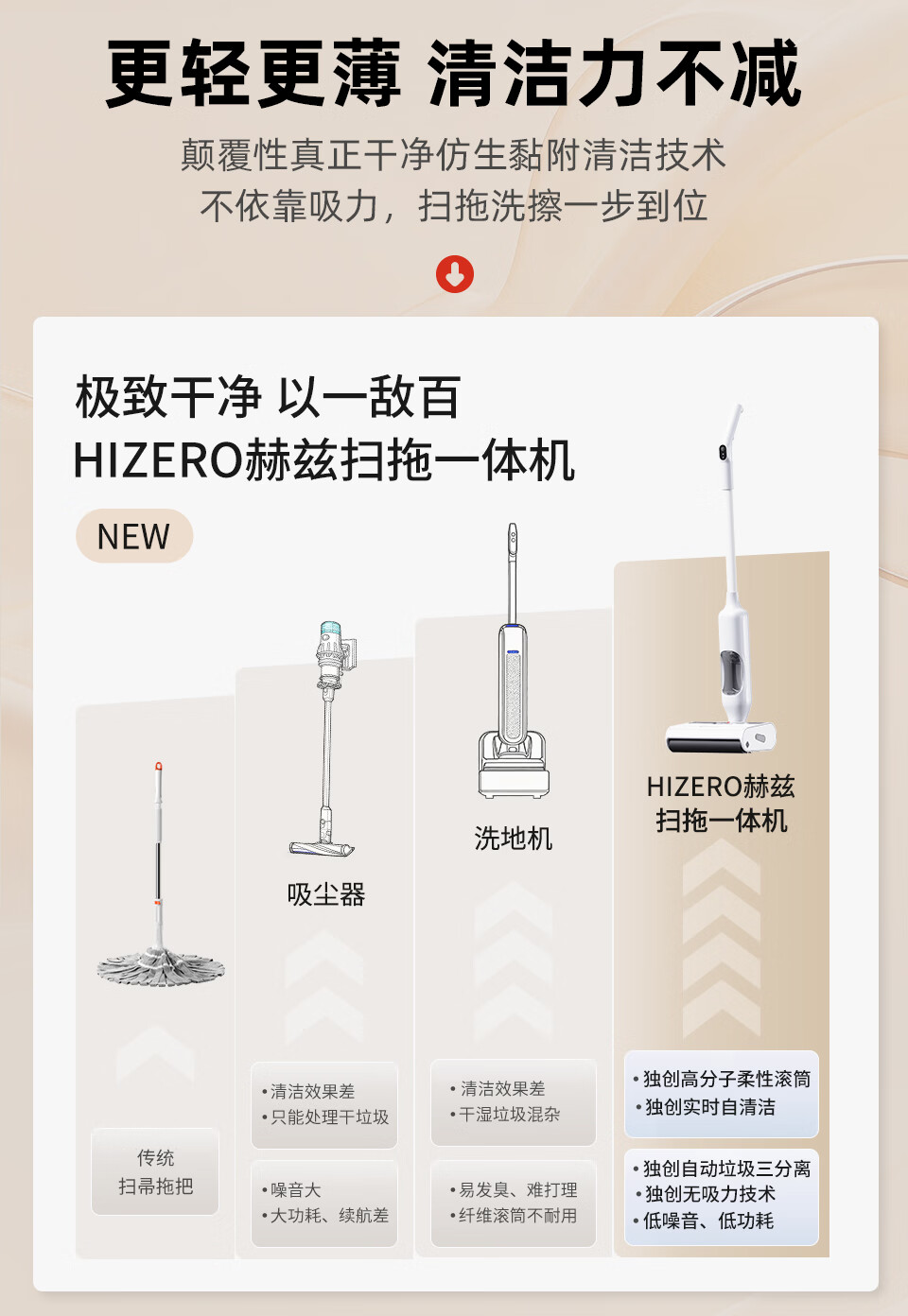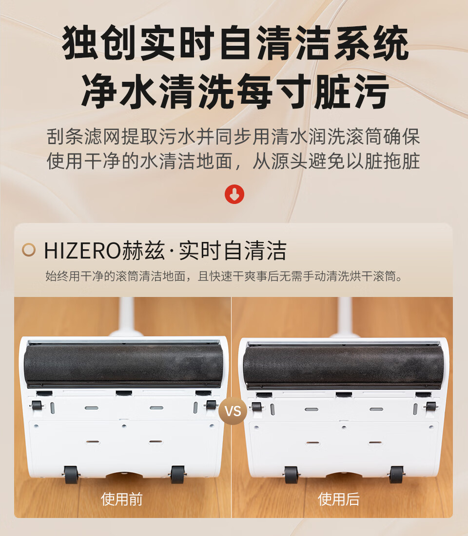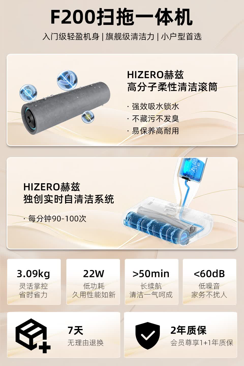 HIZERO赫兹F200洗地机无线手持洗静音0水渍速干垃圾三分离扫洗拖一体自动清洗拖地机