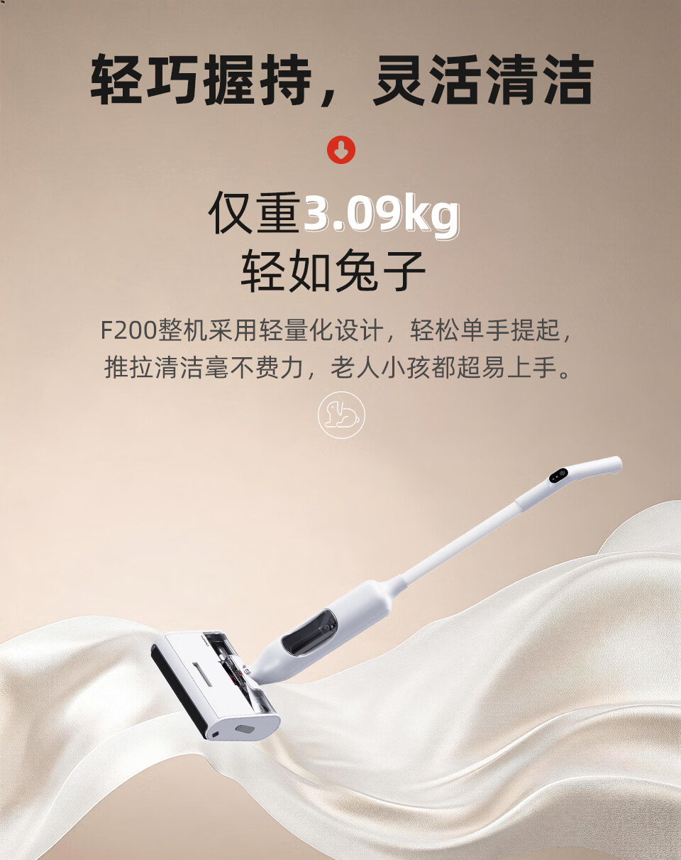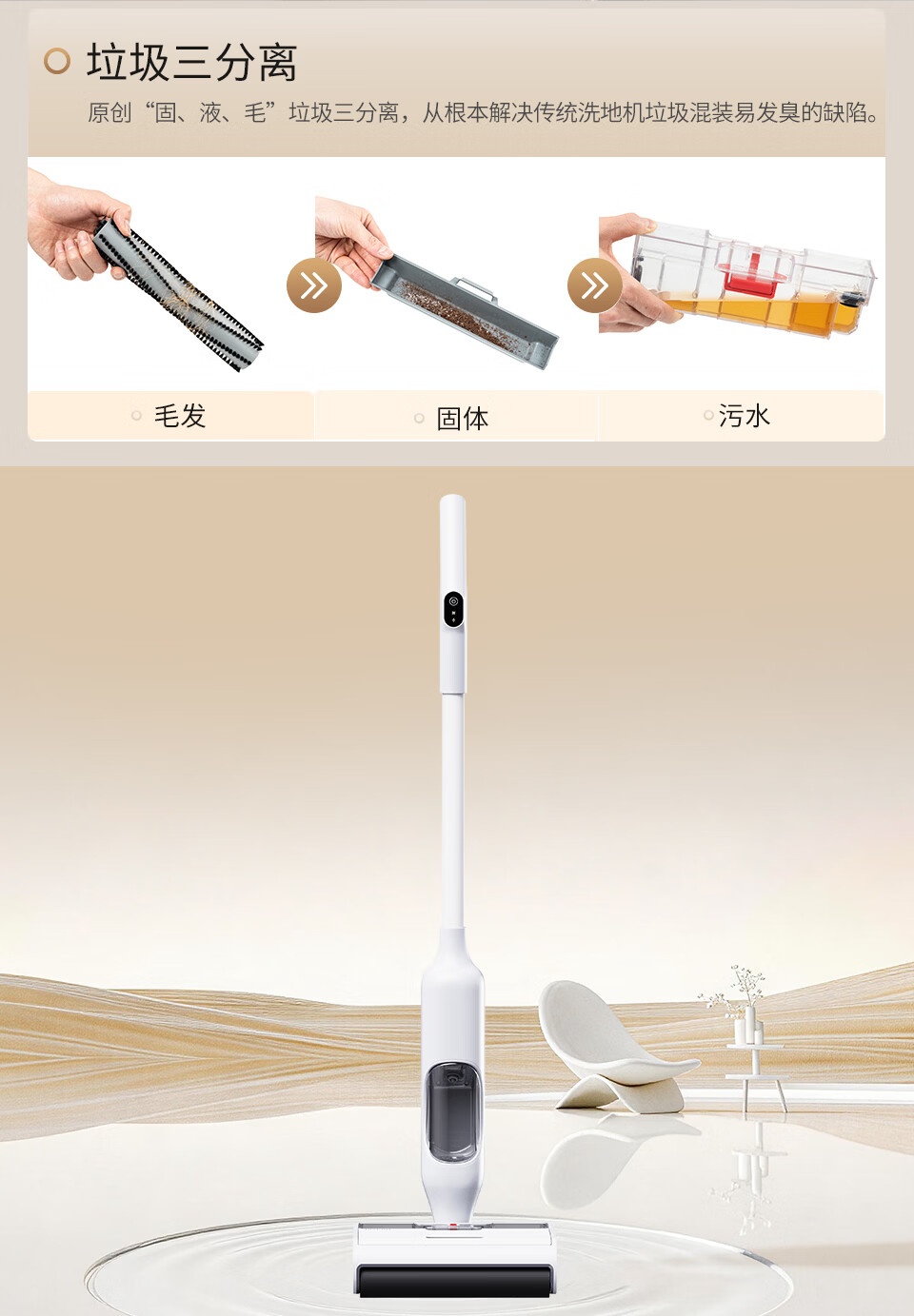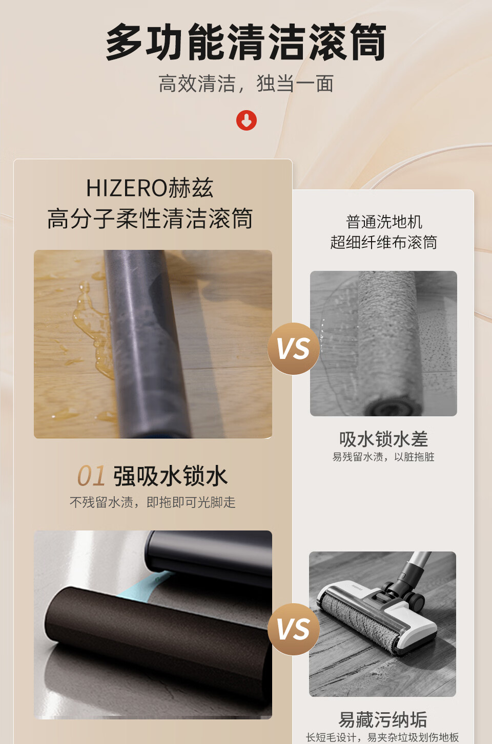 HIZERO赫兹F200洗地机无线手持洗静音0水渍速干垃圾三分离扫洗拖一体自动清洗拖地机