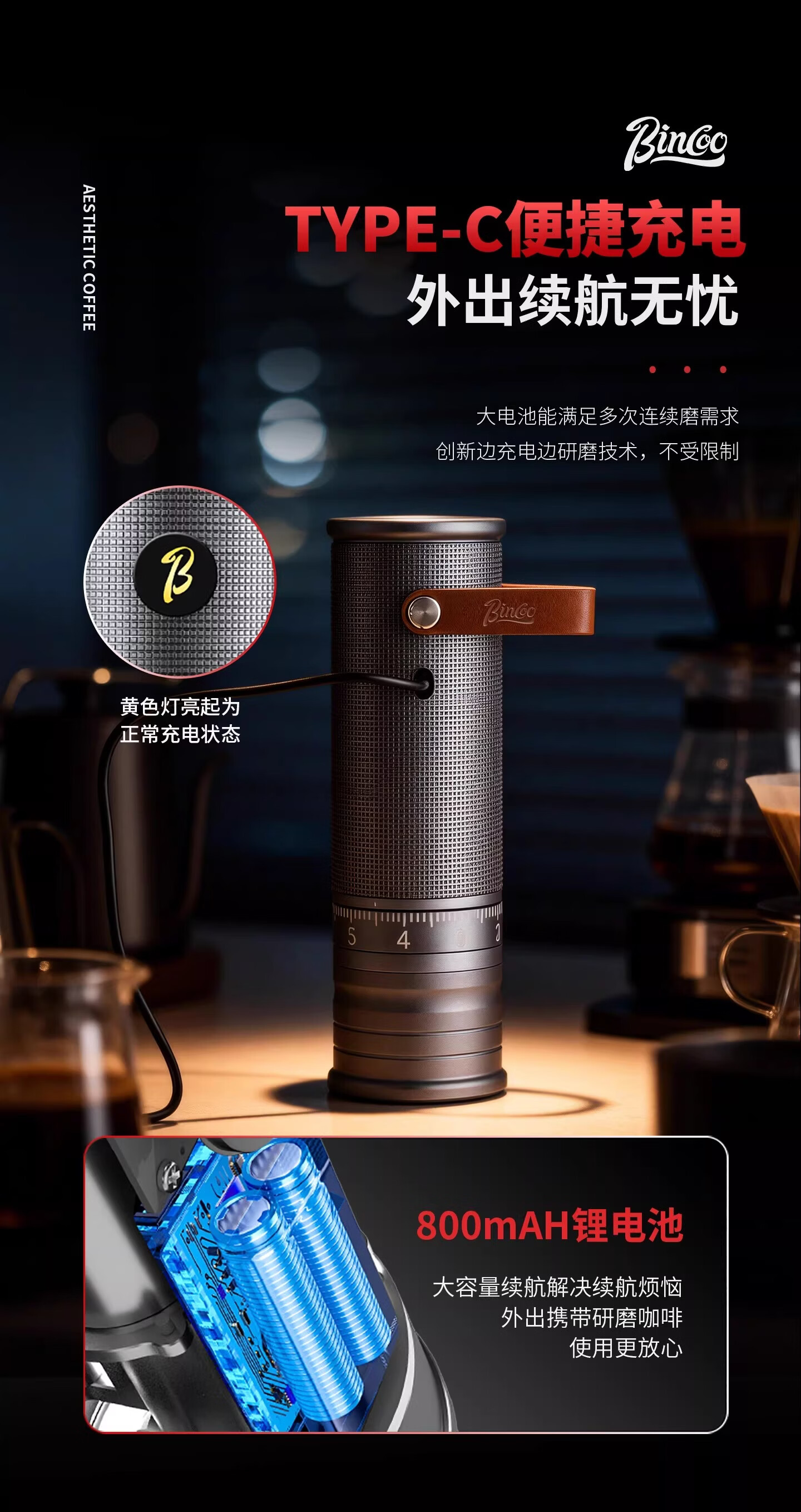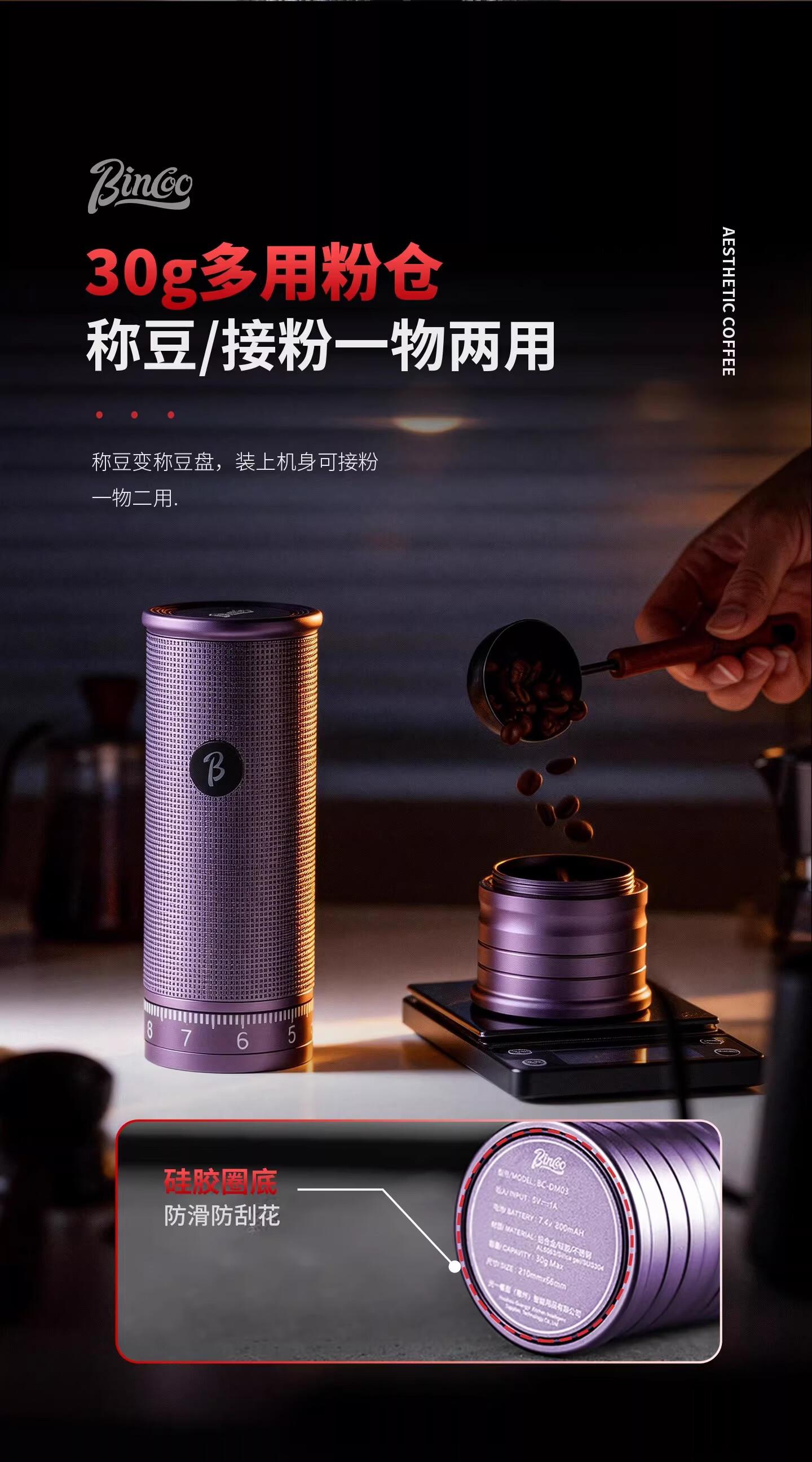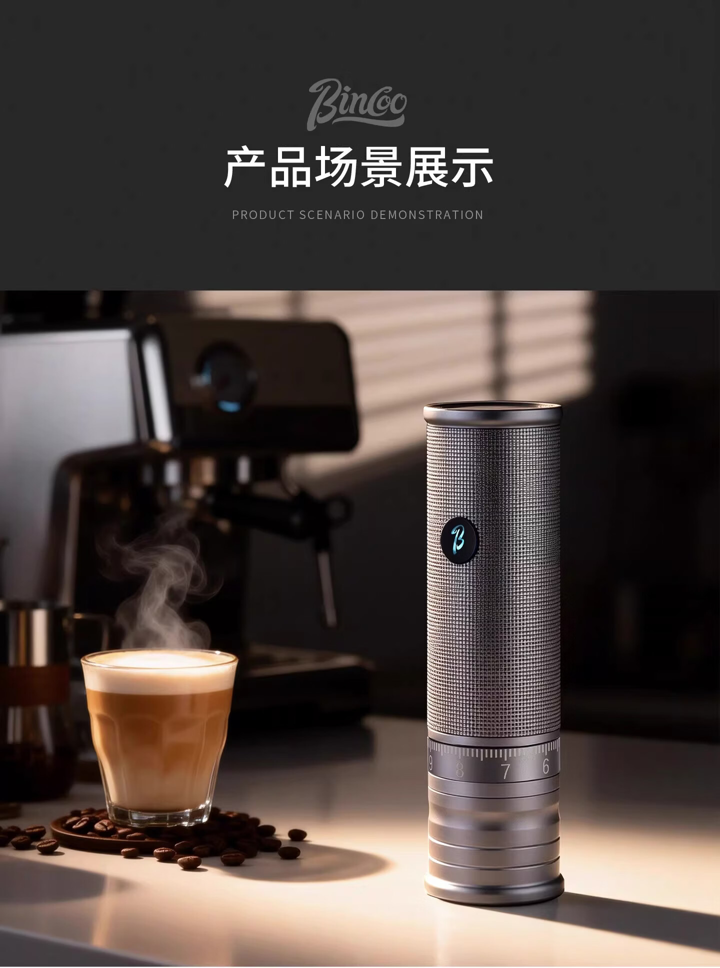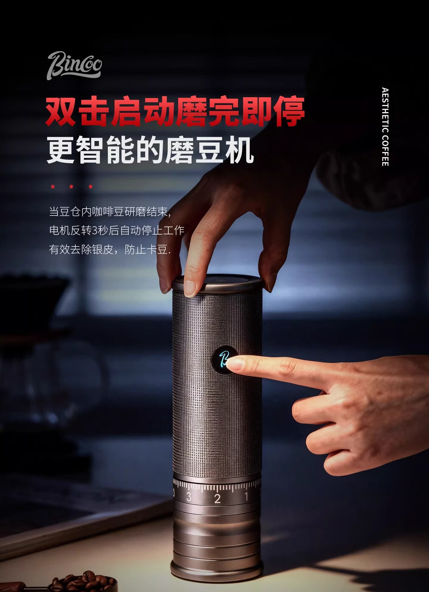 Bincoo电动磨豆机钢芯便携咖啡豆研磨器小型家用外调意式磨粉机 星光银