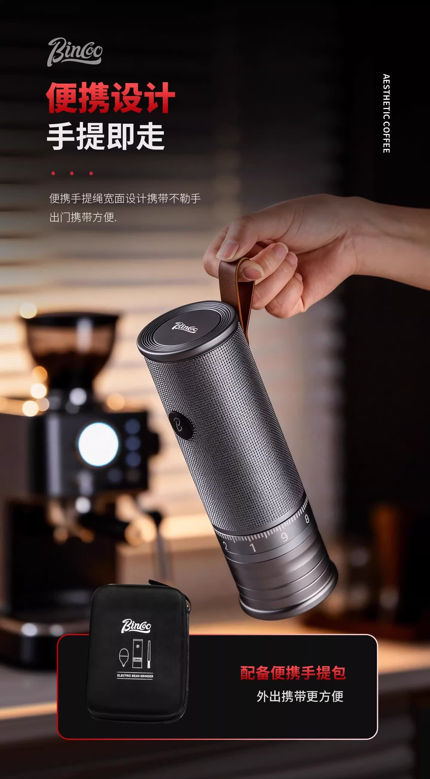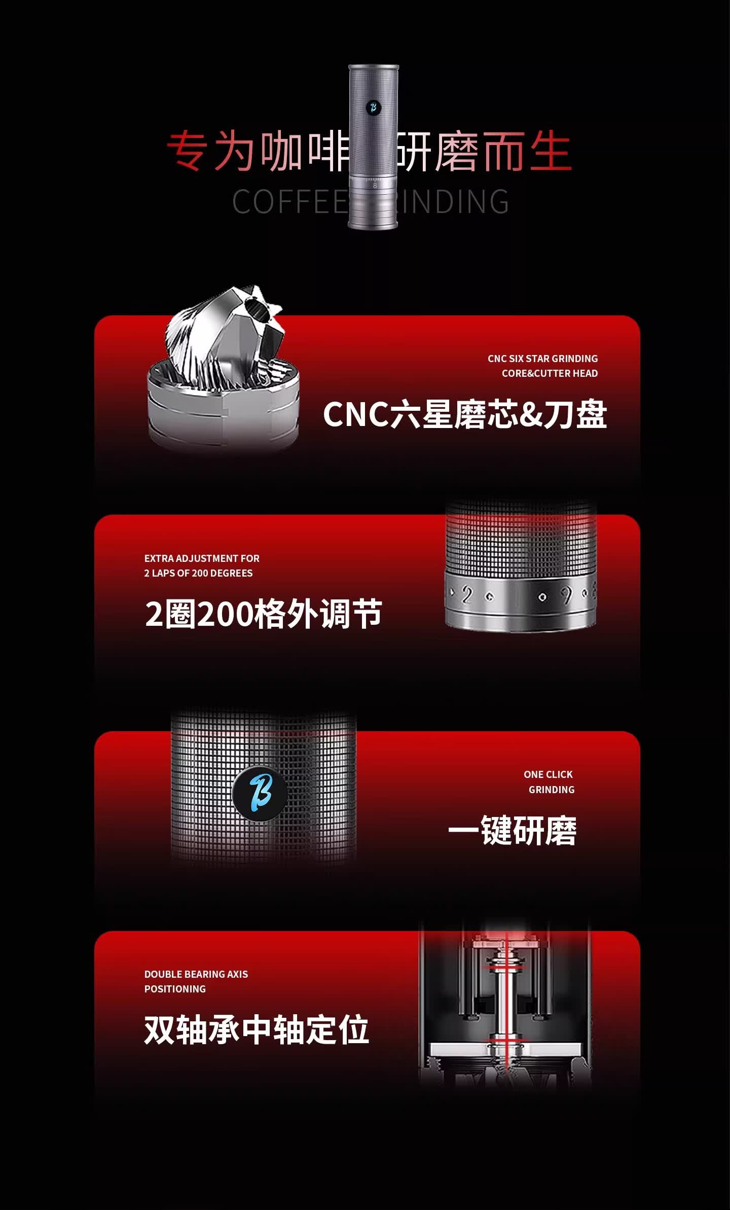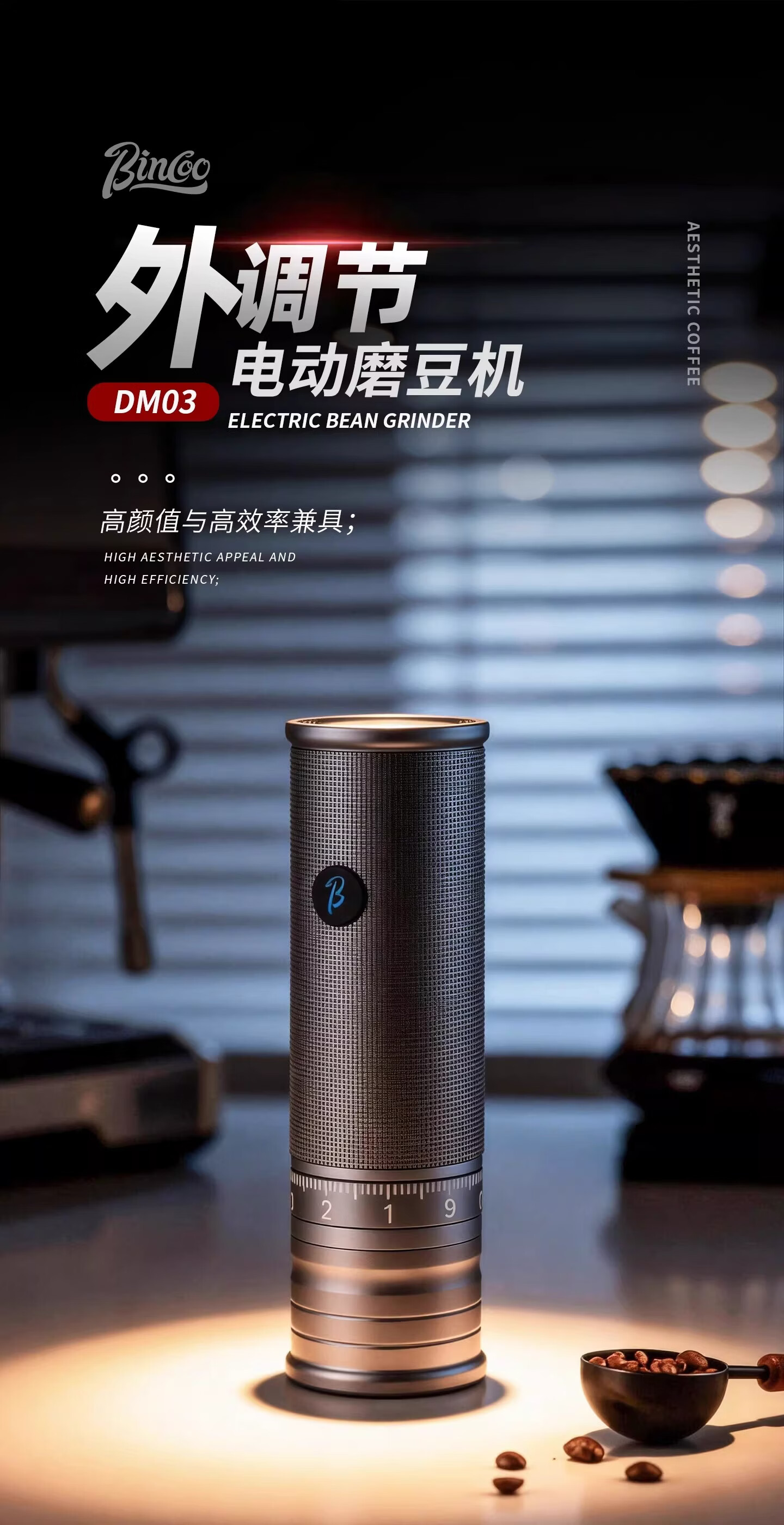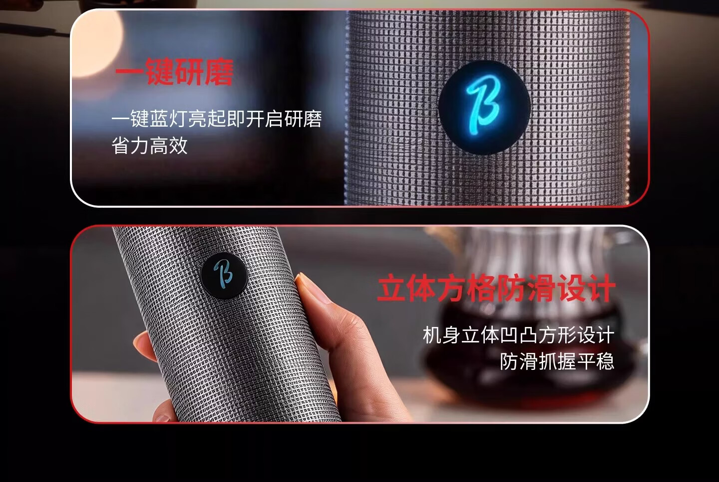 Bincoo电动磨豆机钢芯便携咖啡豆研磨器小型家用外调意式磨粉机 星光银