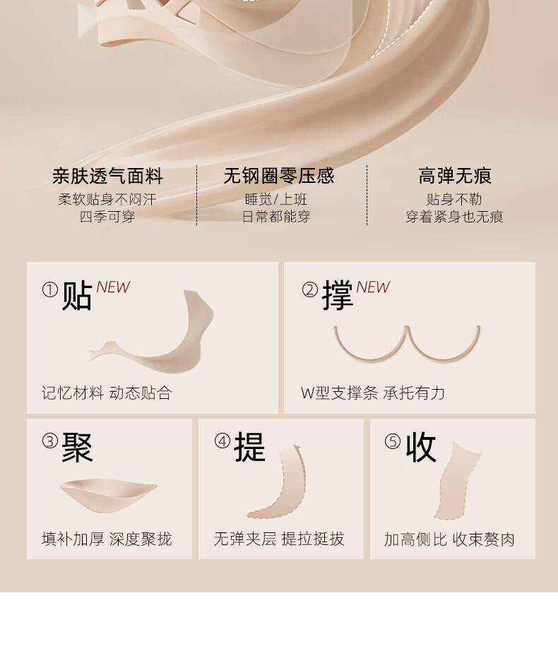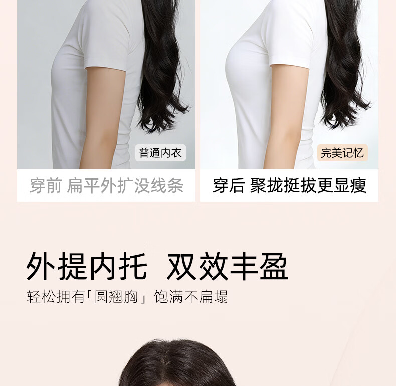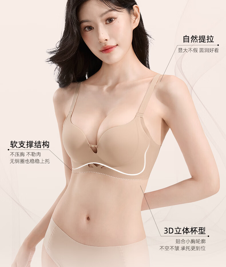 完美记忆徐艺洋同款内衣女小胸聚拢文胸防下垂收副乳无钢圈胸罩粉底液L