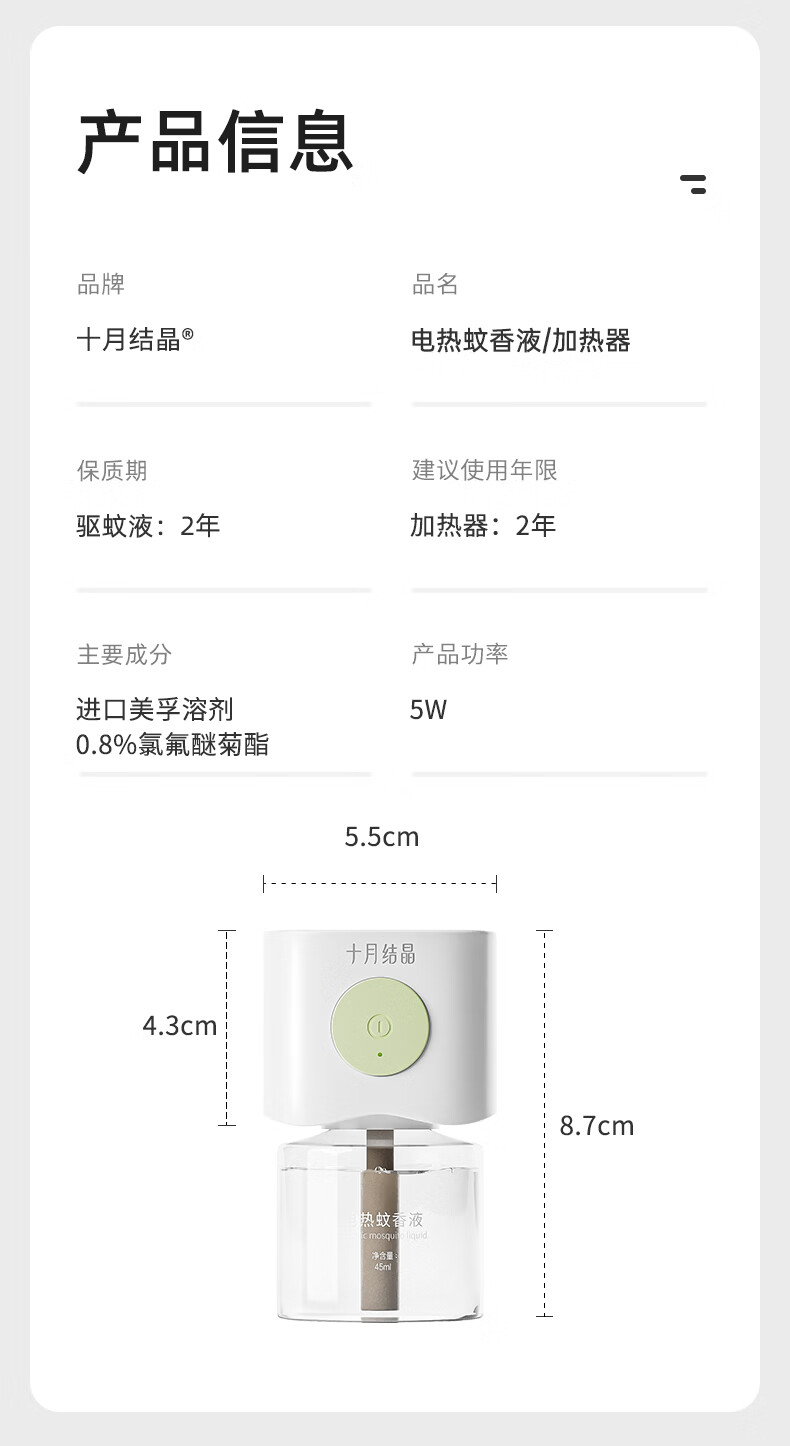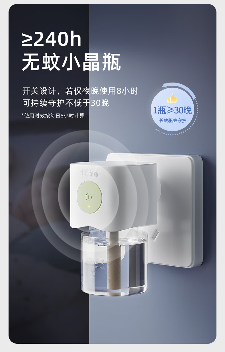 十月结晶蚊香液电蚊香液驱蚊液定时加热器儿童全家驱蚊防蚊蚊香无香型 【8件套】驱蚊液*6+驱蚊器*2