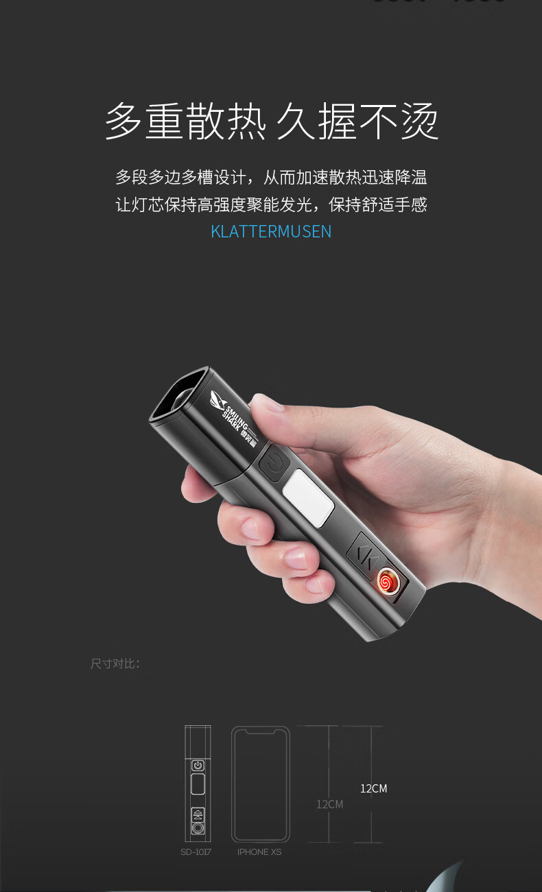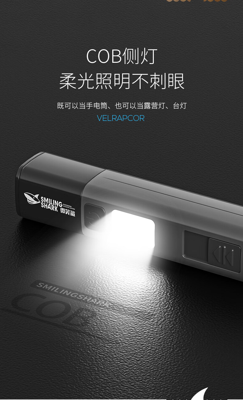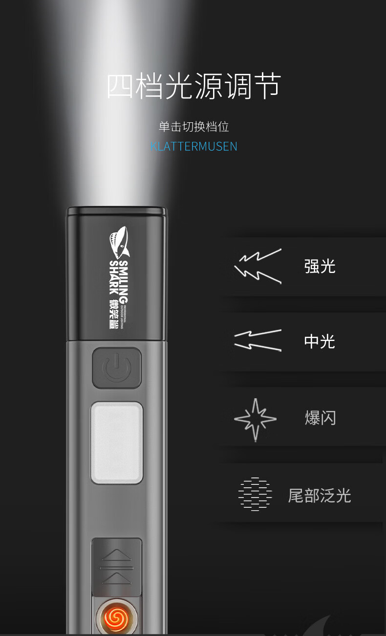 微笑鲨多功能小型强光手电筒户外超亮远射可充电长续航便携式防风点烟器 【加大容量】点烟+伸缩变焦+COB侧灯 多功能手电筒带无明火点烟器【白色】