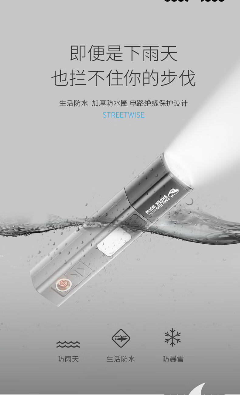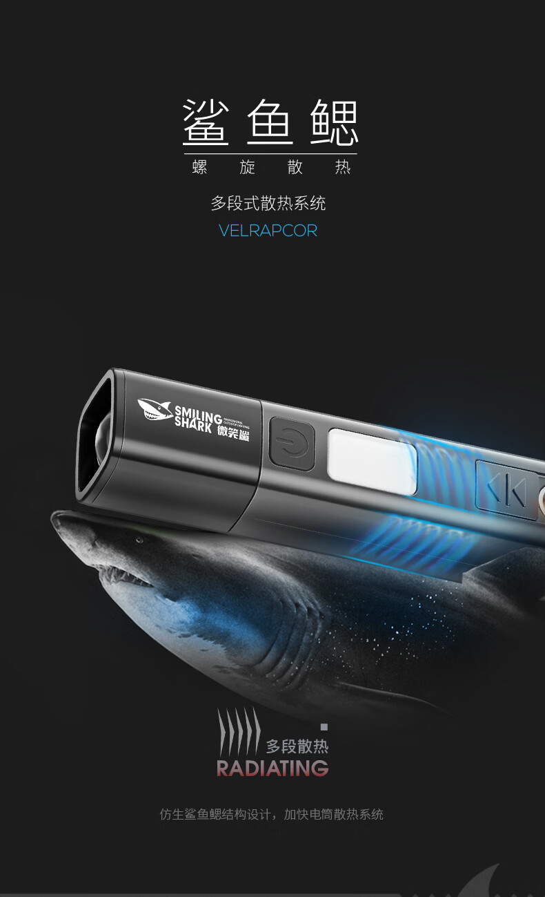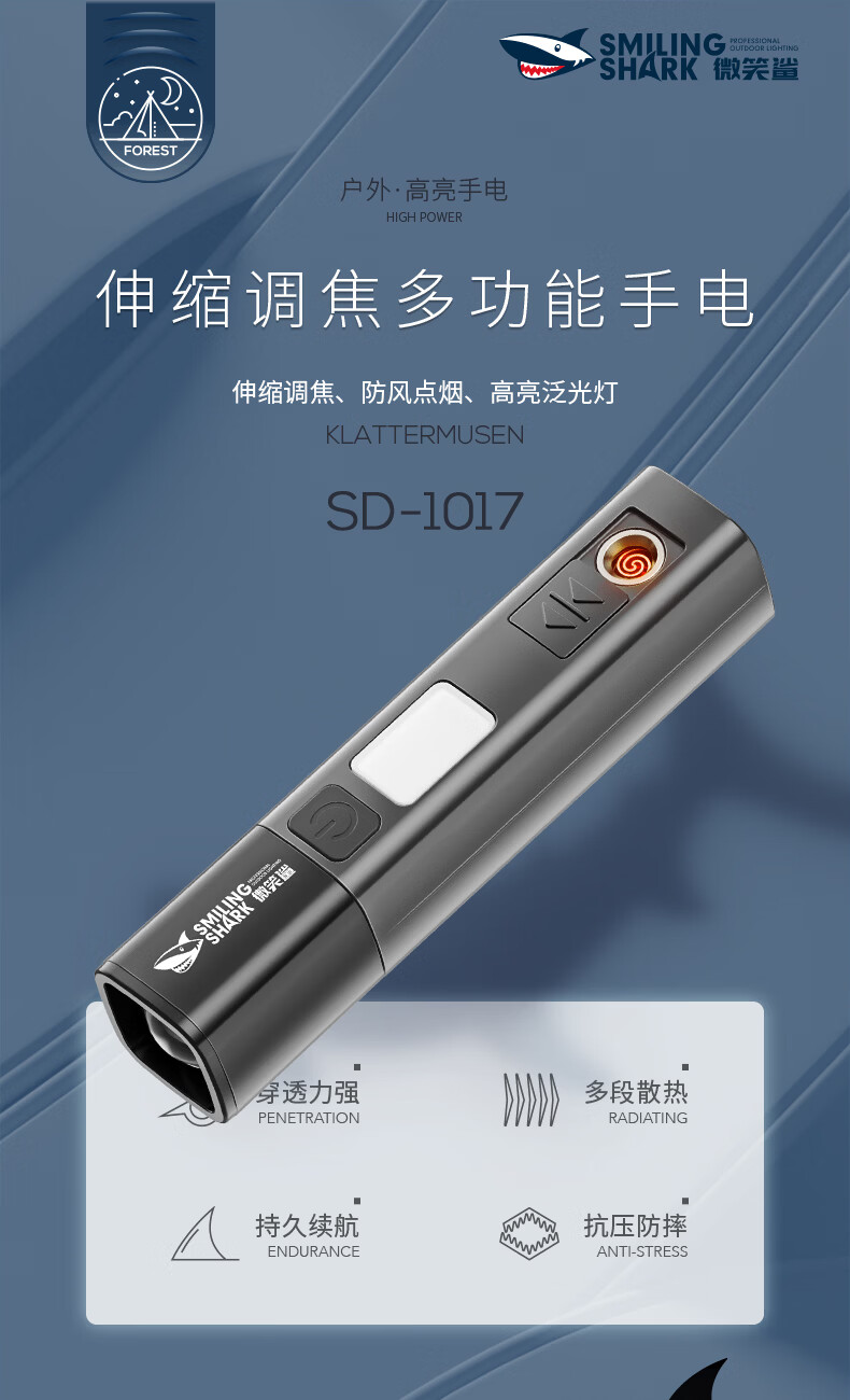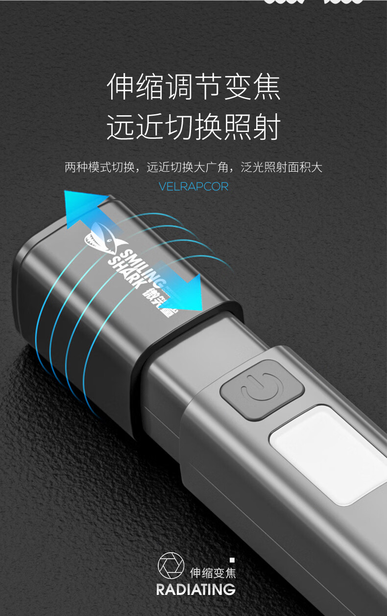 微笑鲨多功能小型强光手电筒户外超亮远射可充电长续航便携式防风点烟器 【加大容量】点烟+伸缩变焦+COB侧灯 多功能手电筒带无明火点烟器【白色】