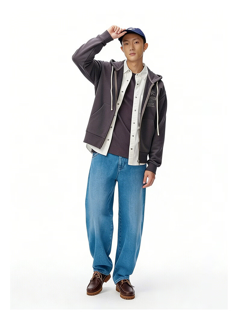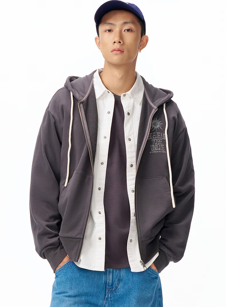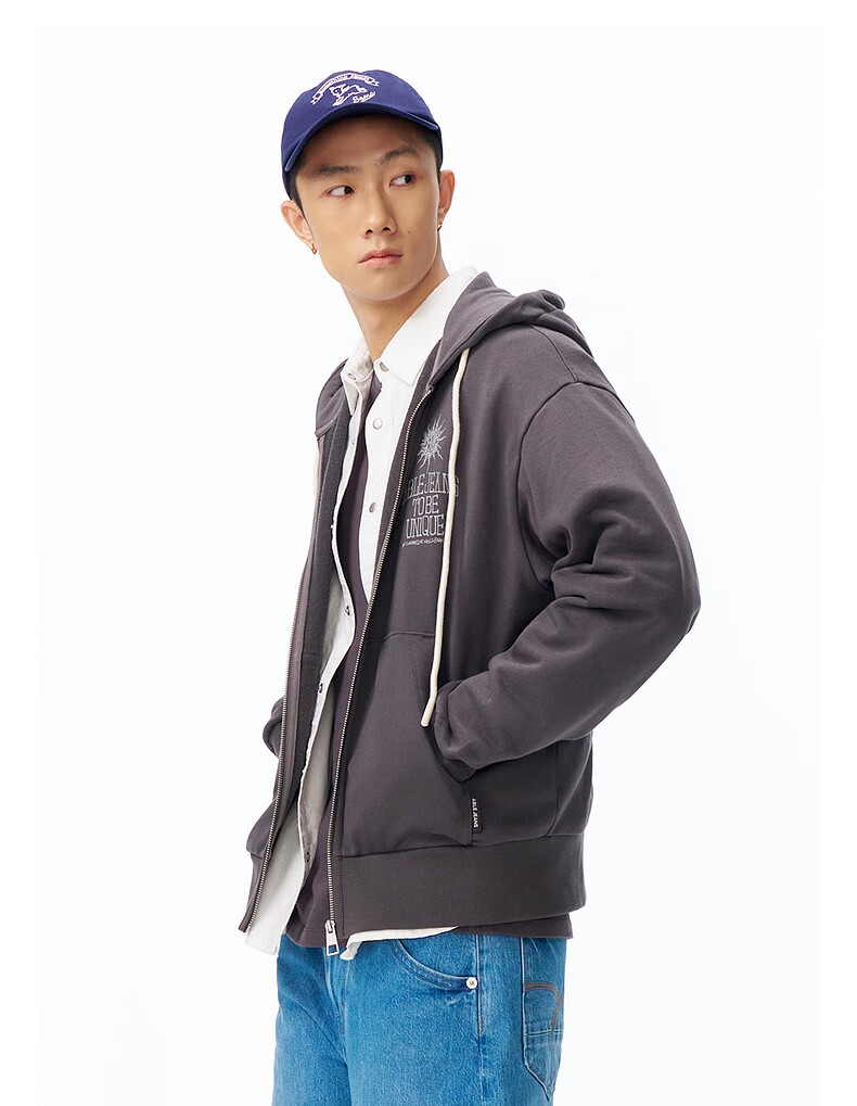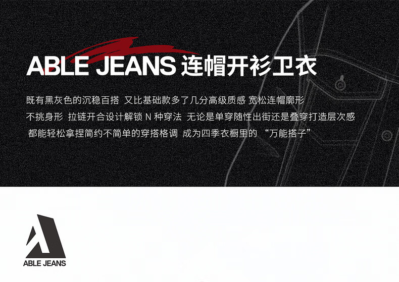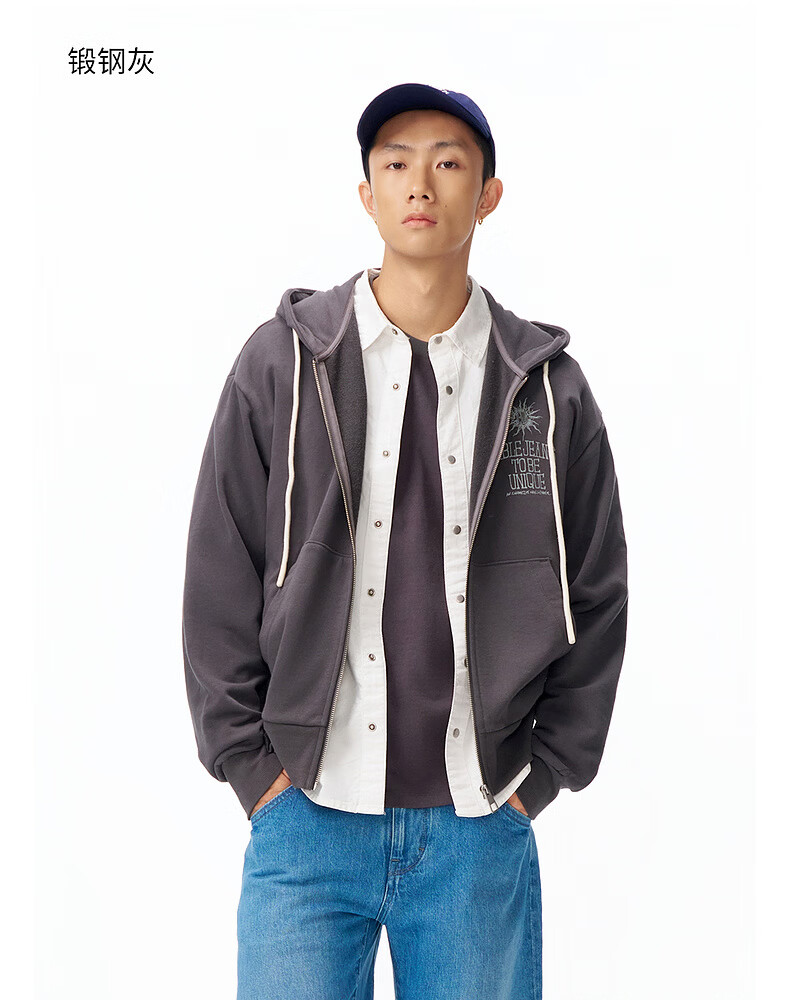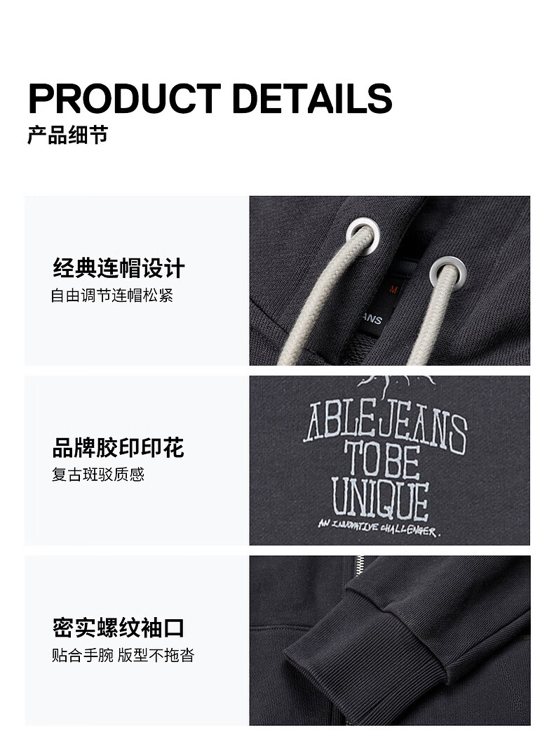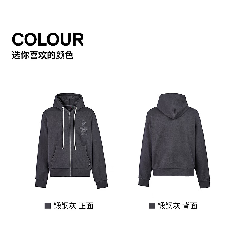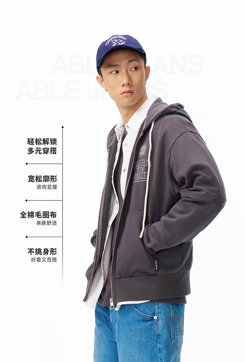 ABLE JEANS2026春男卫衣锻钢灰连帽卫衣开衫上衣长袖外套潮流简约休闲重磅 锻钢灰 XS