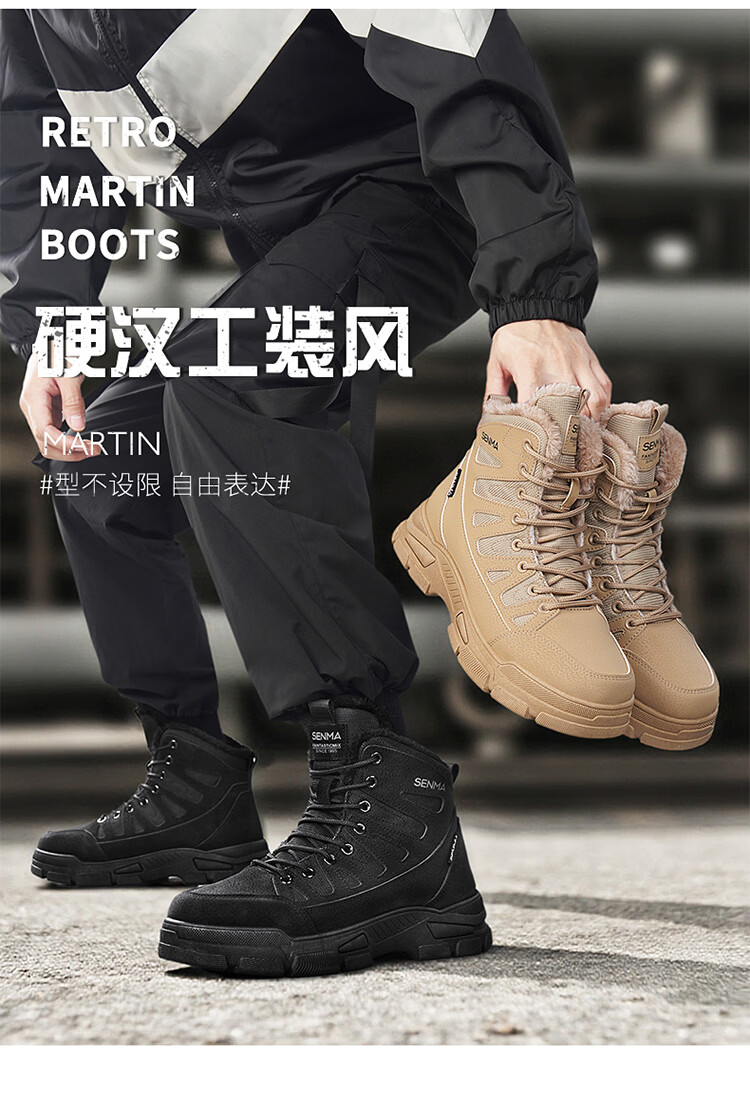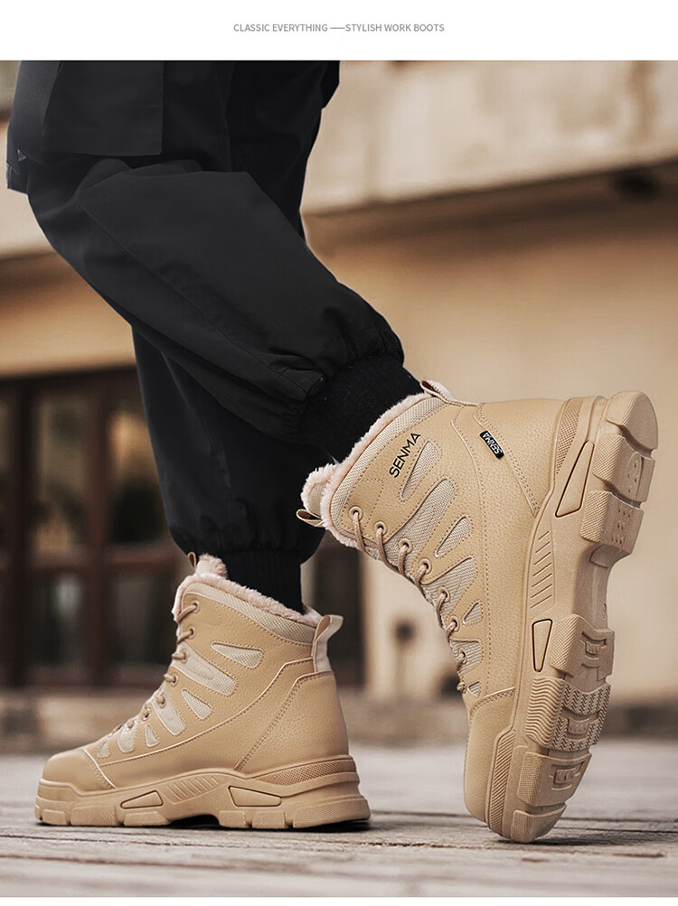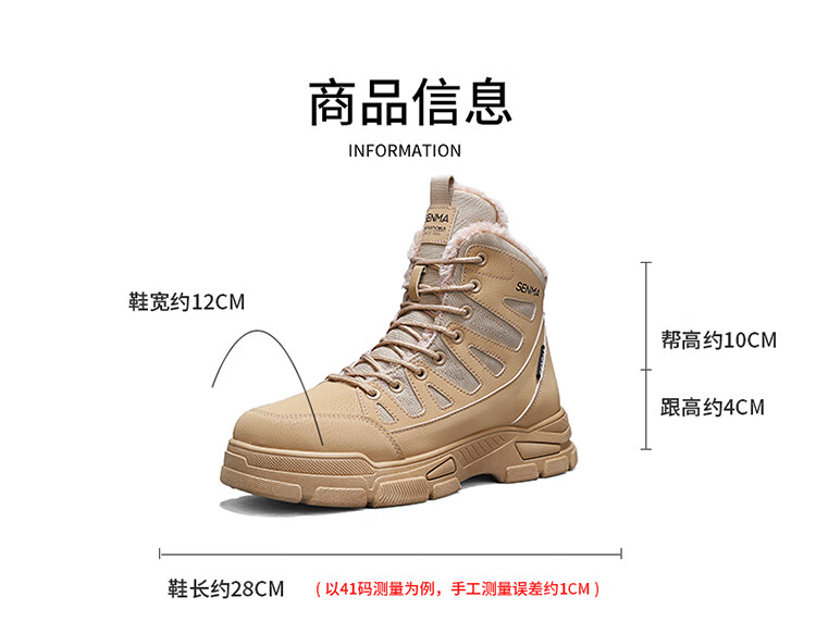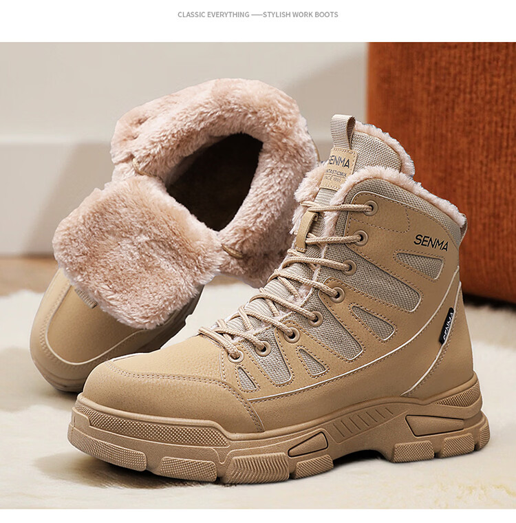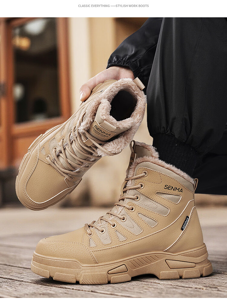 森馬雪地靴男冬季加绒保暖防水防滑高帮棉鞋男士户外东北零下40度棉靴 卡其【基础款】 39 标准码数/现货秒发