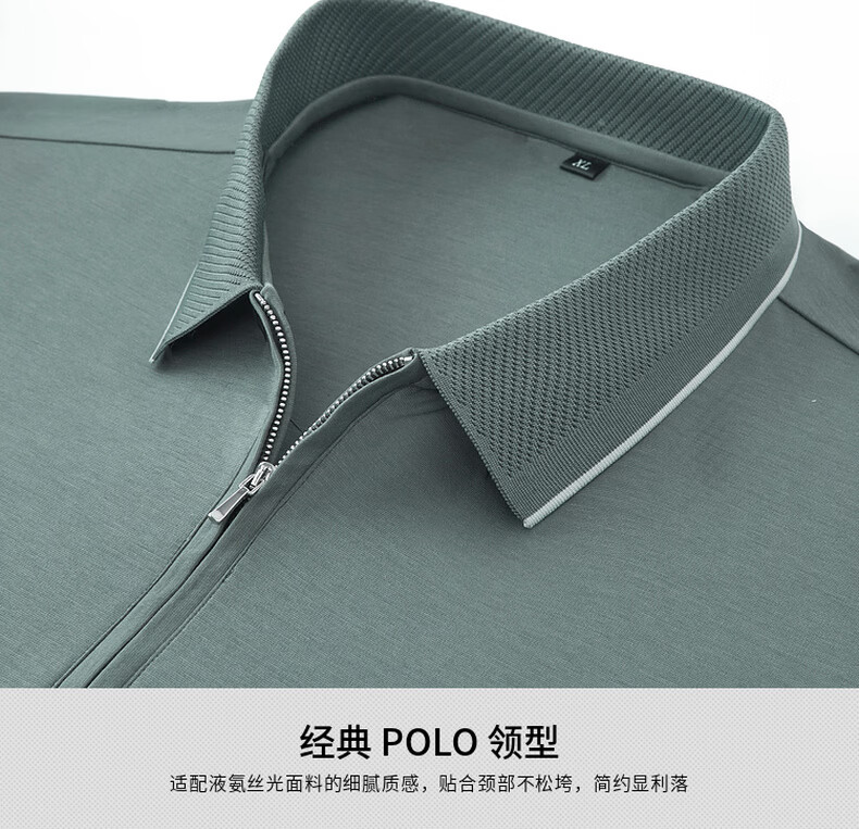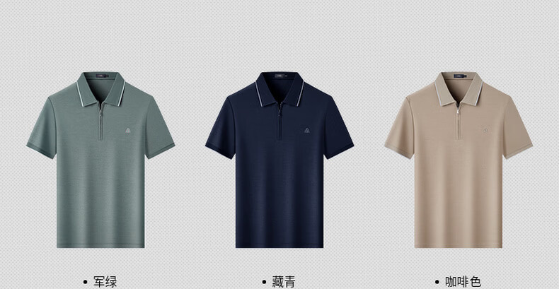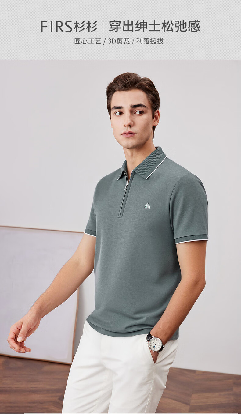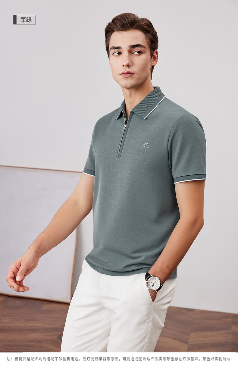 杉杉【轻柔新疆棉】夏季顺滑刺绣商务休闲半拉链翻领男式POLO衫T恤 军绿 M
