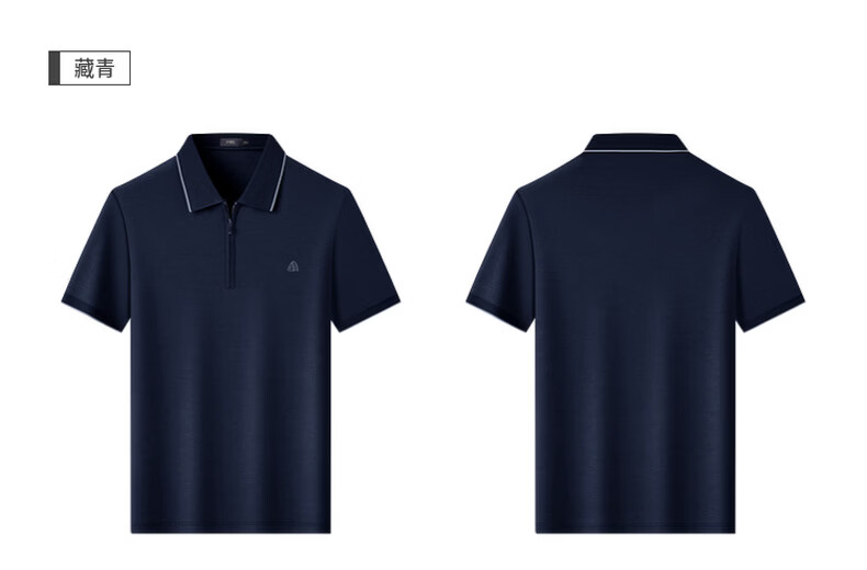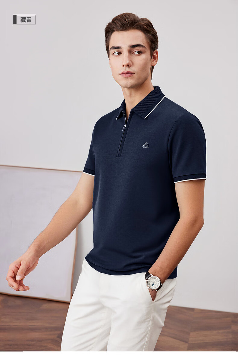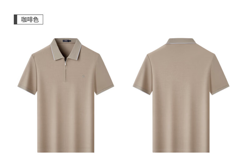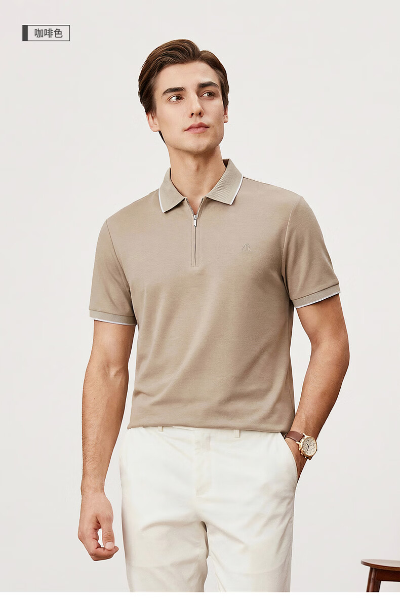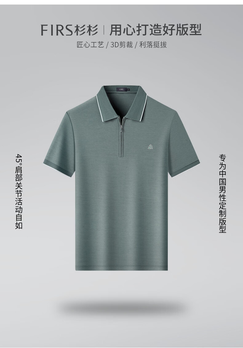 杉杉【轻柔新疆棉】夏季顺滑刺绣商务休闲半拉链翻领男式POLO衫T恤 军绿 M