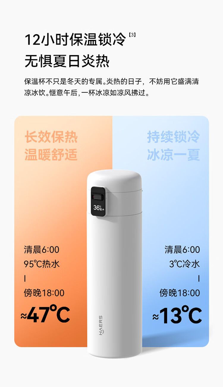 鸿蒙智选哈尔斯保温杯智能弹盖杯420ml男女士妇女节女神伴手礼物